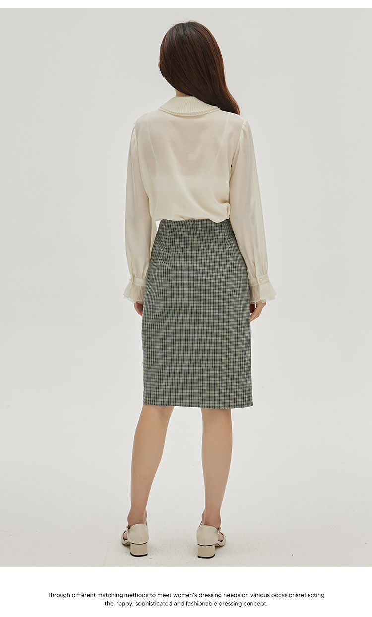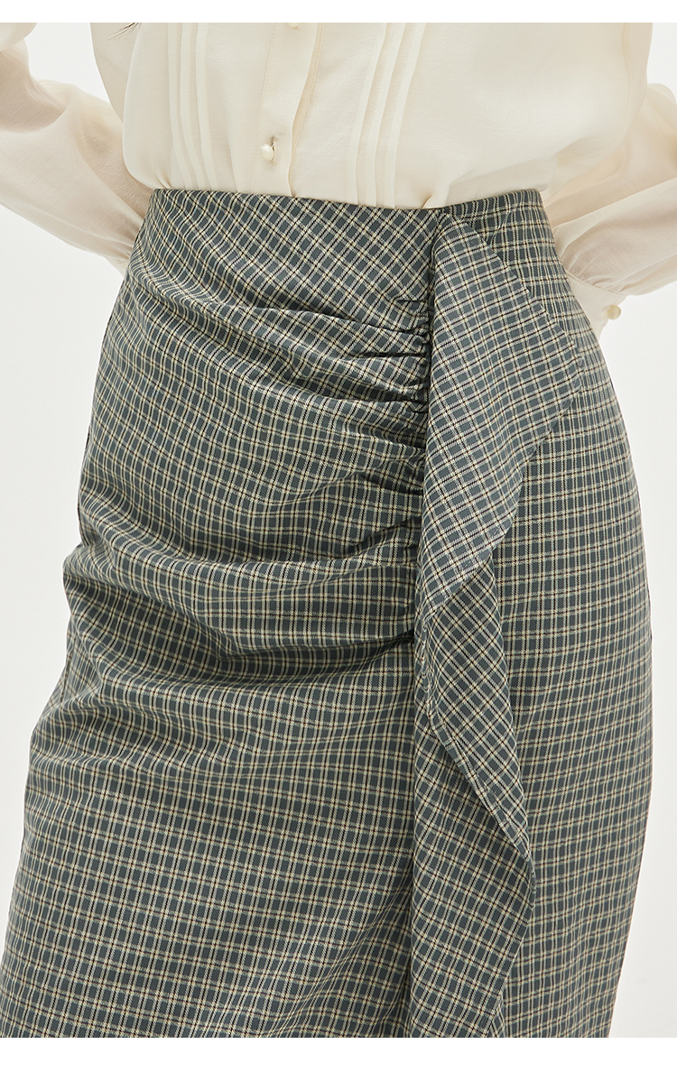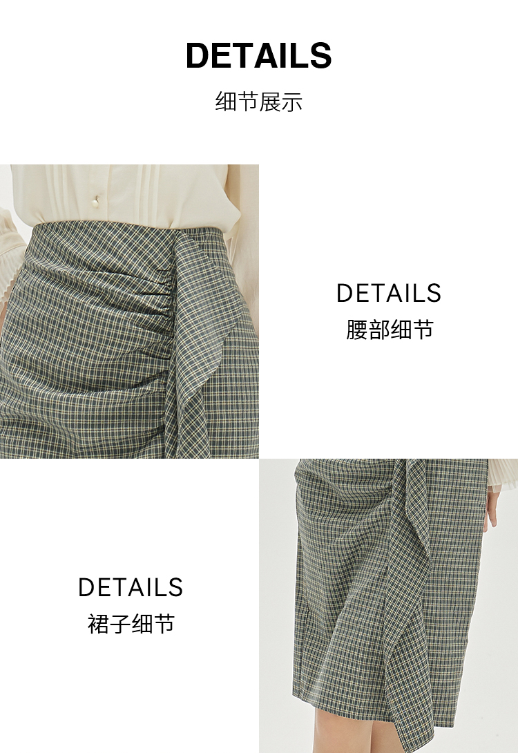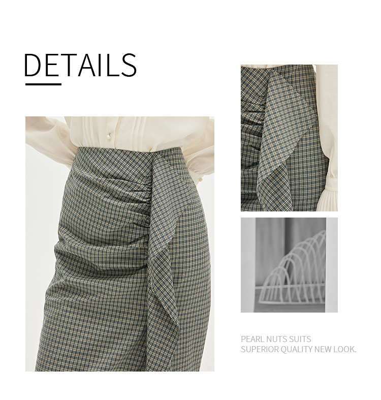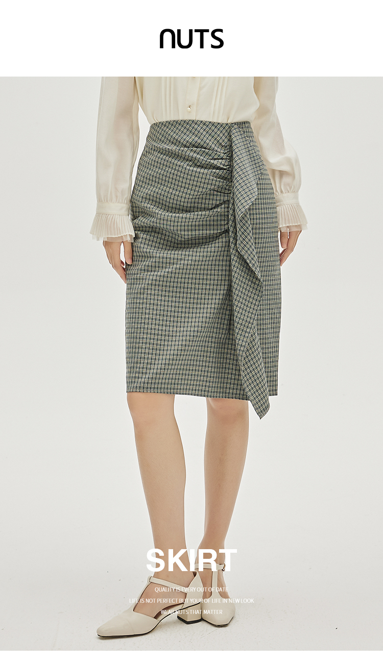 NUTS春秋季新款时尚气质设计感色织千鸟格高腰显瘦半身裙333061162