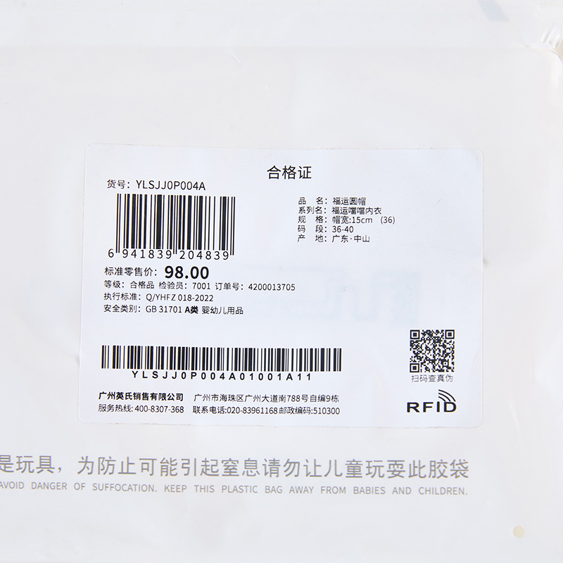 英氏福运圆帽新生儿胎帽新年帽2023春季新品YLSJJ0P004A