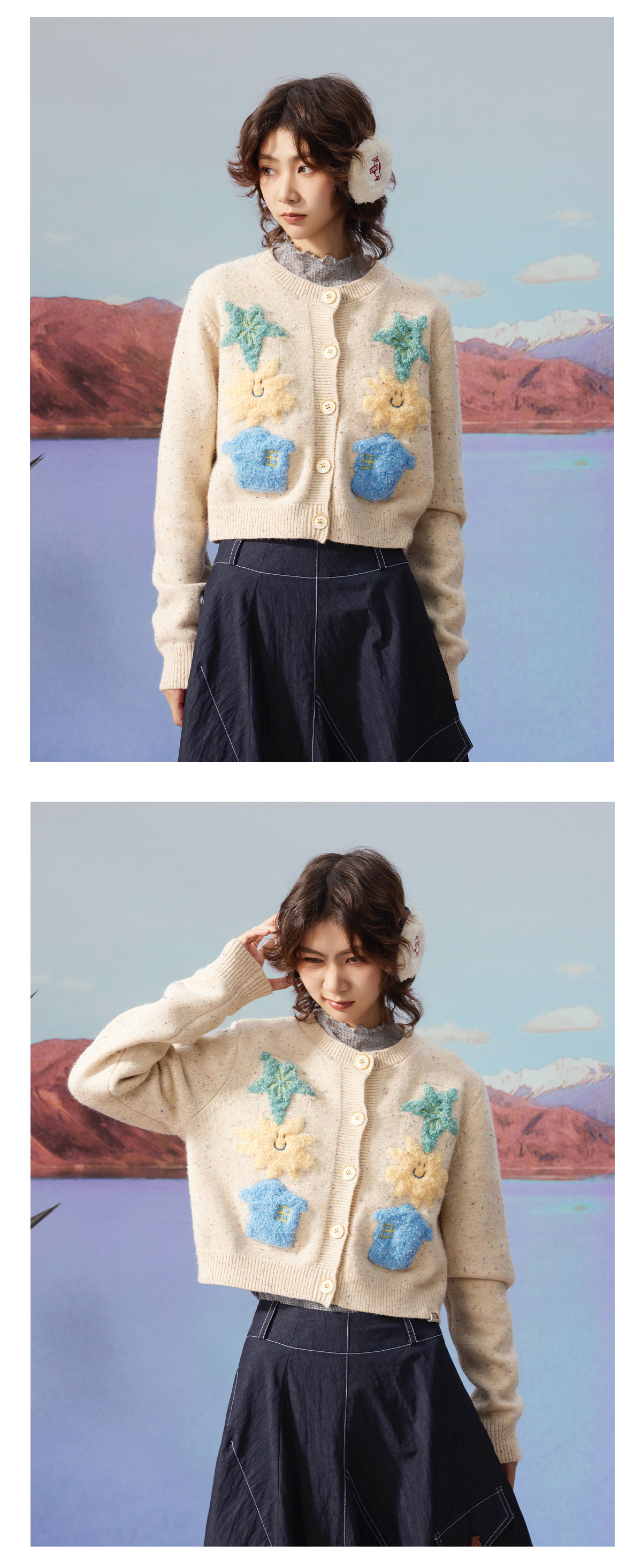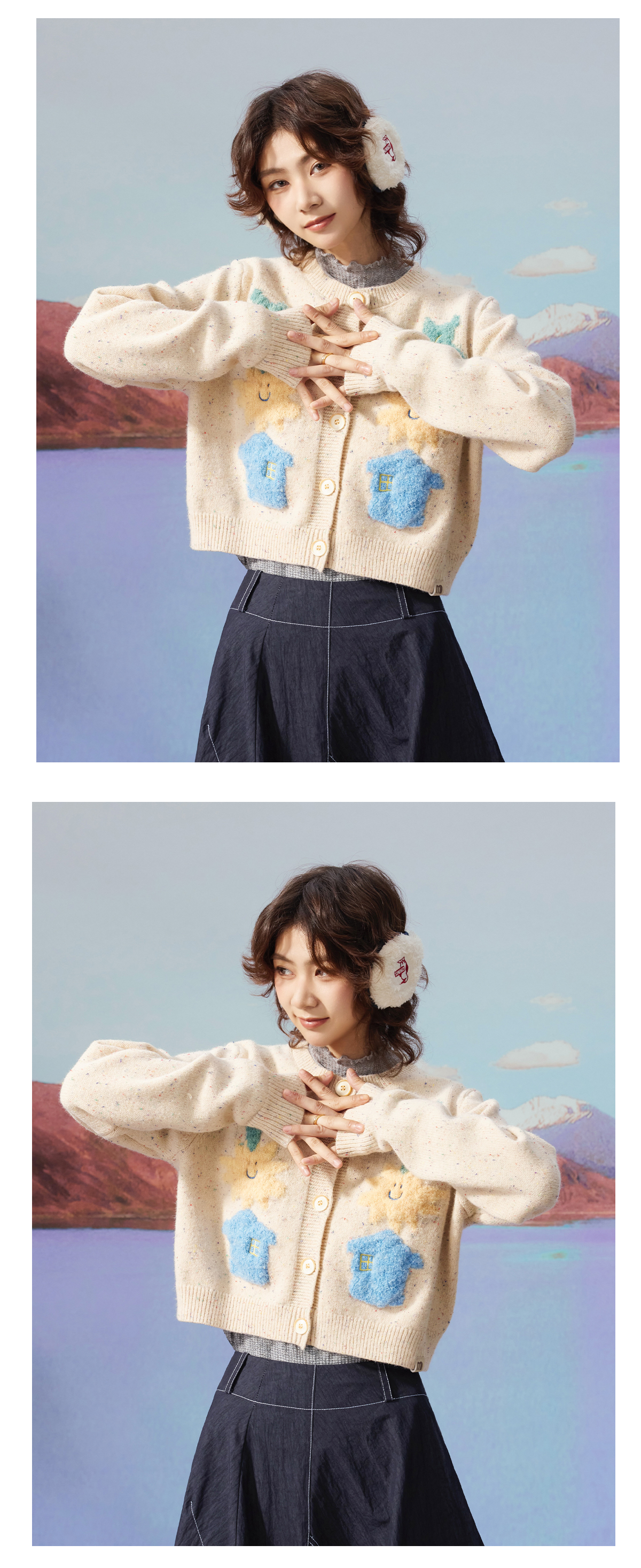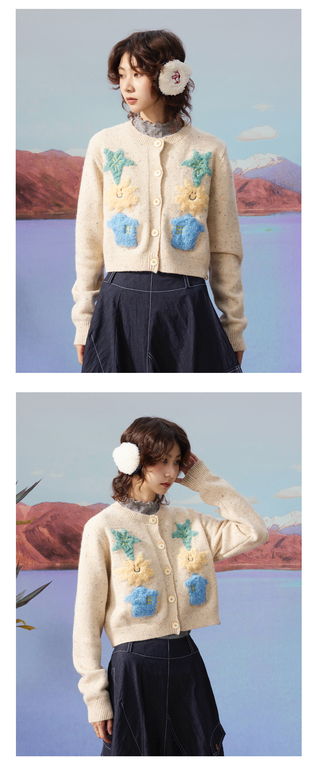 马得工地/MDGDMY13240/撞色涂鸦开衫仿羊驼毛毛衣