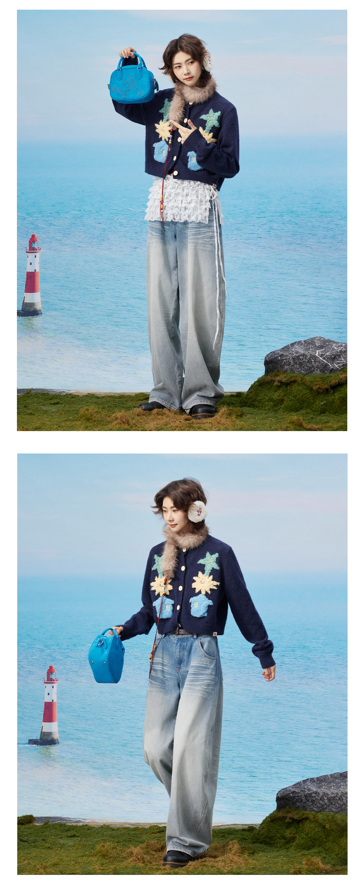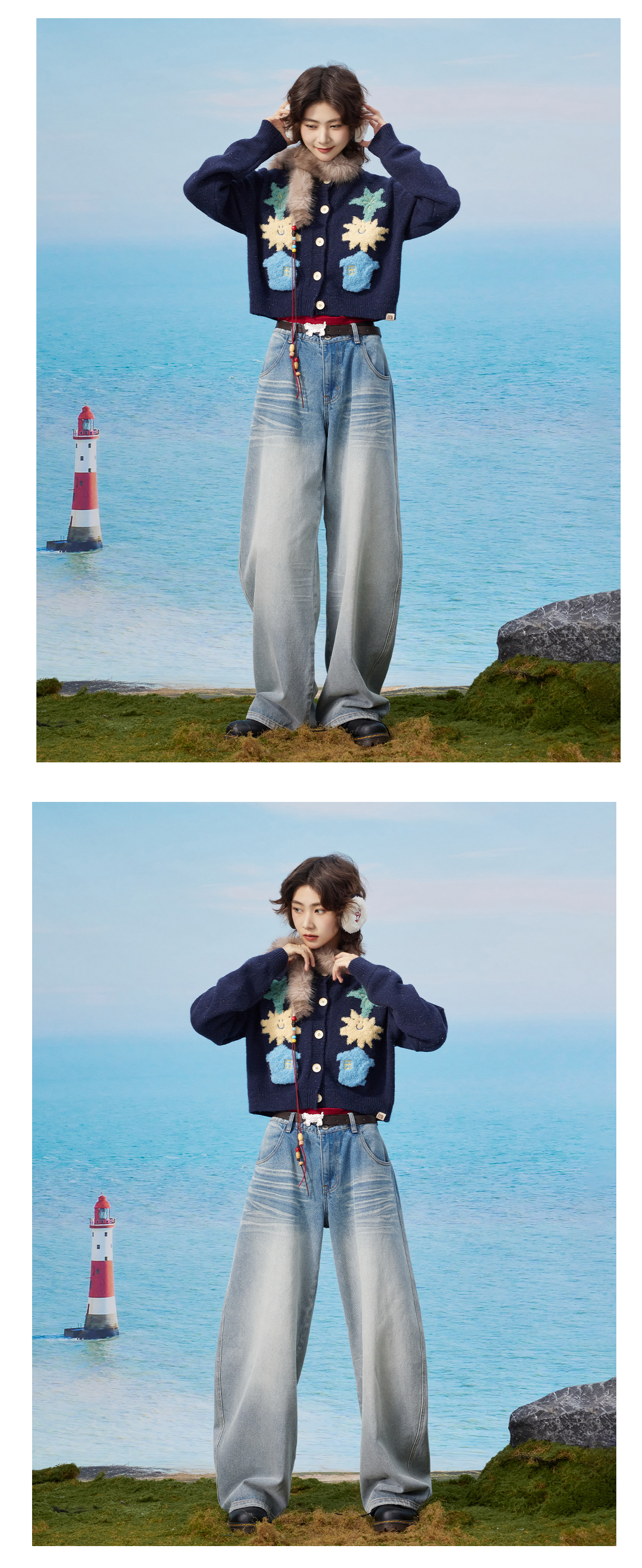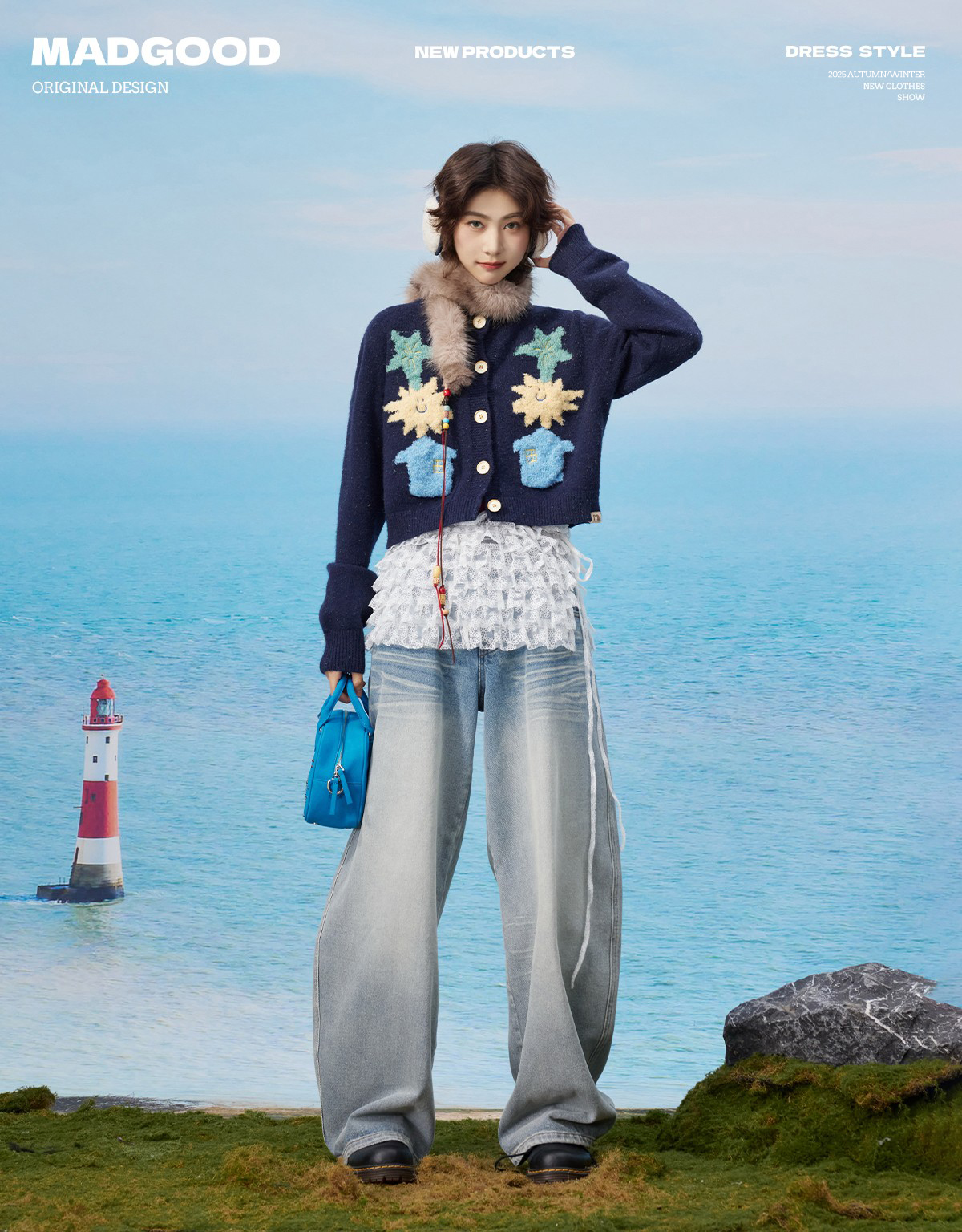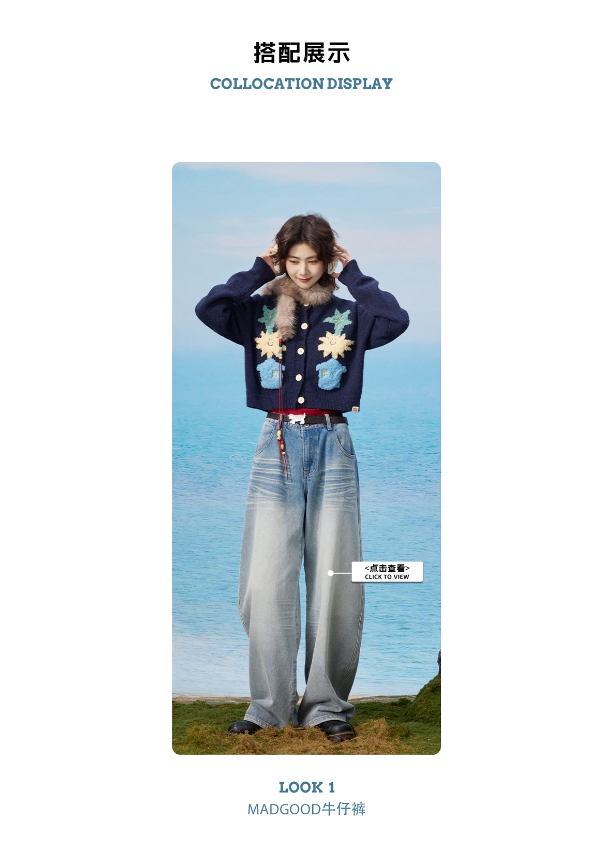 马得工地/MDGDMY13240/撞色涂鸦开衫仿羊驼毛毛衣