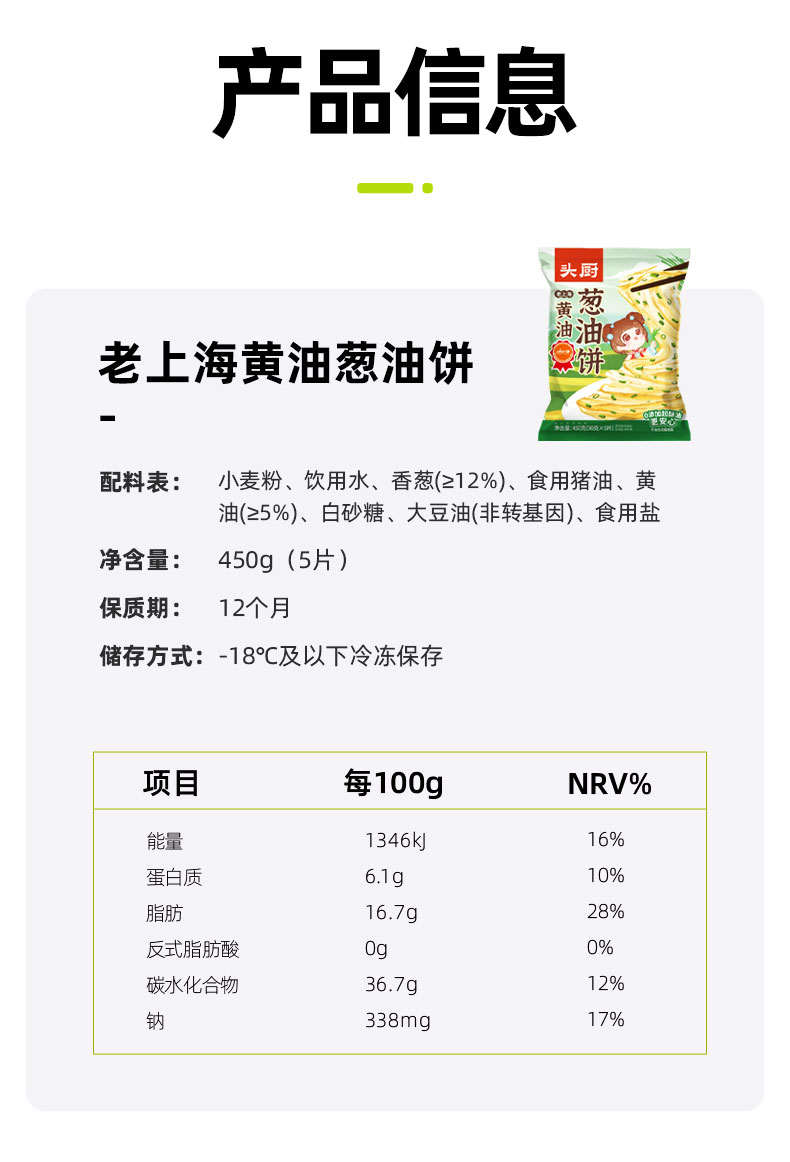 头厨老上海黄油葱油饼(450g/包 5片)生产日期: 2月