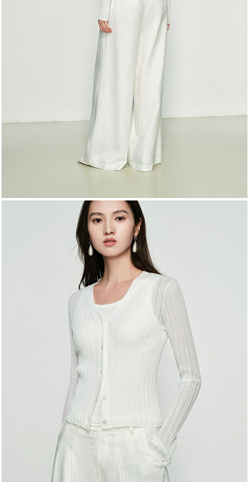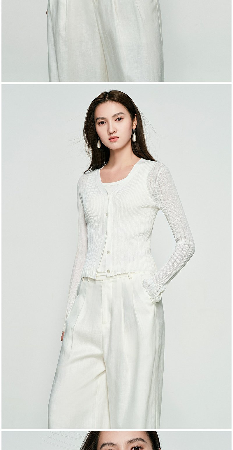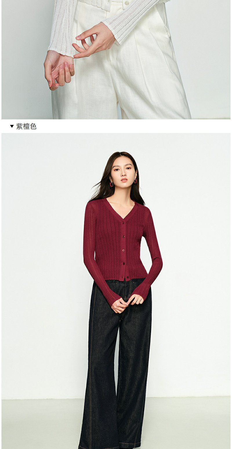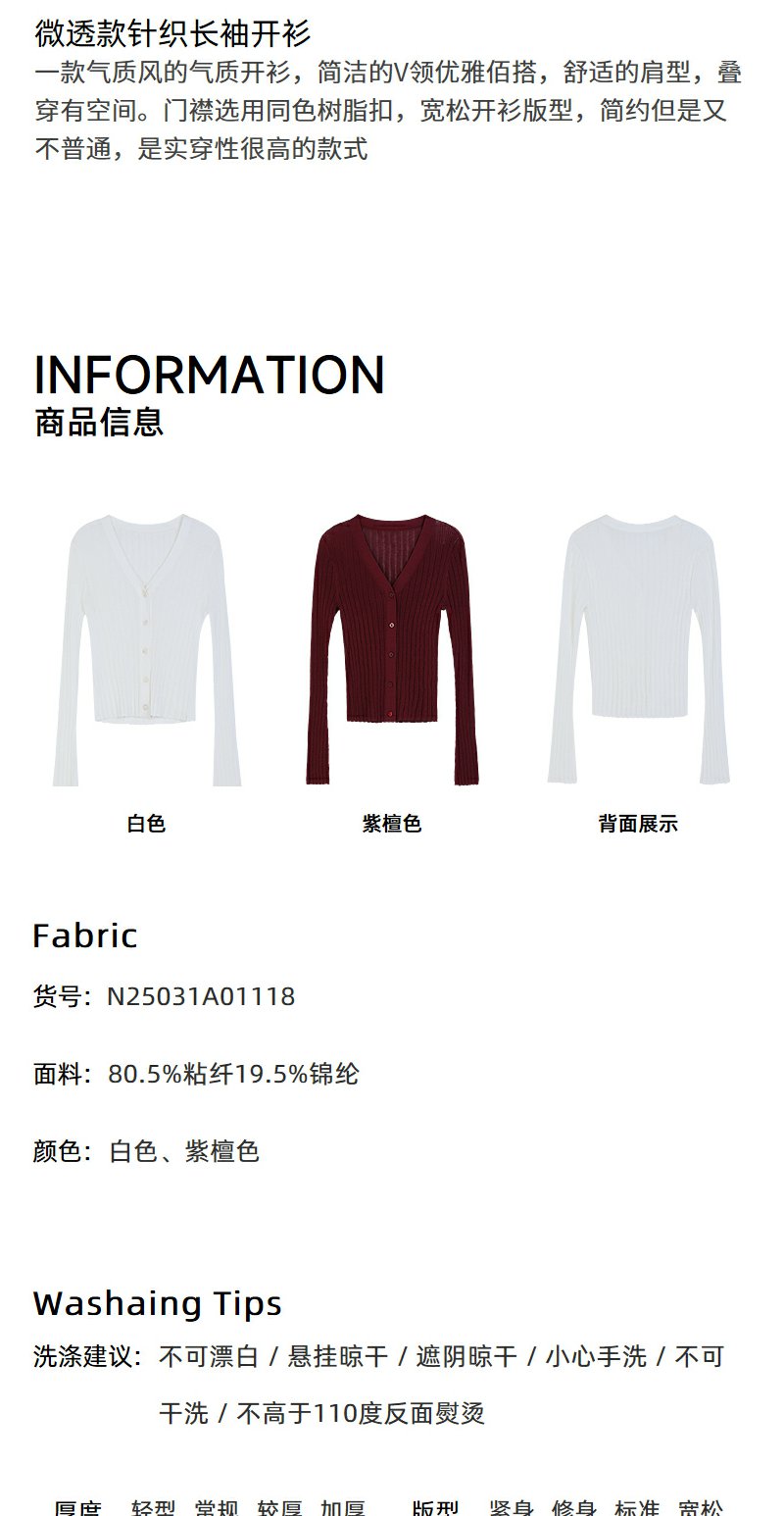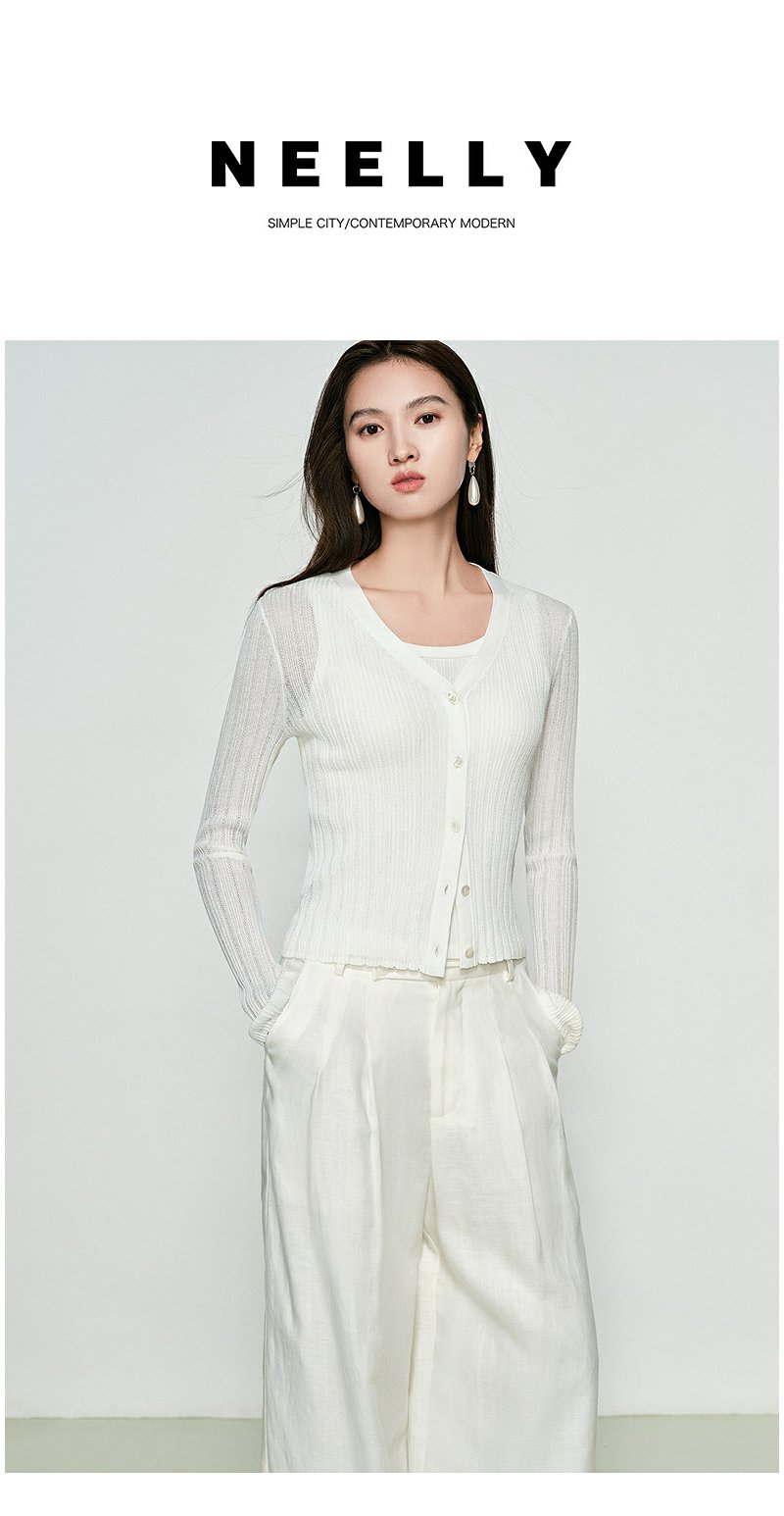 NEELLY纳俪商场同款春季新款圆领纯色针织衫女修身毛衣百搭开衫N25031A01118