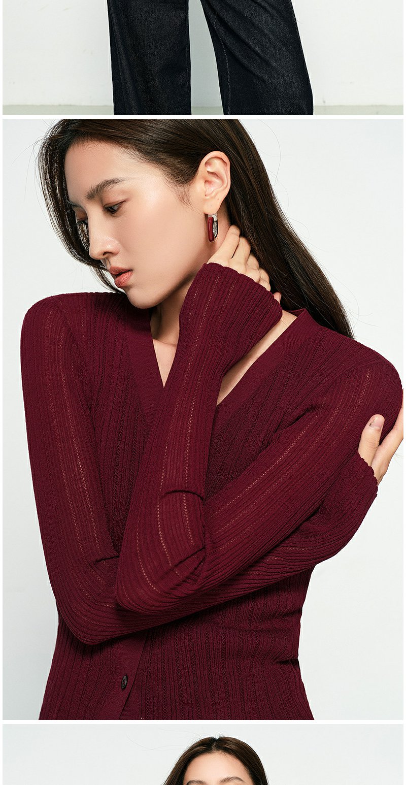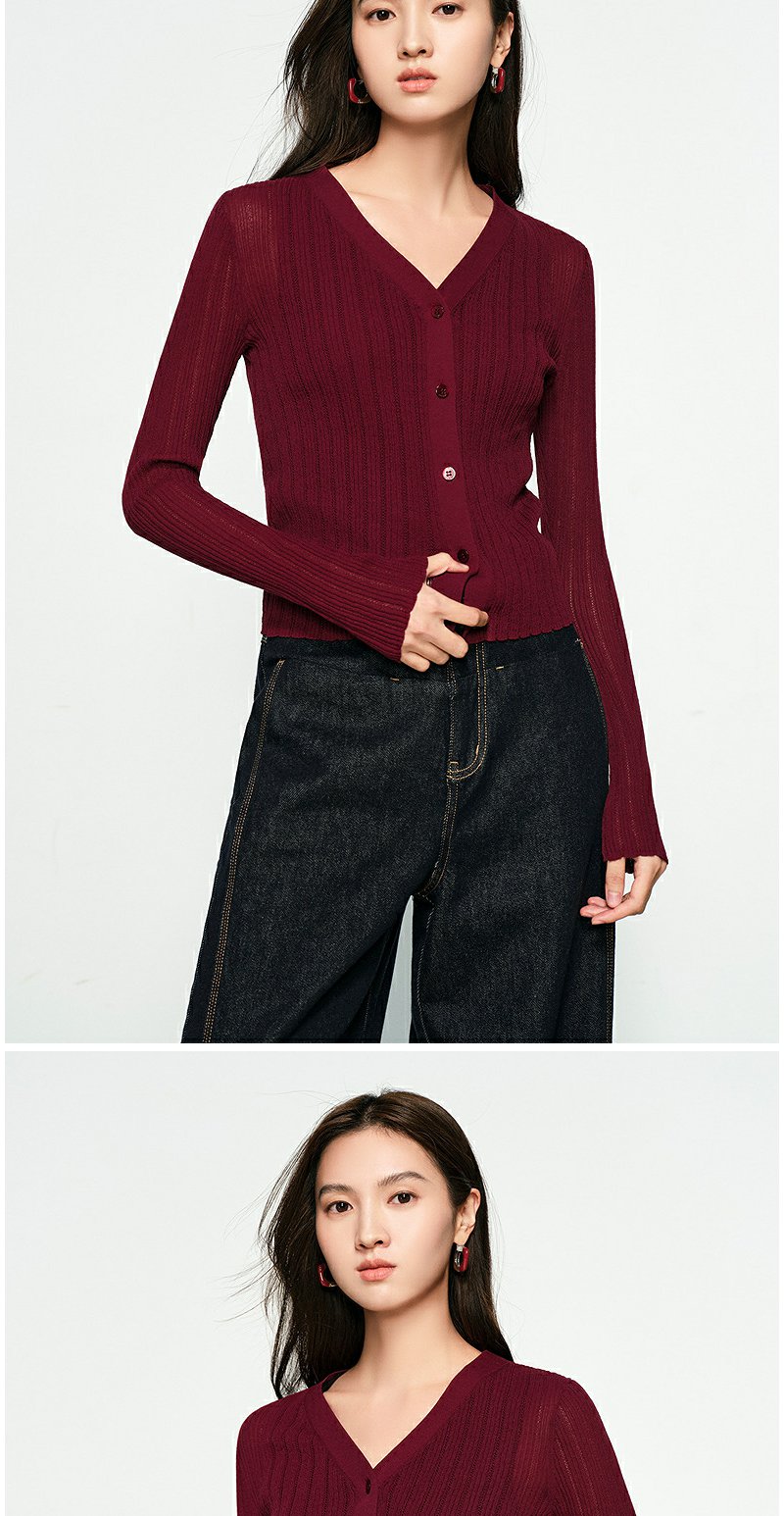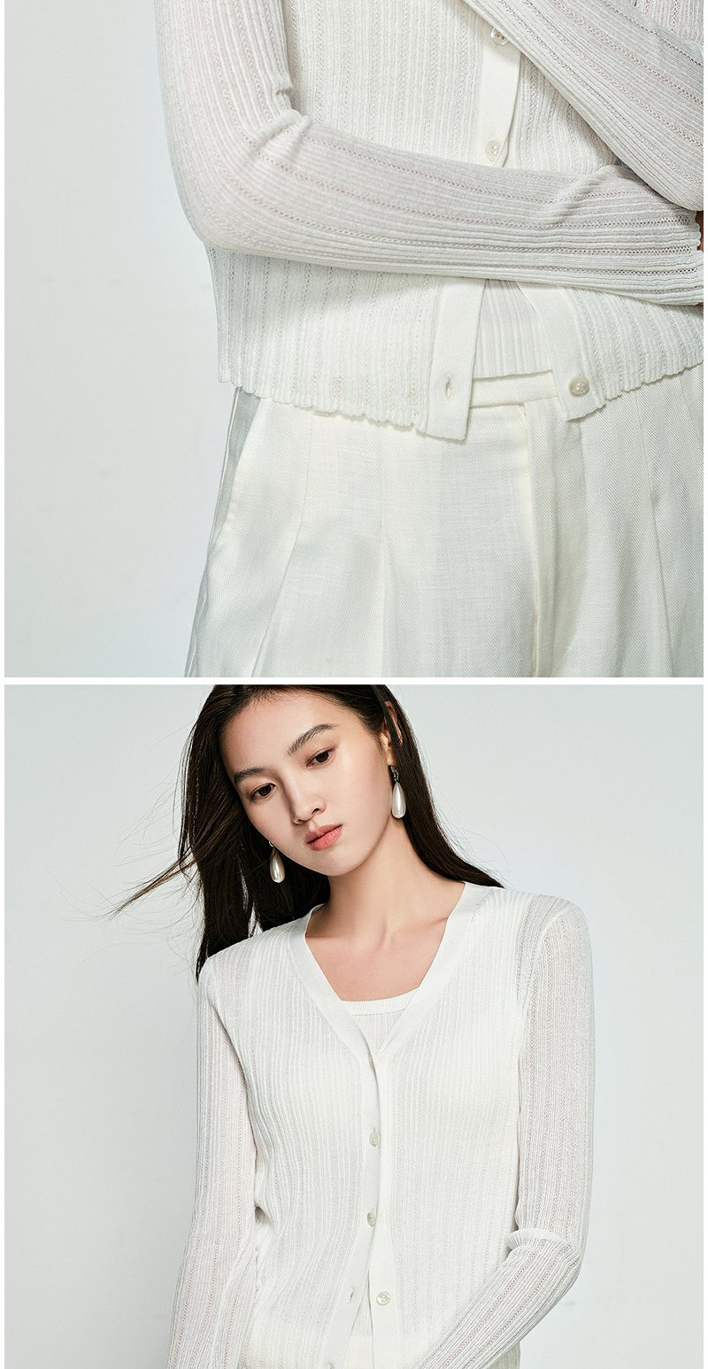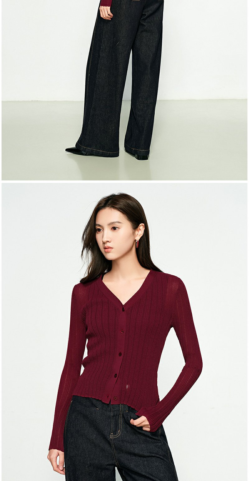 NEELLY纳俪商场同款春季新款圆领纯色针织衫女修身毛衣百搭开衫N25031A01118