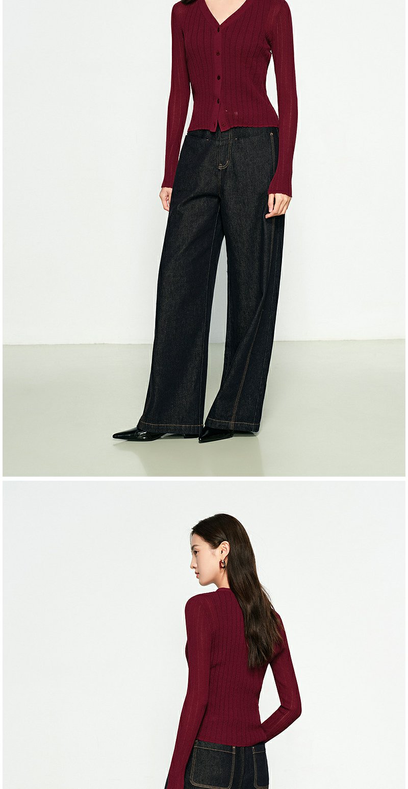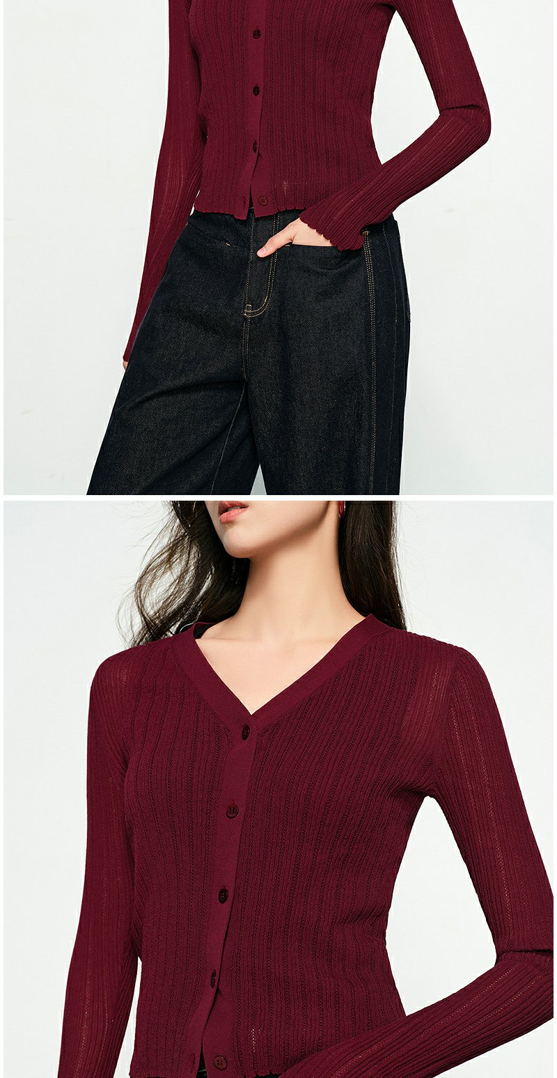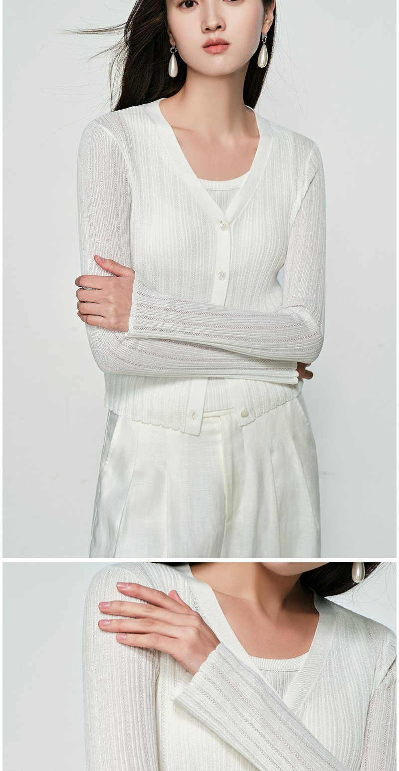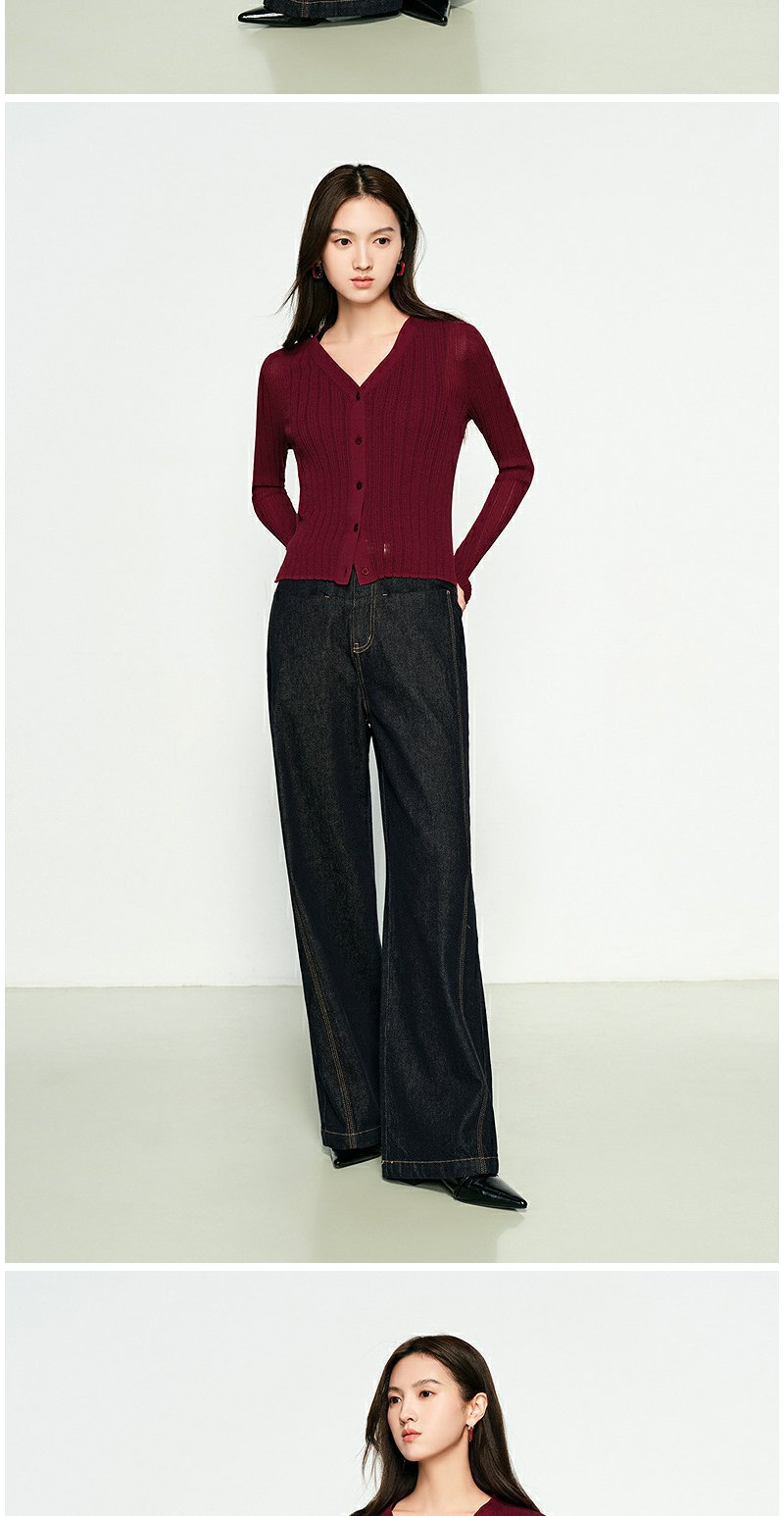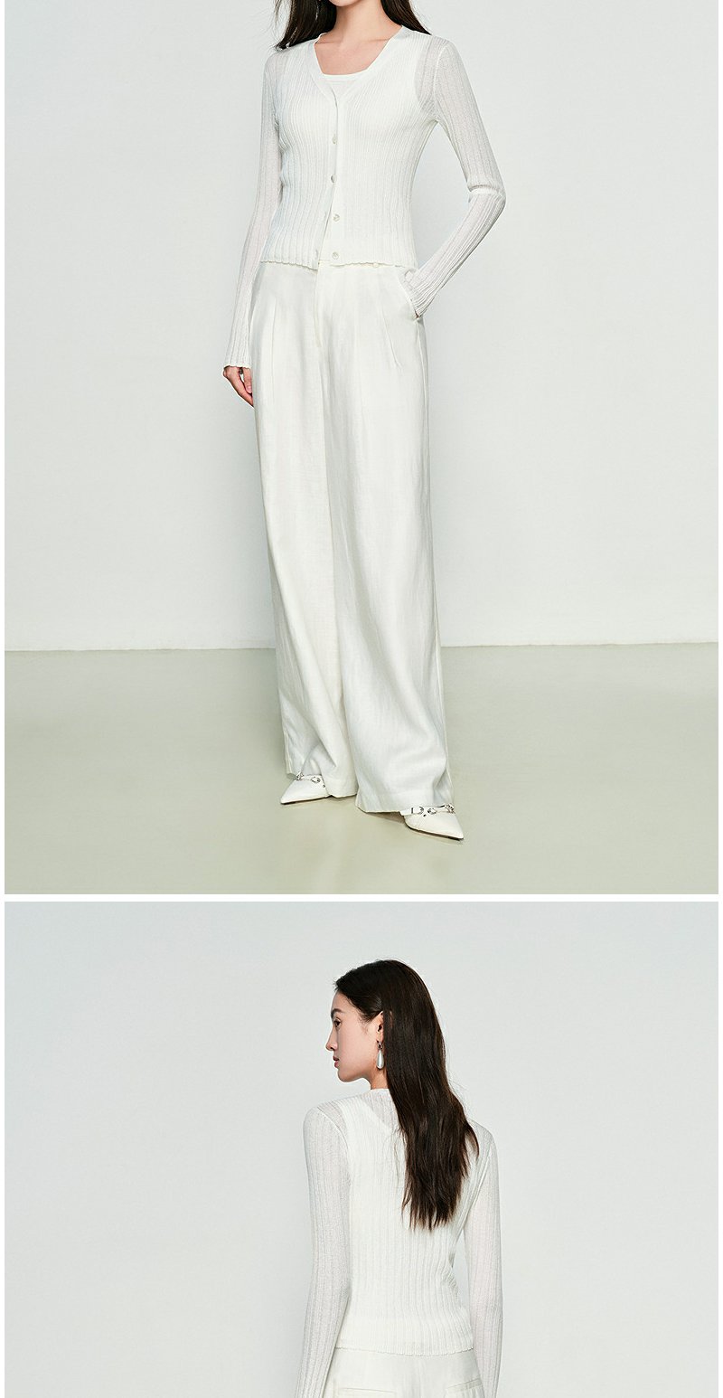 NEELLY纳俪商场同款春季新款圆领纯色针织衫女修身毛衣百搭开衫N25031A01118