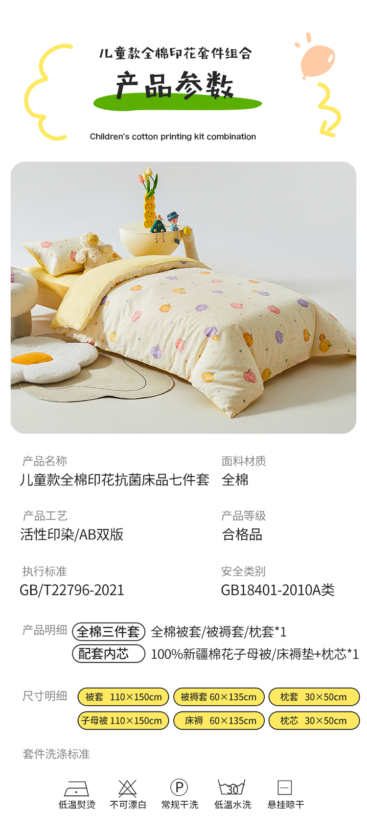 【品牌直发】小象咘叮 A类全棉幼儿园被子三件套被套纯棉儿童六件套宝宝入园专用被套被褥含芯七件套