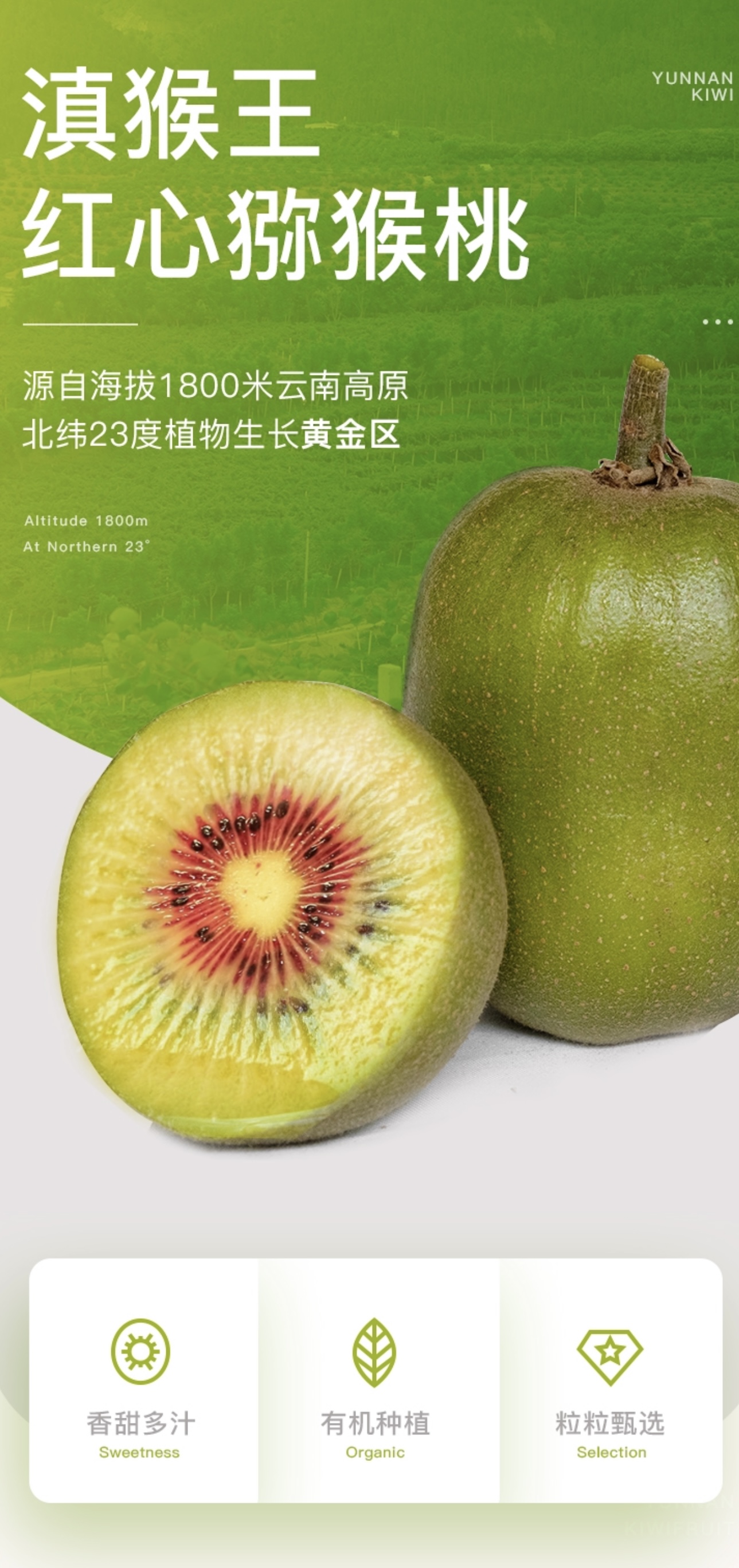 滇猴王即食工艺红心猕猴桃大果礼盒原箱 (12盒/箱 单盒400g±10g 4颗)
