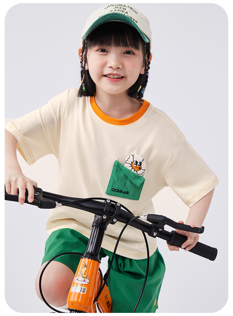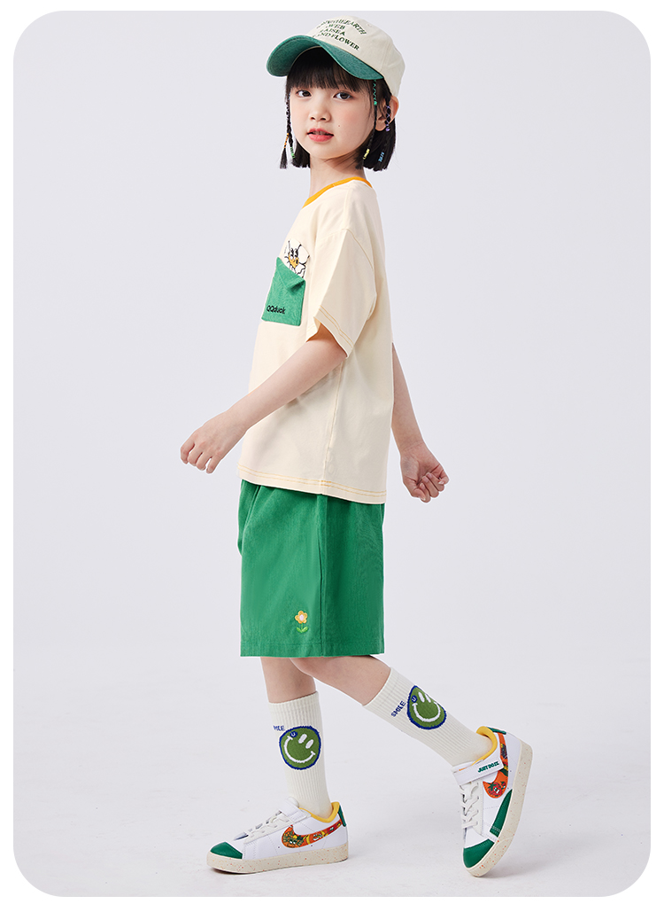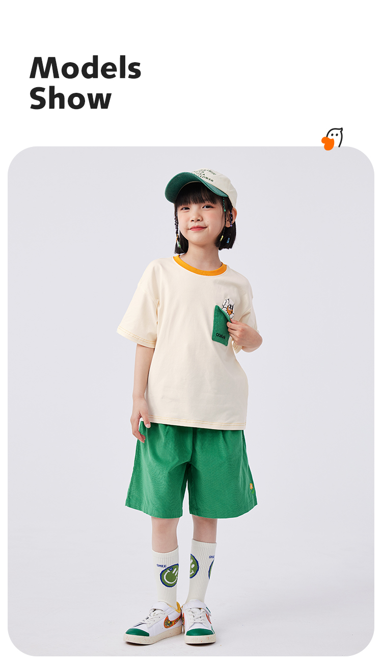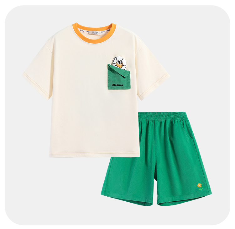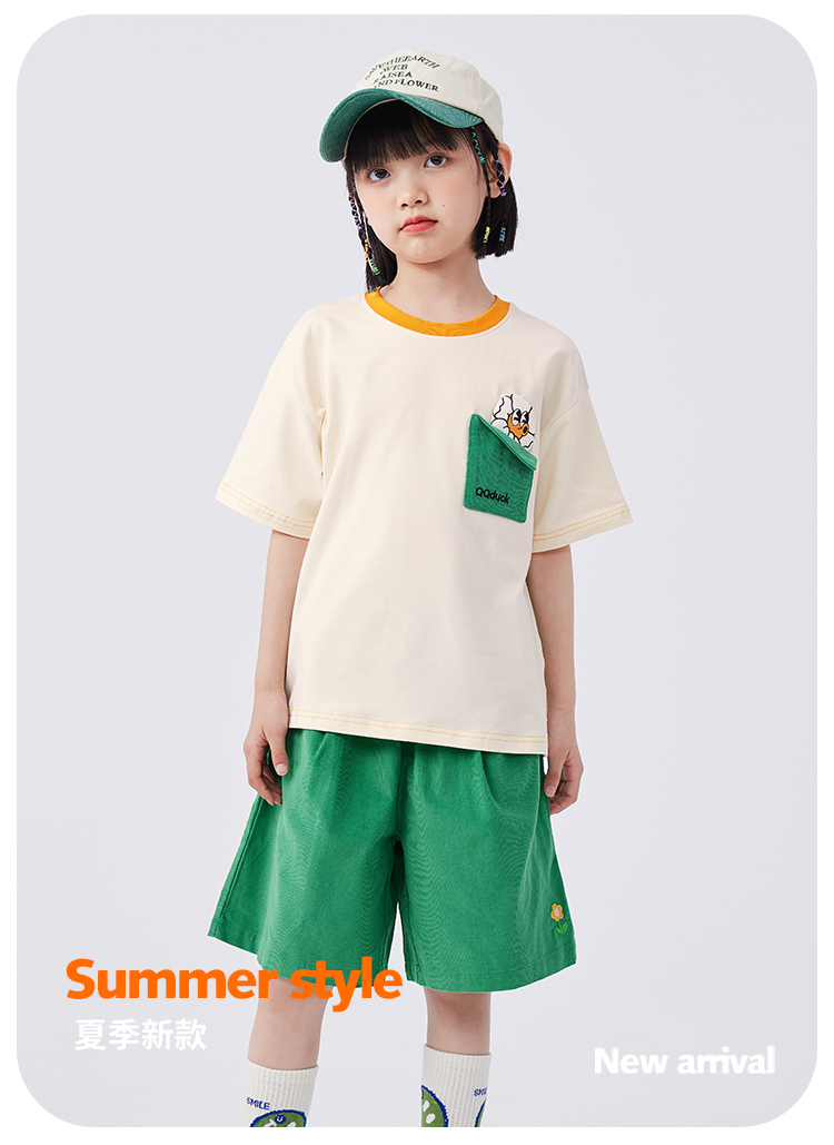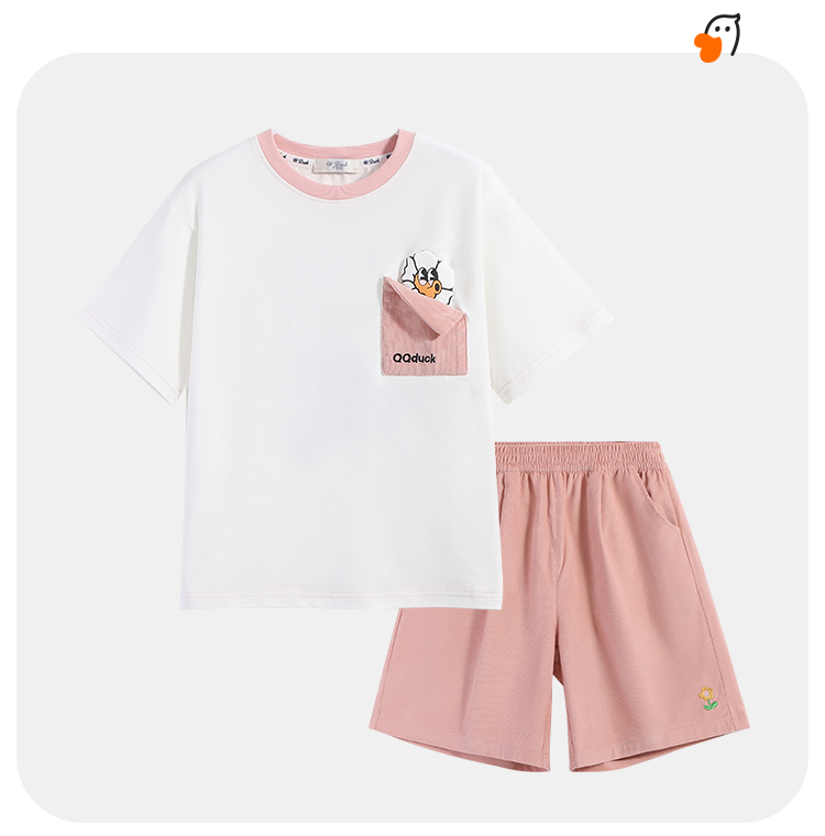 【清仓捡漏】【两件套】【120-165】【可可鸭】女童夏季短袖短裤套装(上衣:95%棉 5%氨纶 裤子:100%棉)