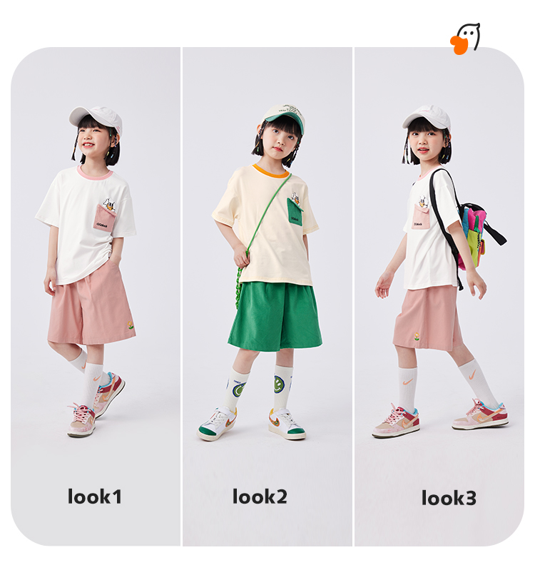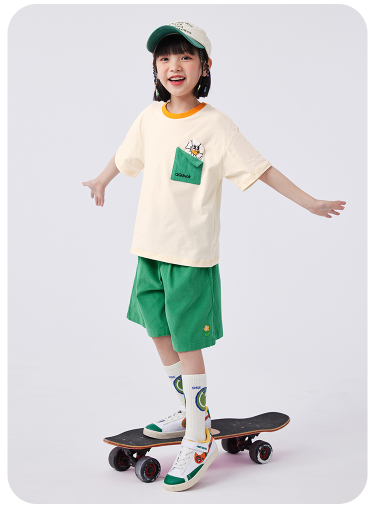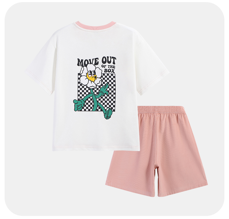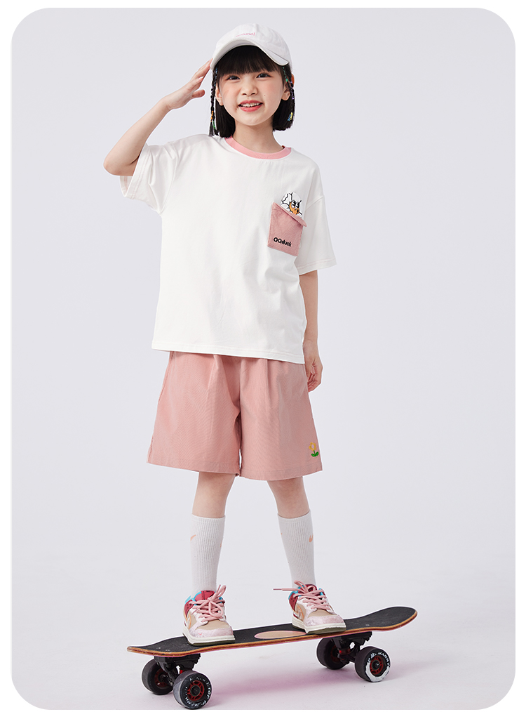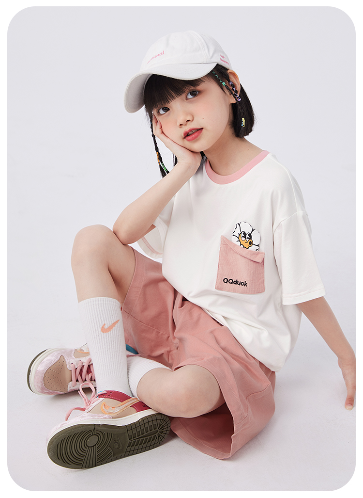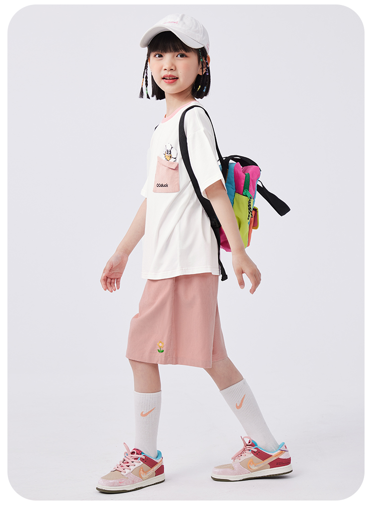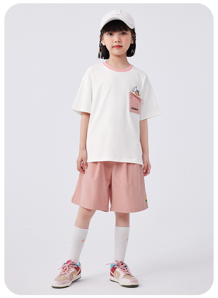 【清仓捡漏】【两件套】【120-165】【可可鸭】女童夏季短袖短裤套装(上衣:95%棉 5%氨纶 裤子:100%棉)