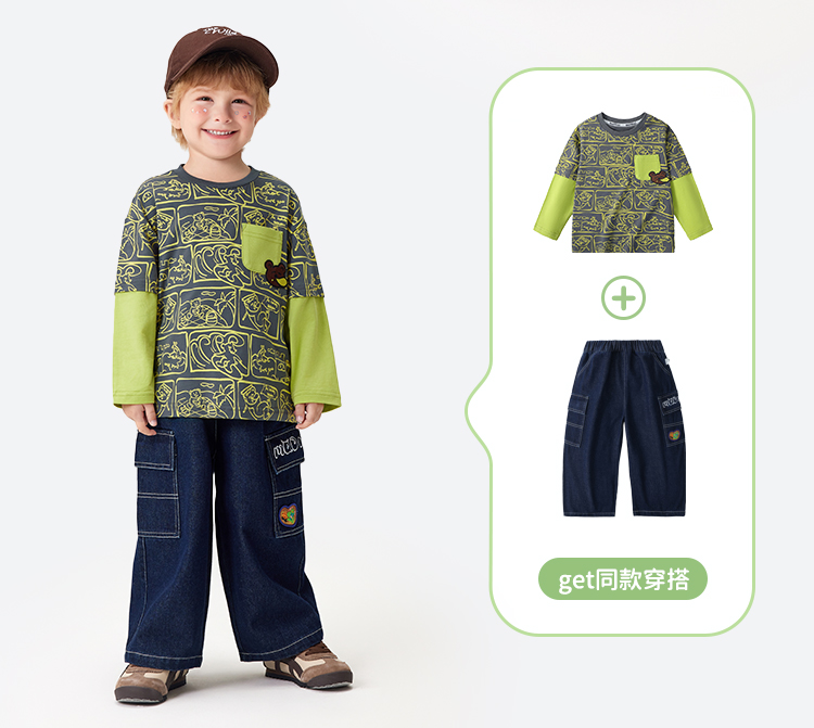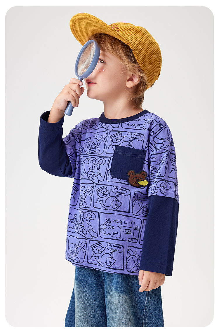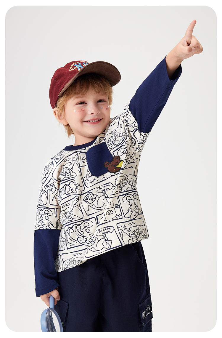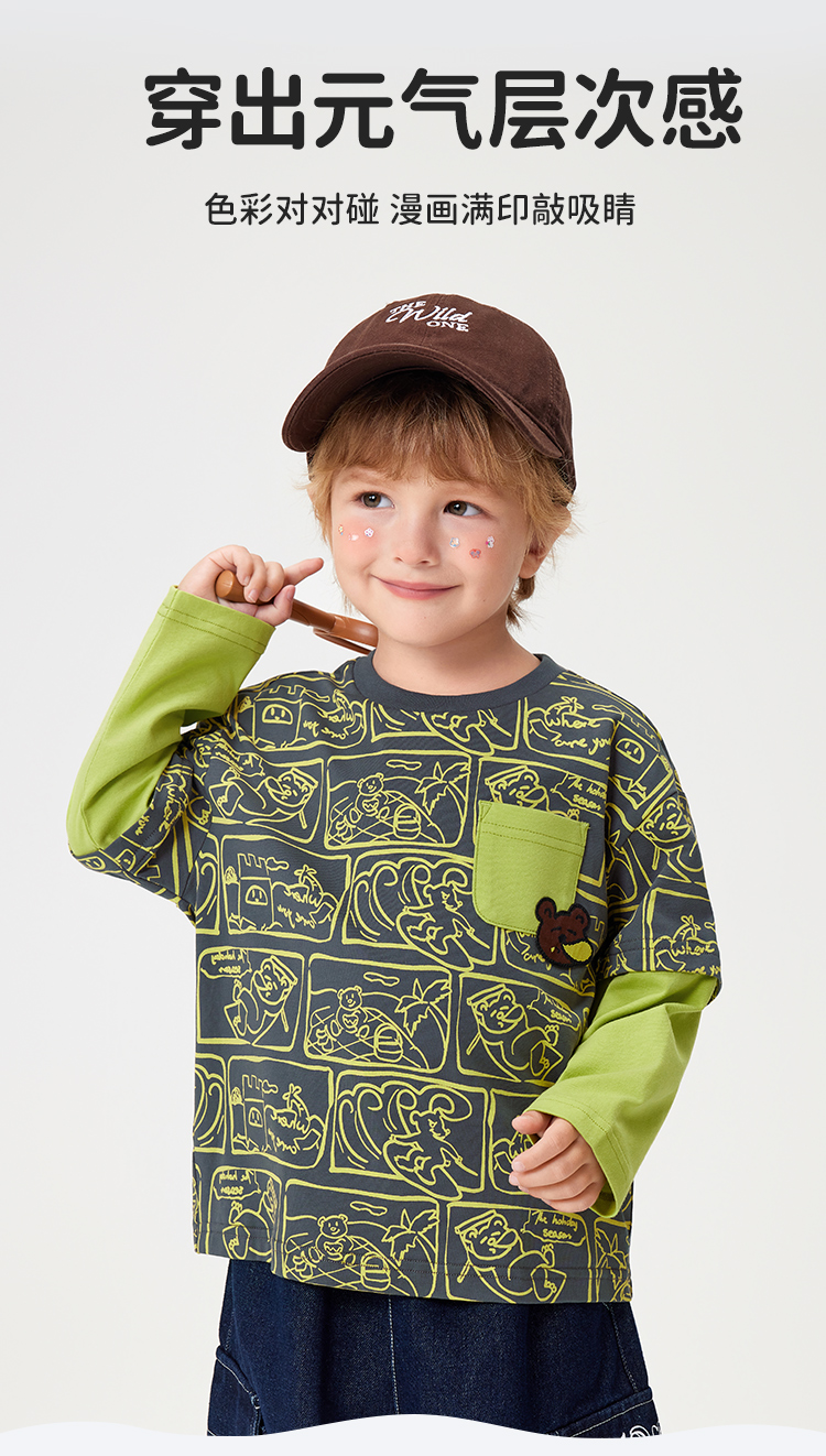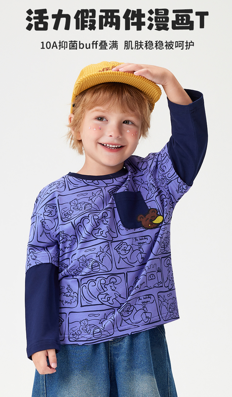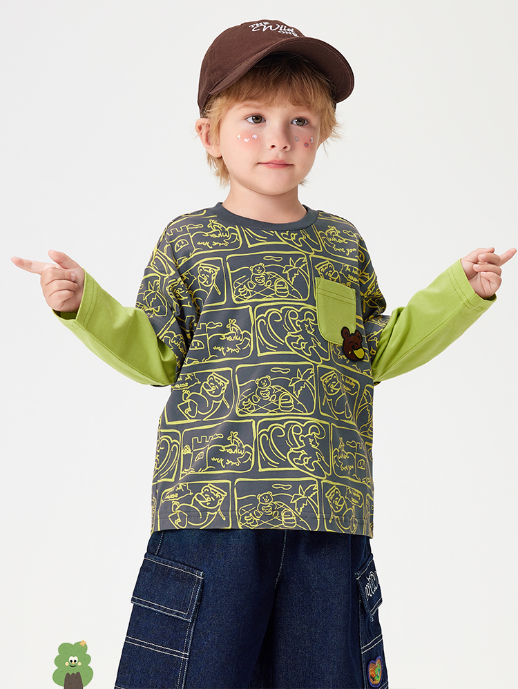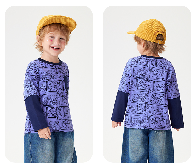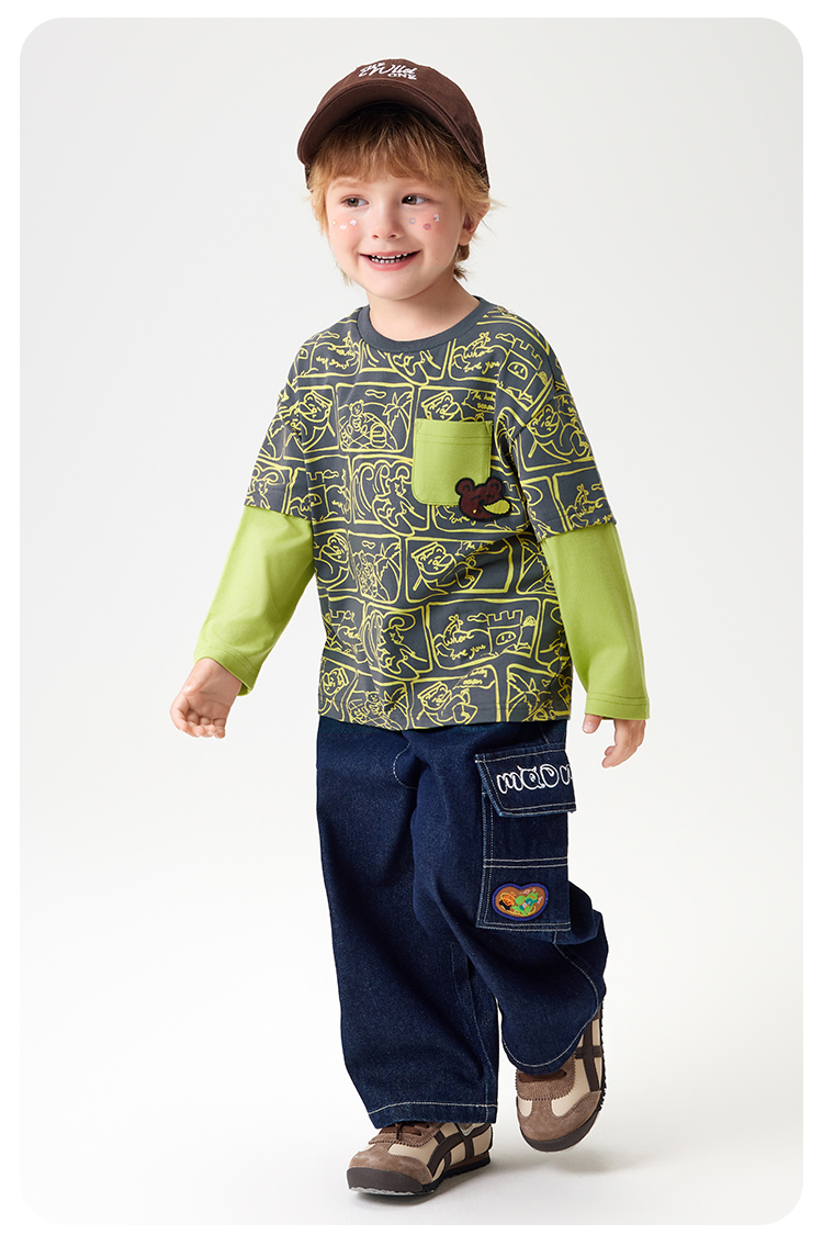 【90-140】【MQDmini】男童长袖T恤中小童抑菌拼接上衣