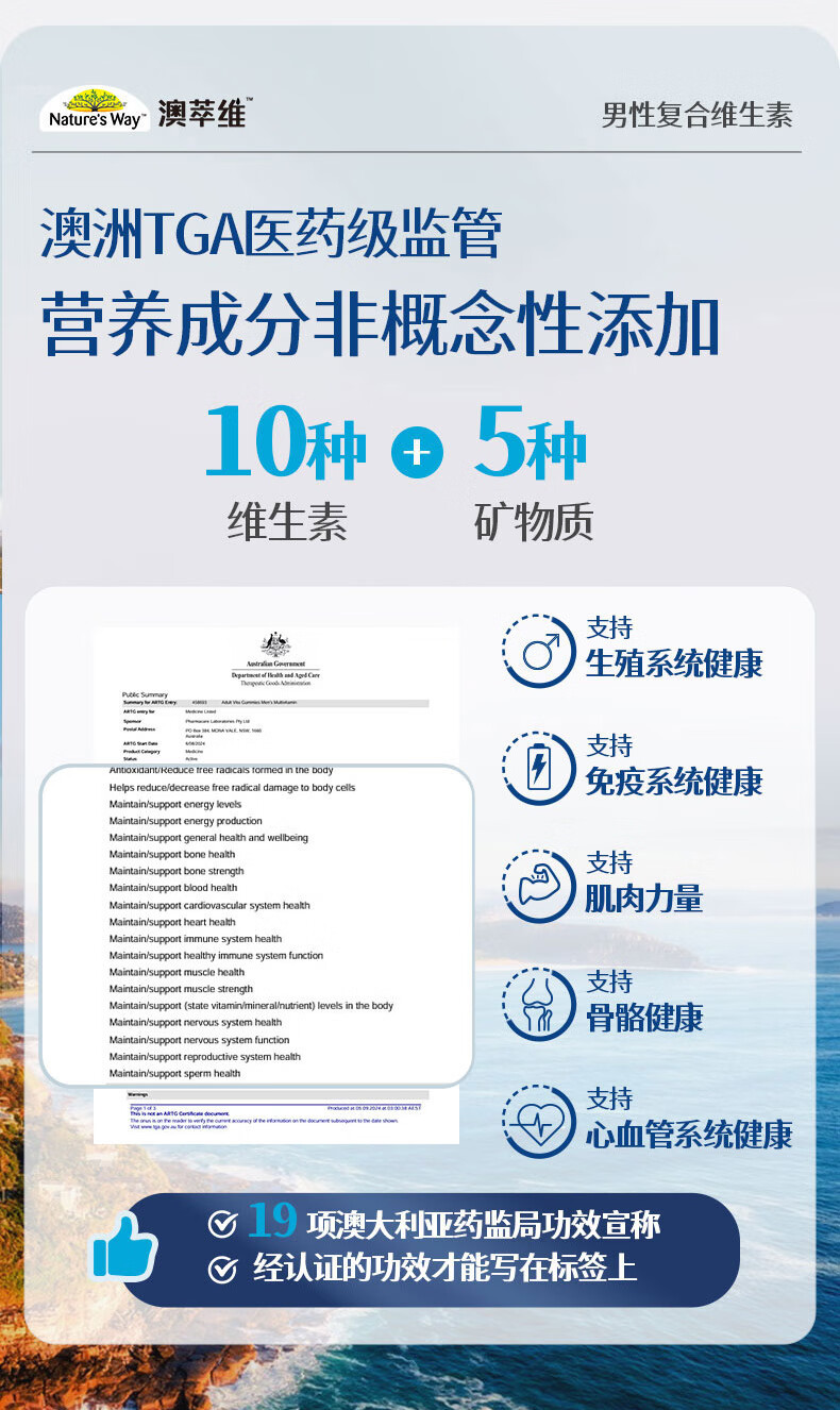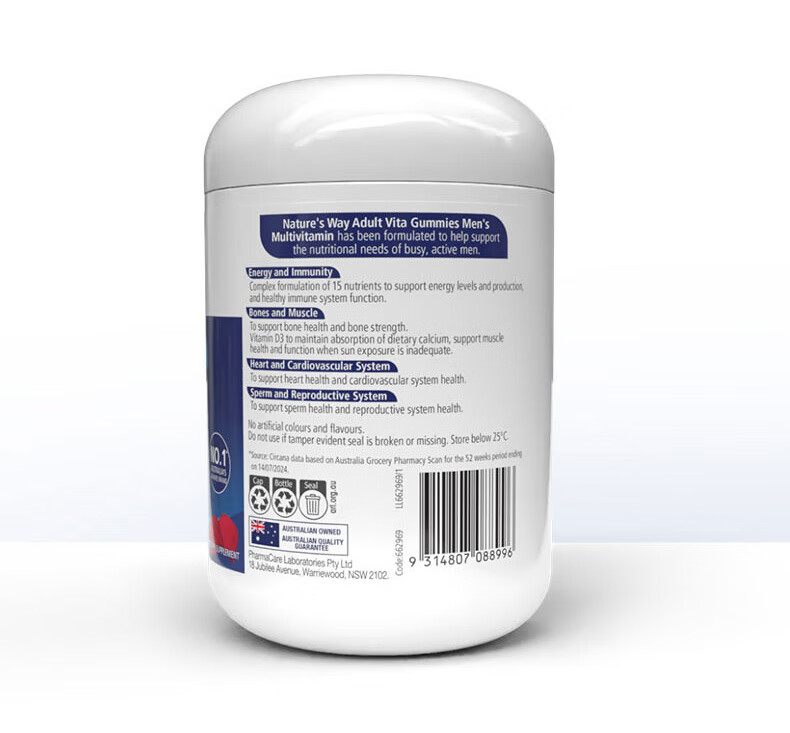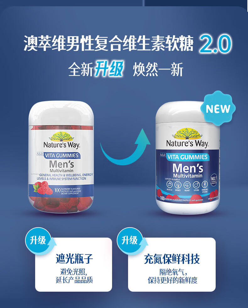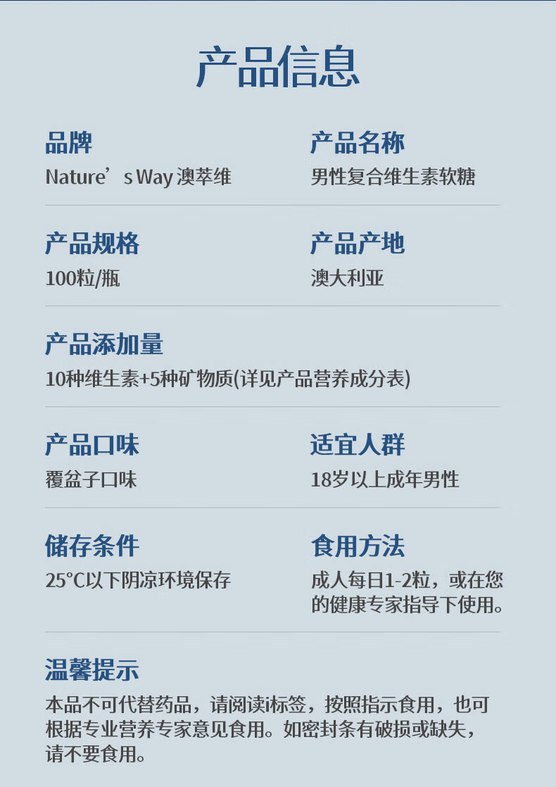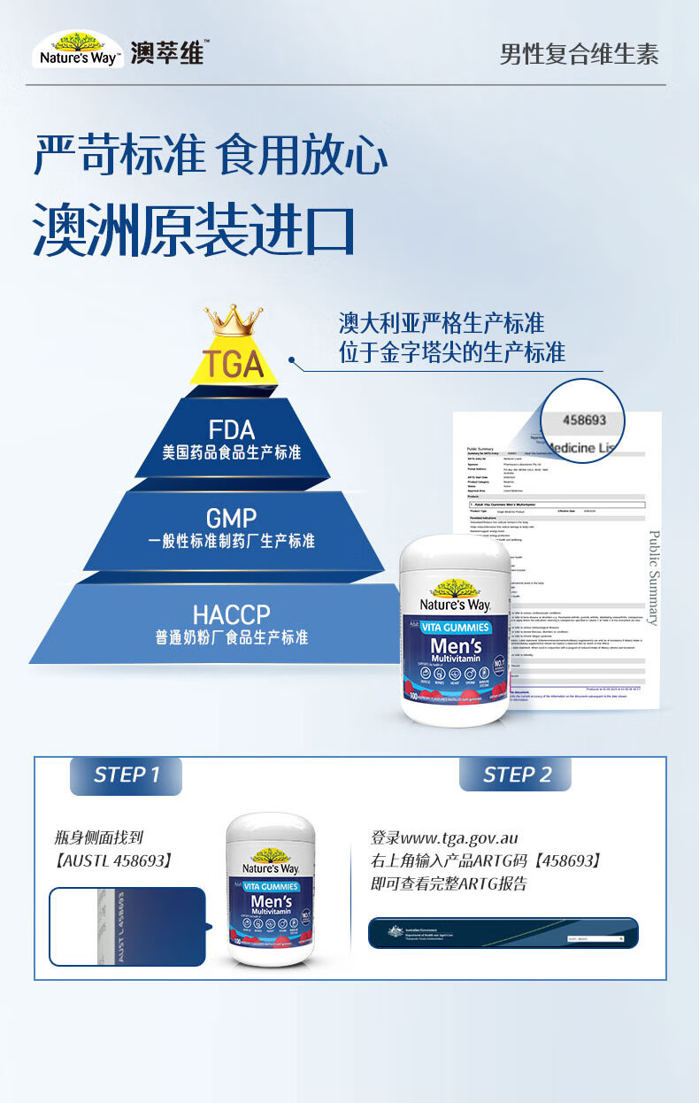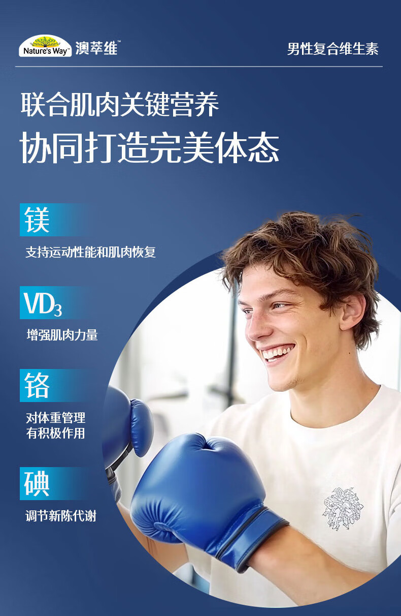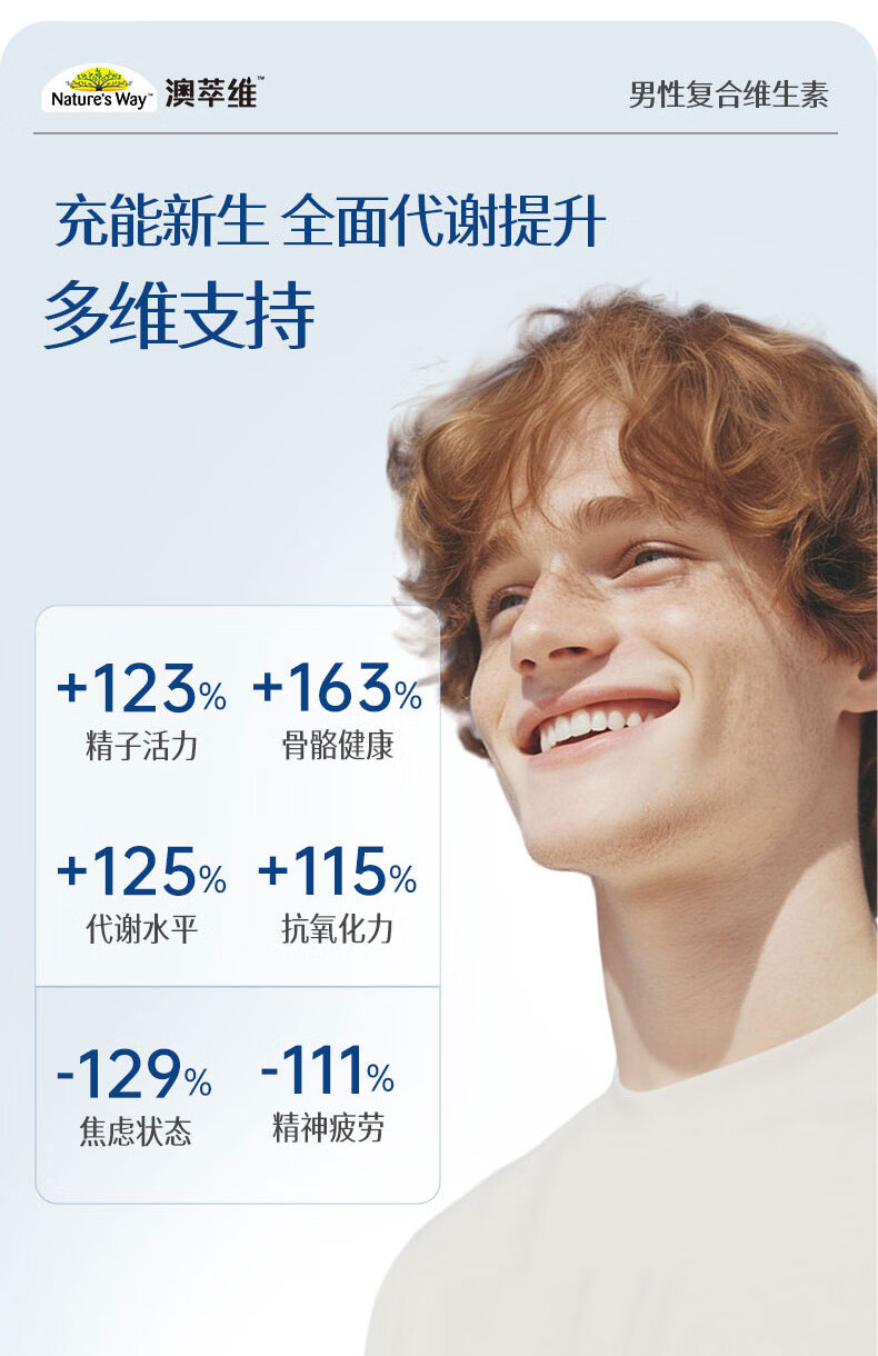 佳思敏(Nature's Way)澳萃维 男性复 合 维生素软糖 100粒/瓶 含多种维生素B族维C镁锌硒生物素 【15种男性营养】