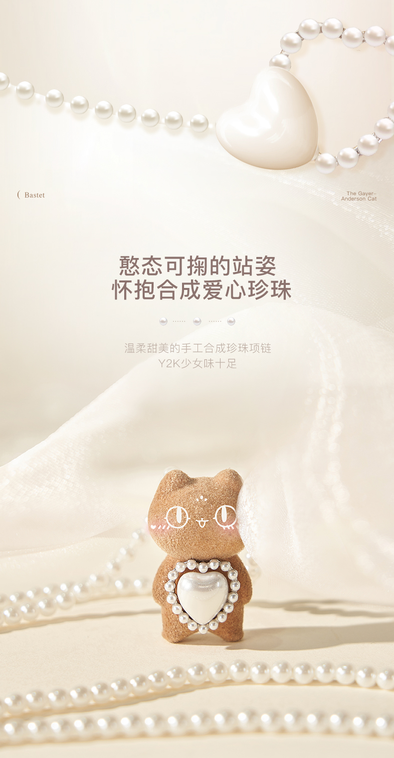 大英博物馆 巴斯特系列 米色植绒爱心珍珠 项链