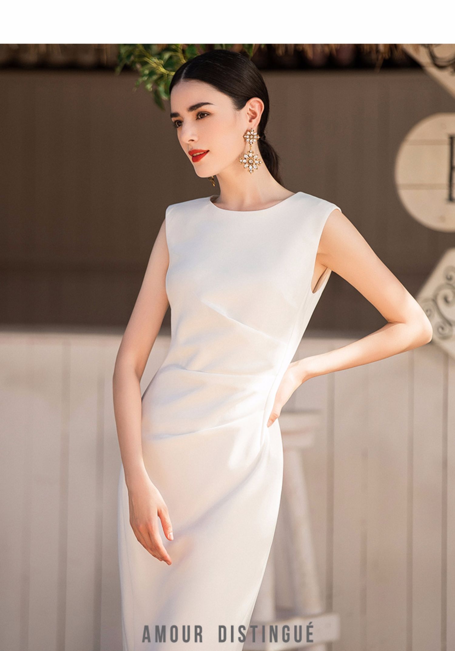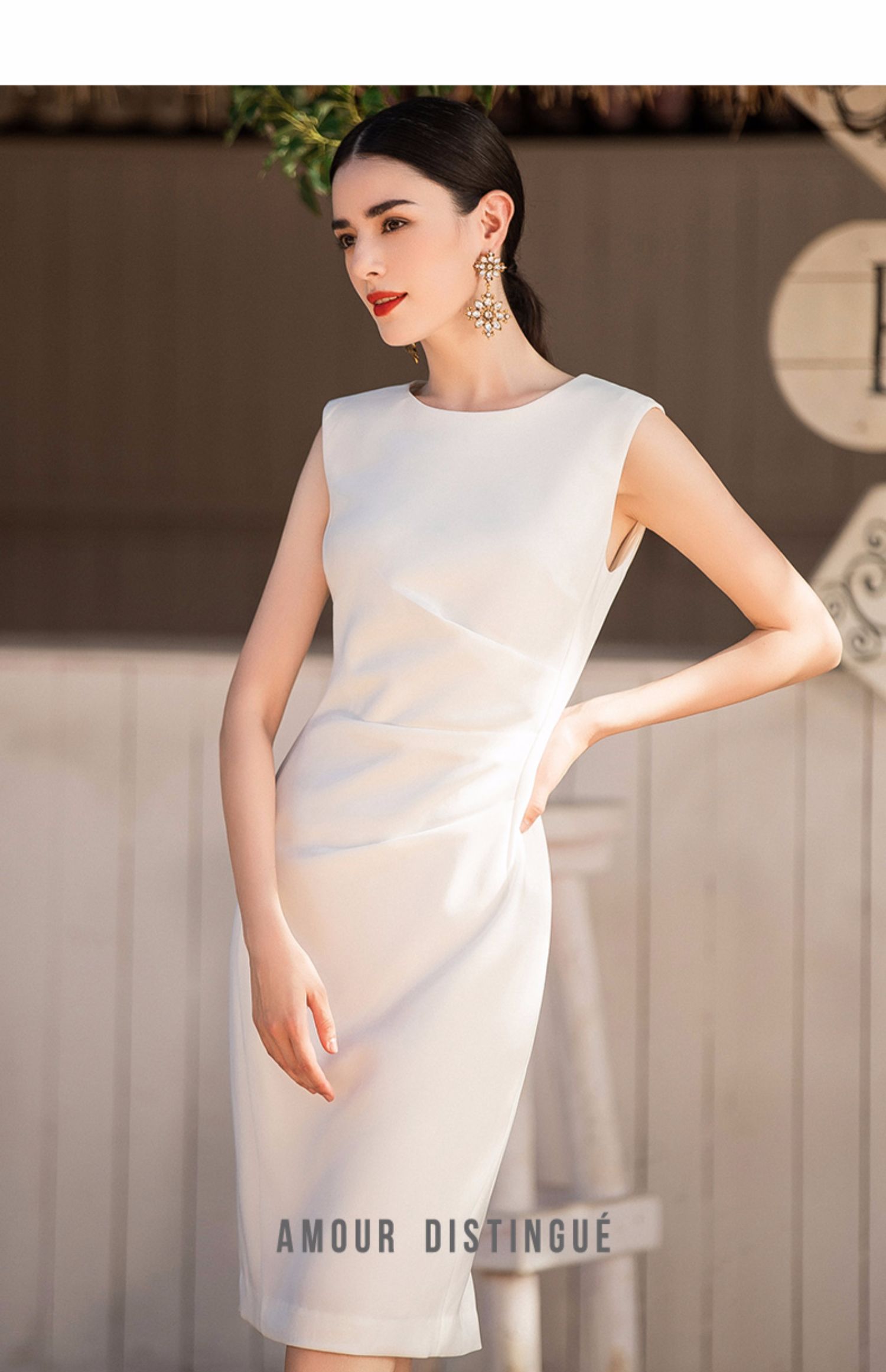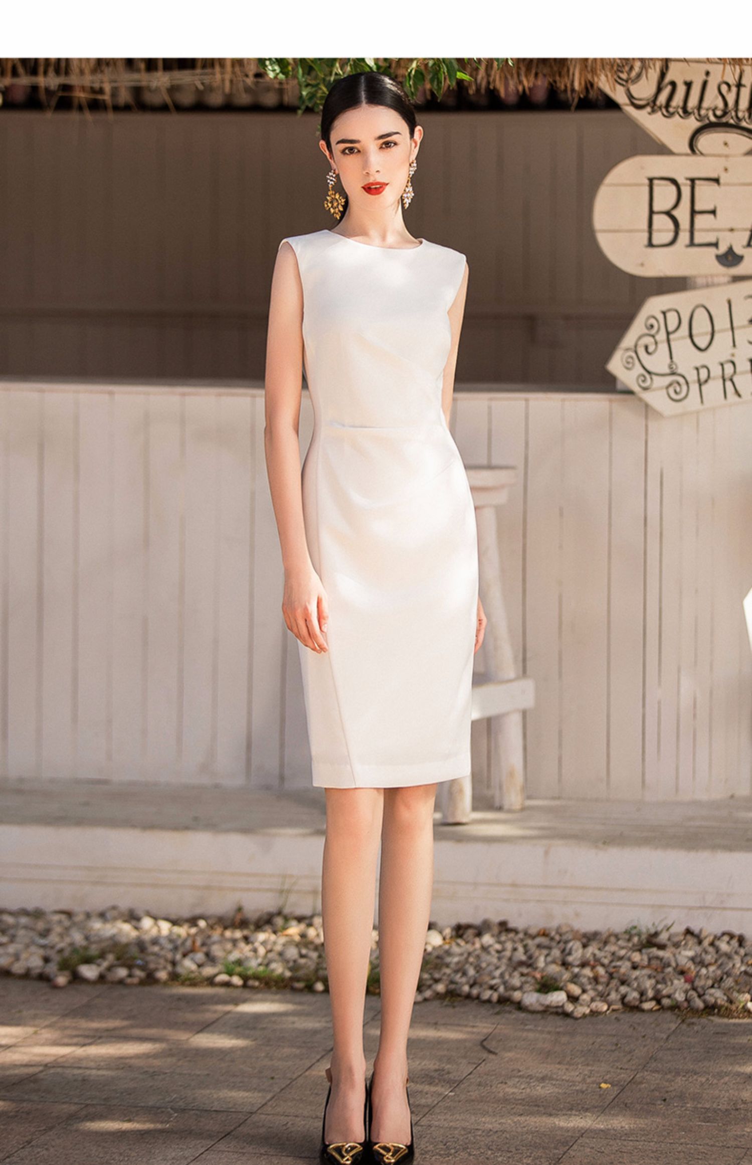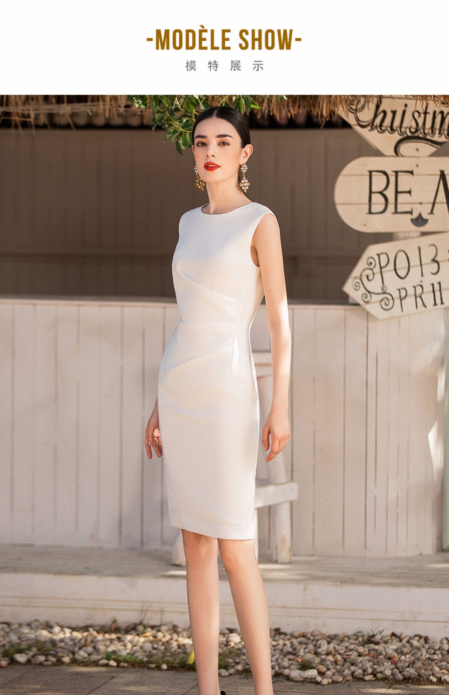 IWY/气质简约白色无袖连衣裙女时尚韩版百搭西装套裙修身OL职业工作服Q620-W