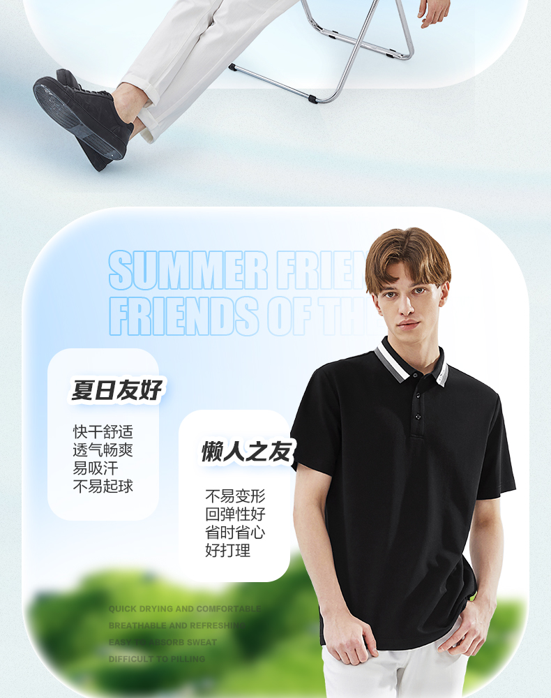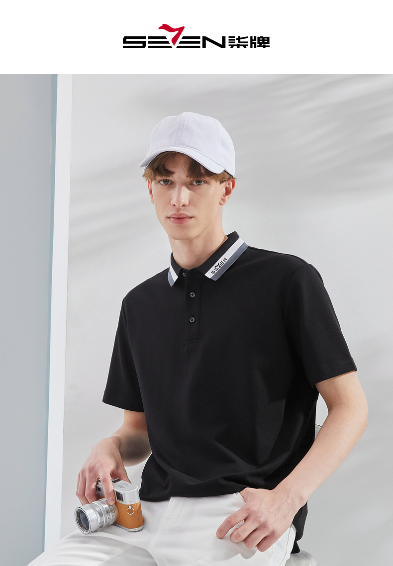 柒牌短袖男款polo衫夏季新款时尚青年休闲简约撞色翻领T恤衫 124T72070