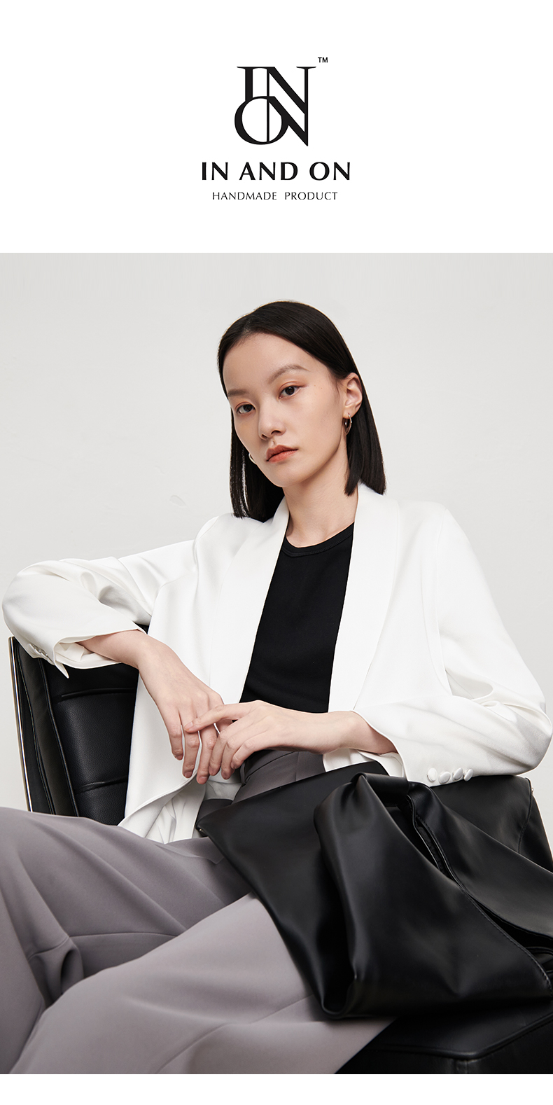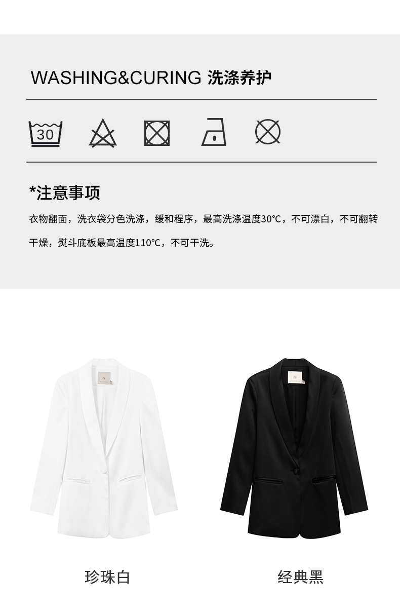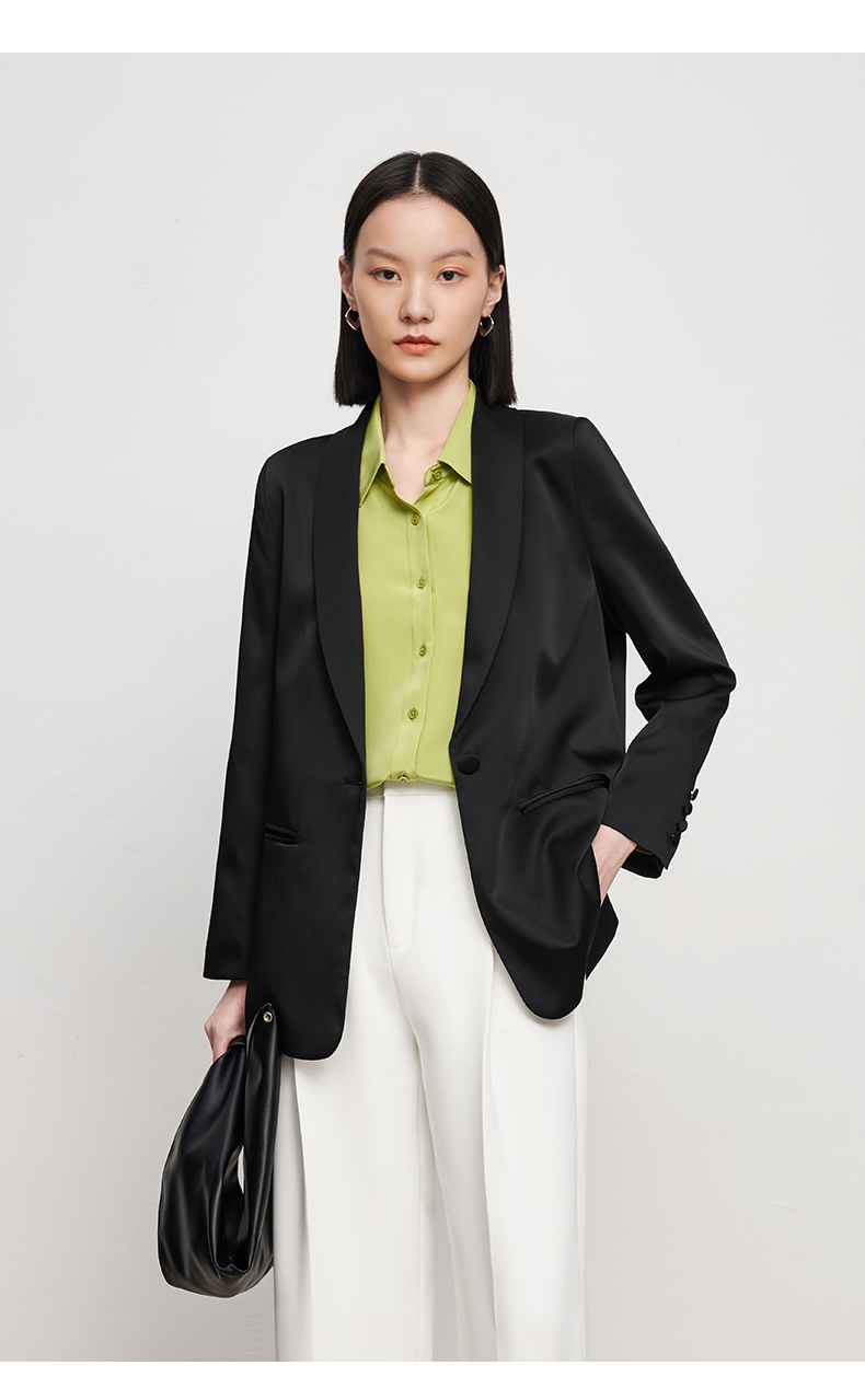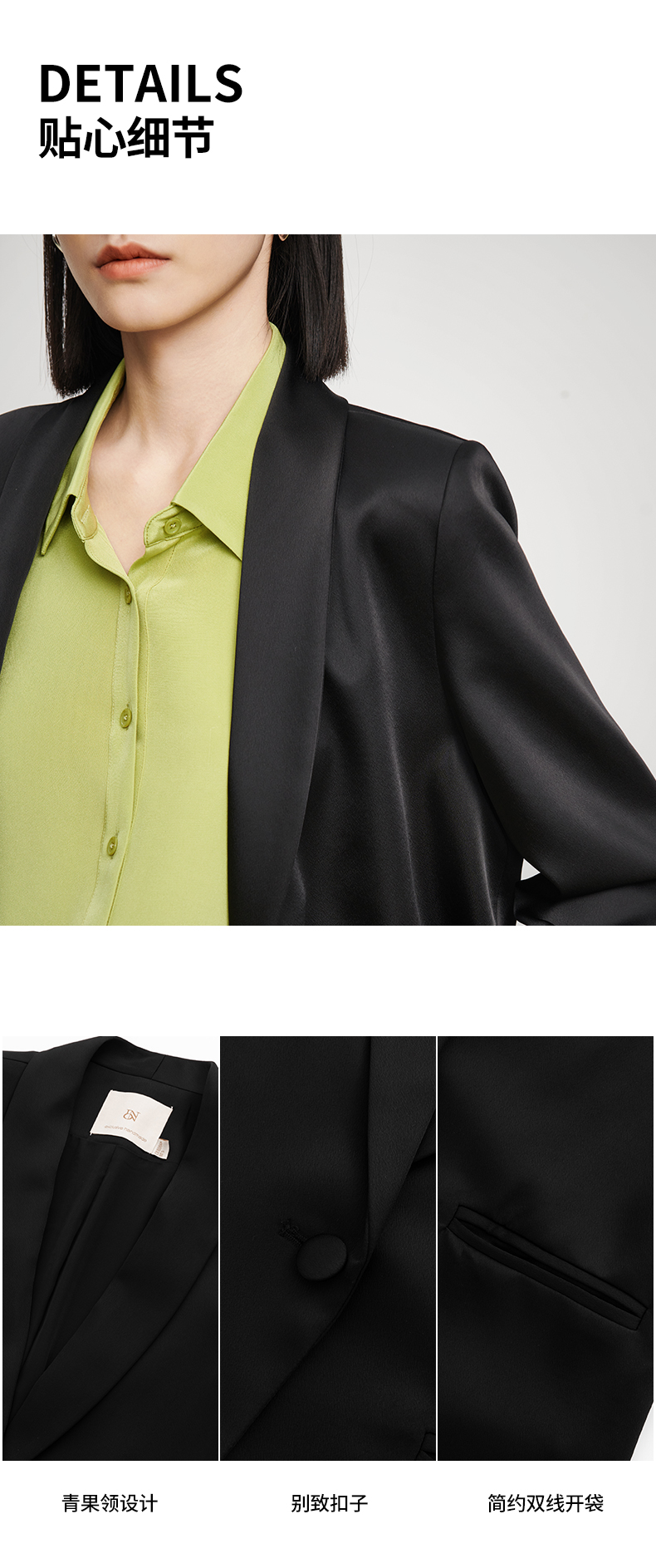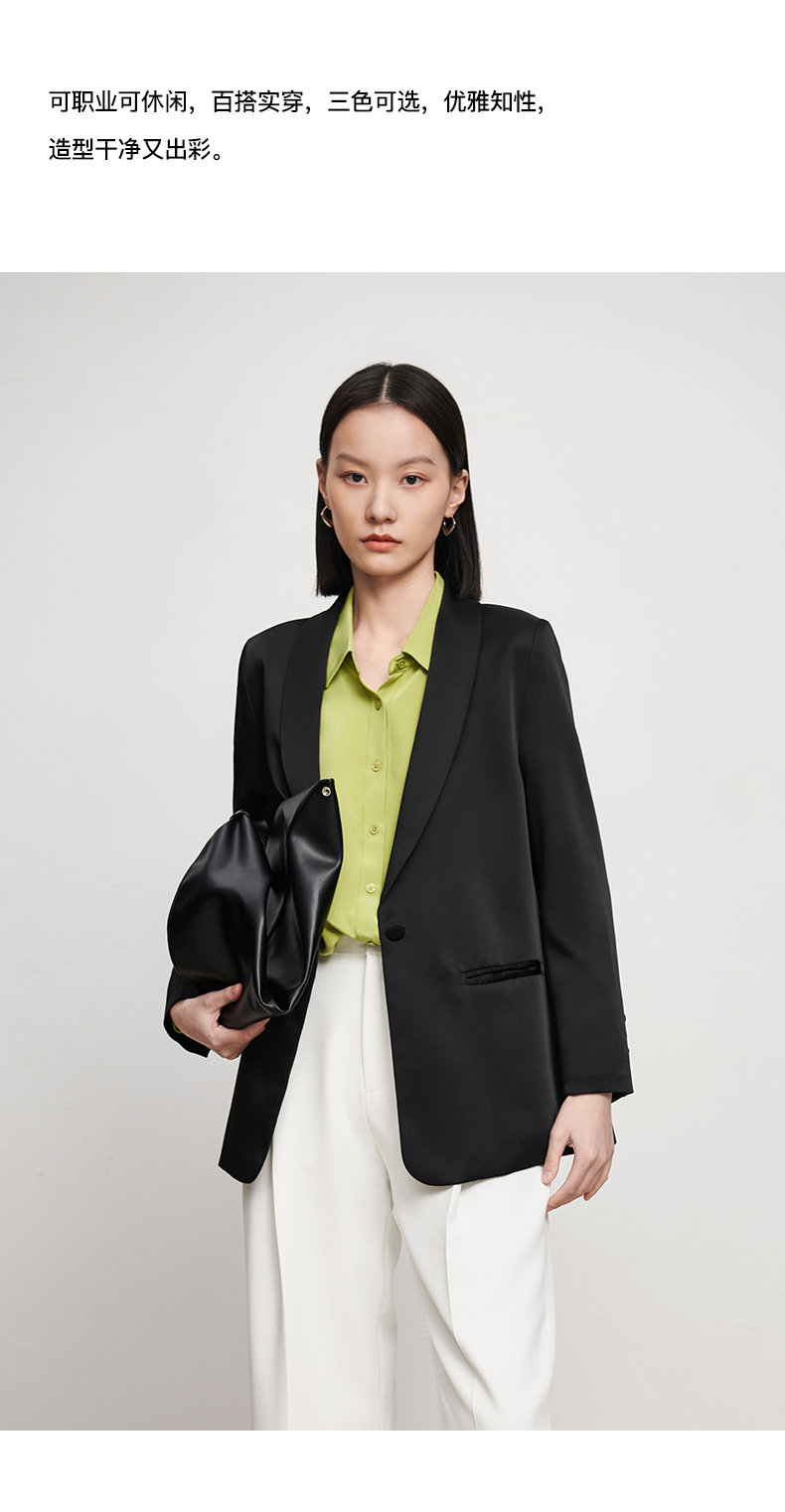 【品牌优选】【合作直发】IN AND ON21456春季新款青果领丝质西服轻奢缎面一粒扣职业西装