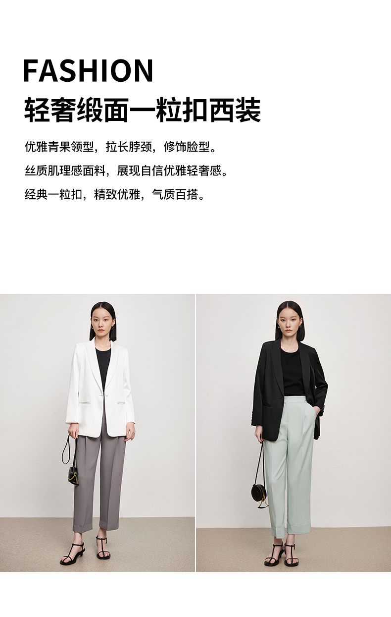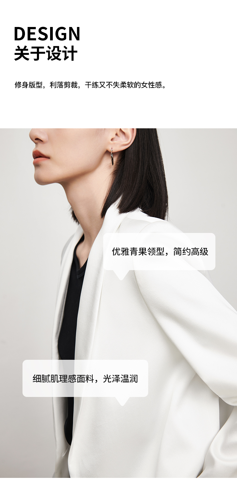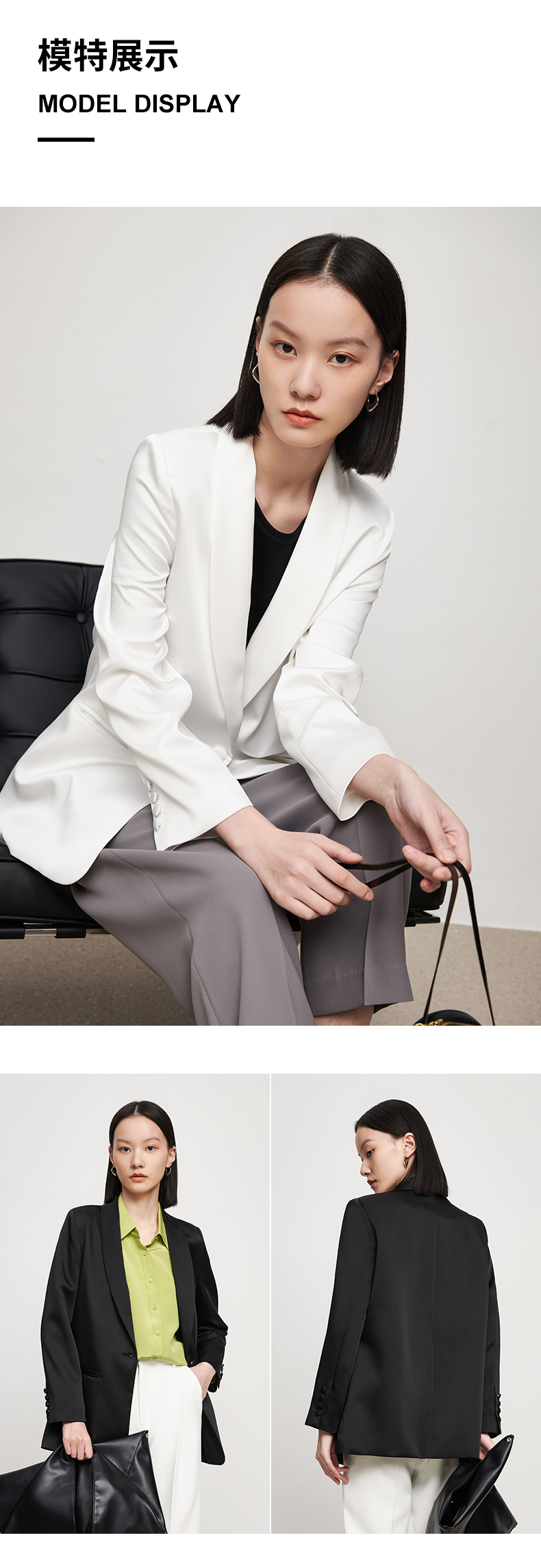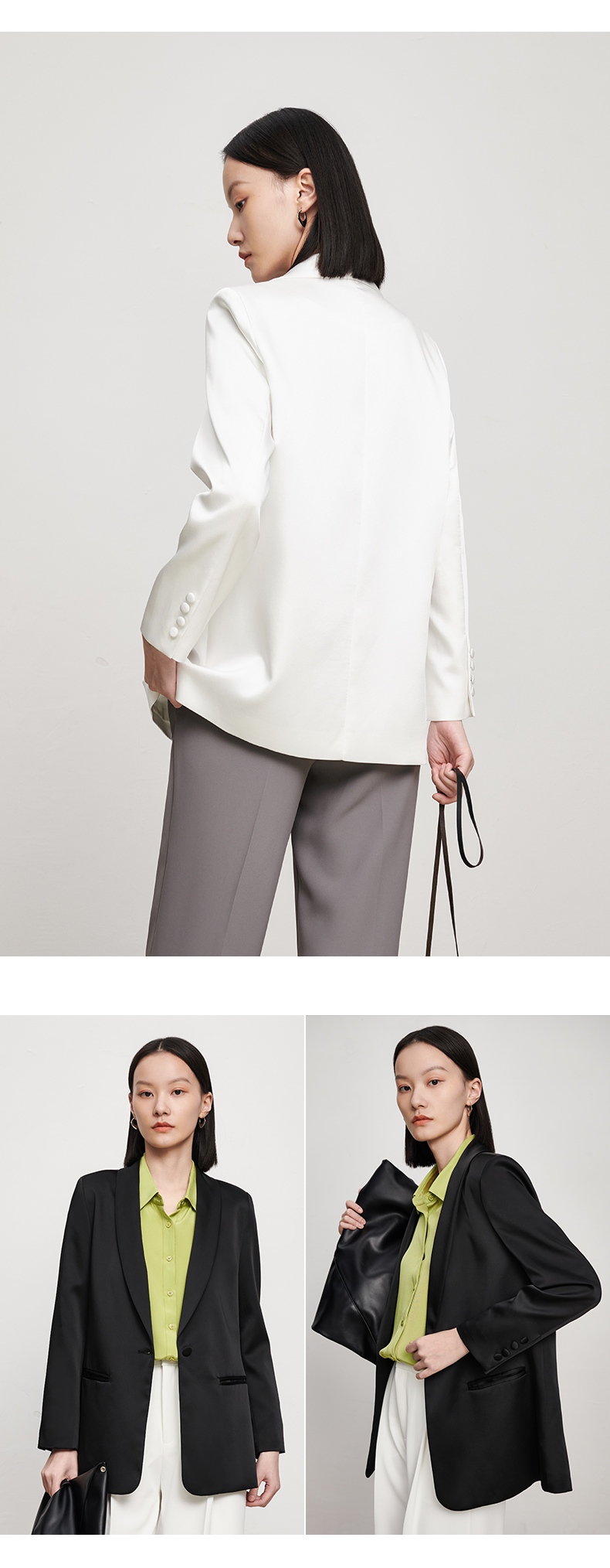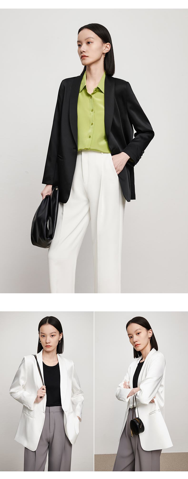【品牌优选】【合作直发】IN AND ON21456春季新款青果领丝质西服轻奢缎面一粒扣职业西装