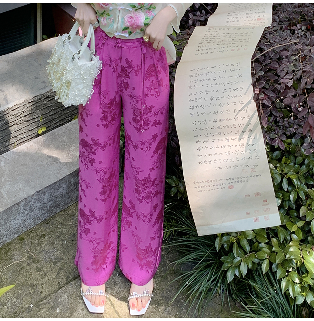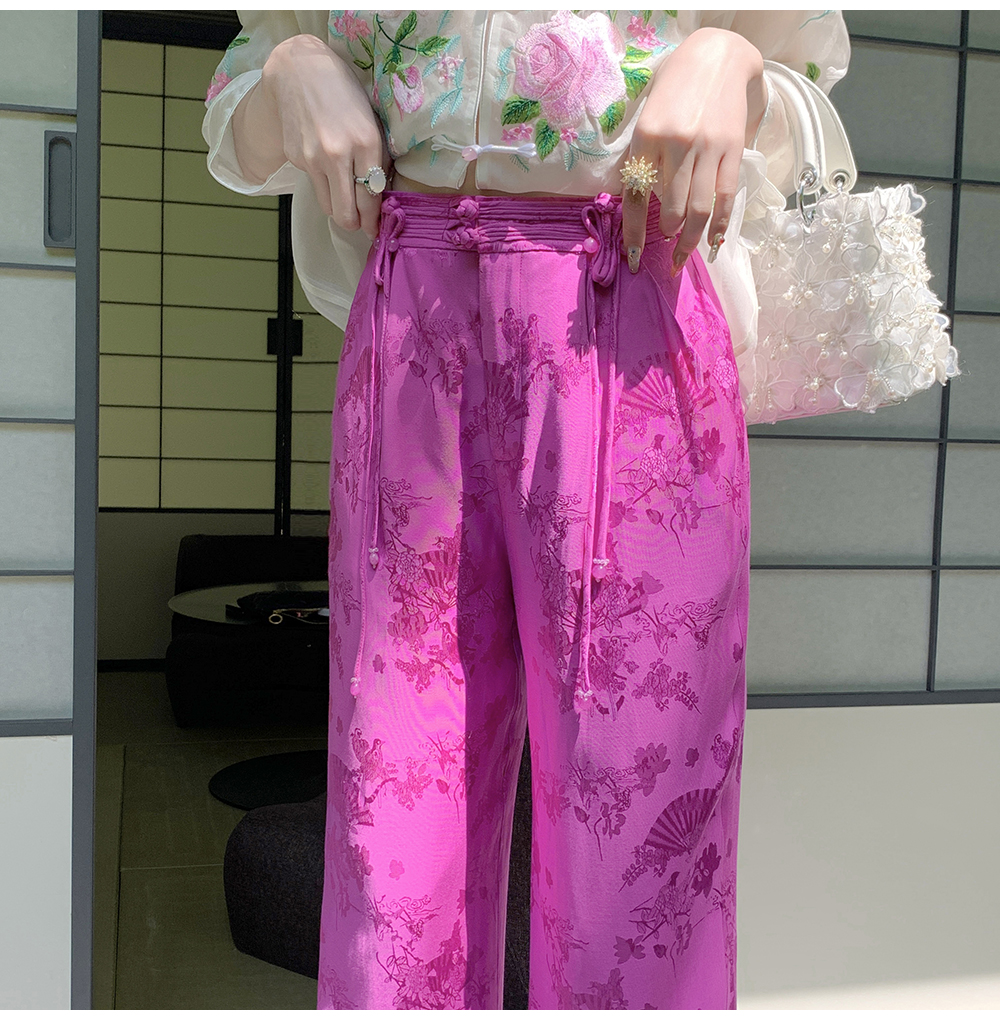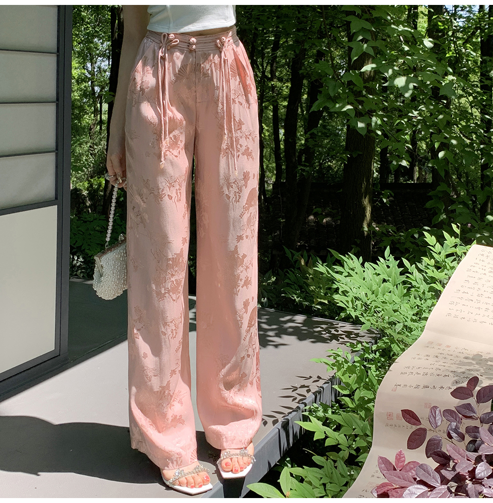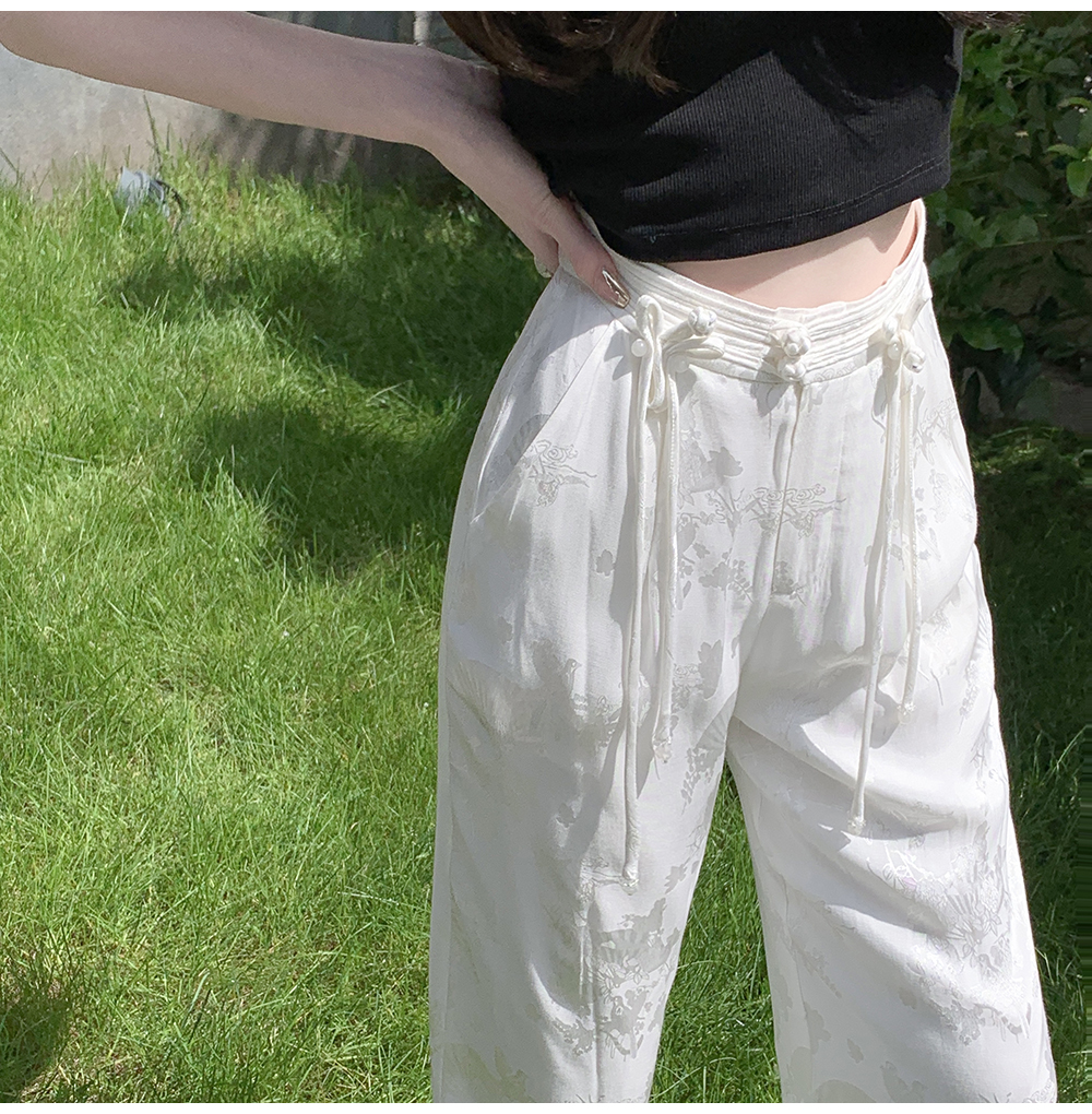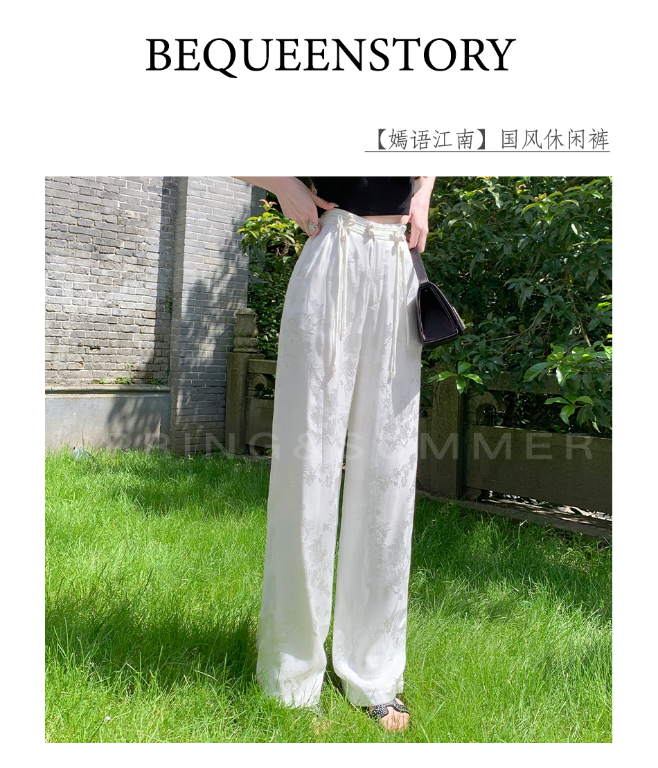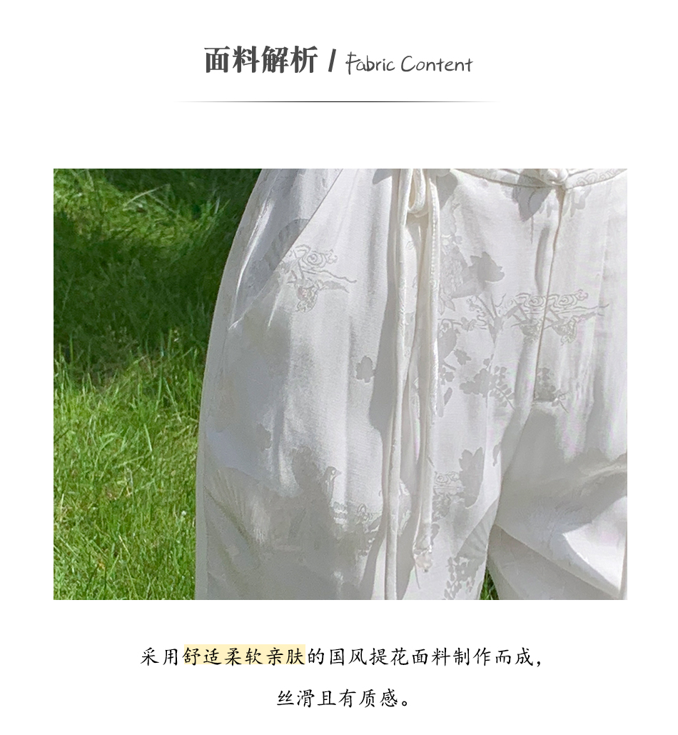 BeQueenStory【国风凉凉裤】新中式提花盘扣阔腿休闲裤2023夏新款