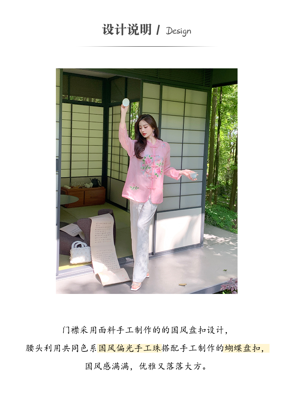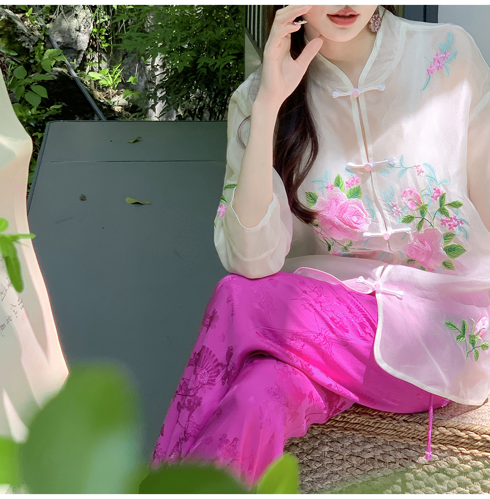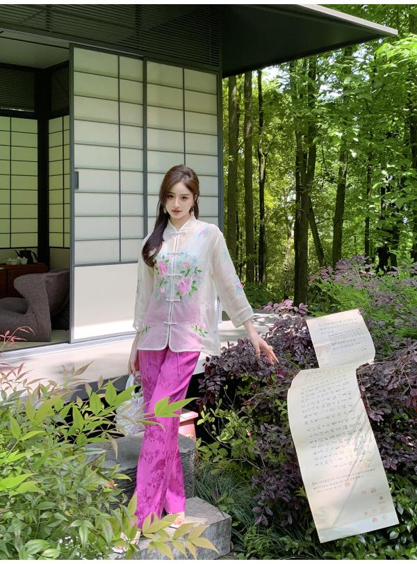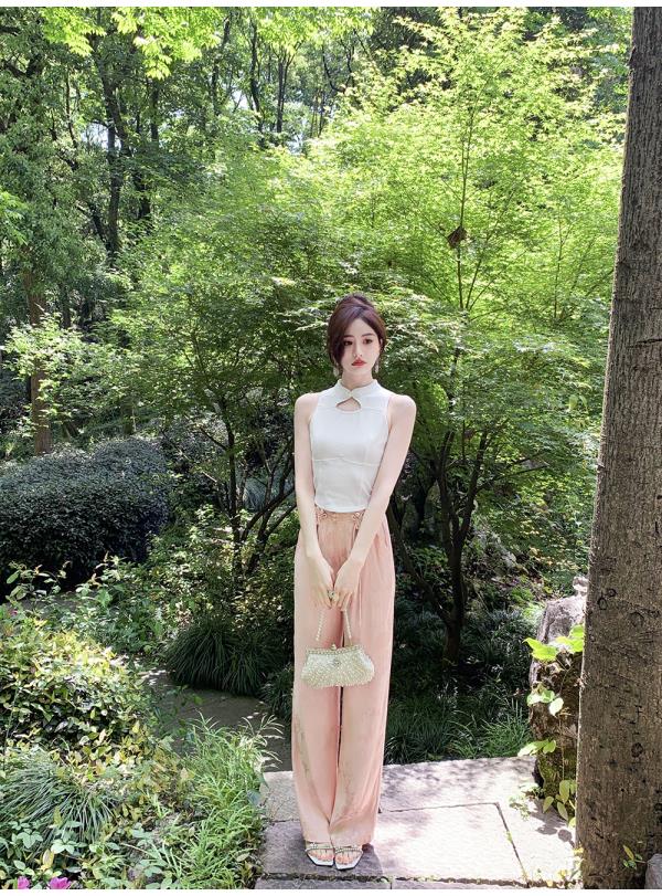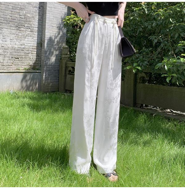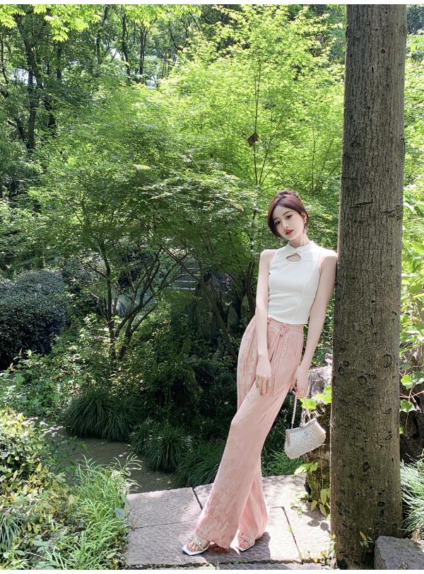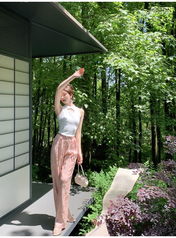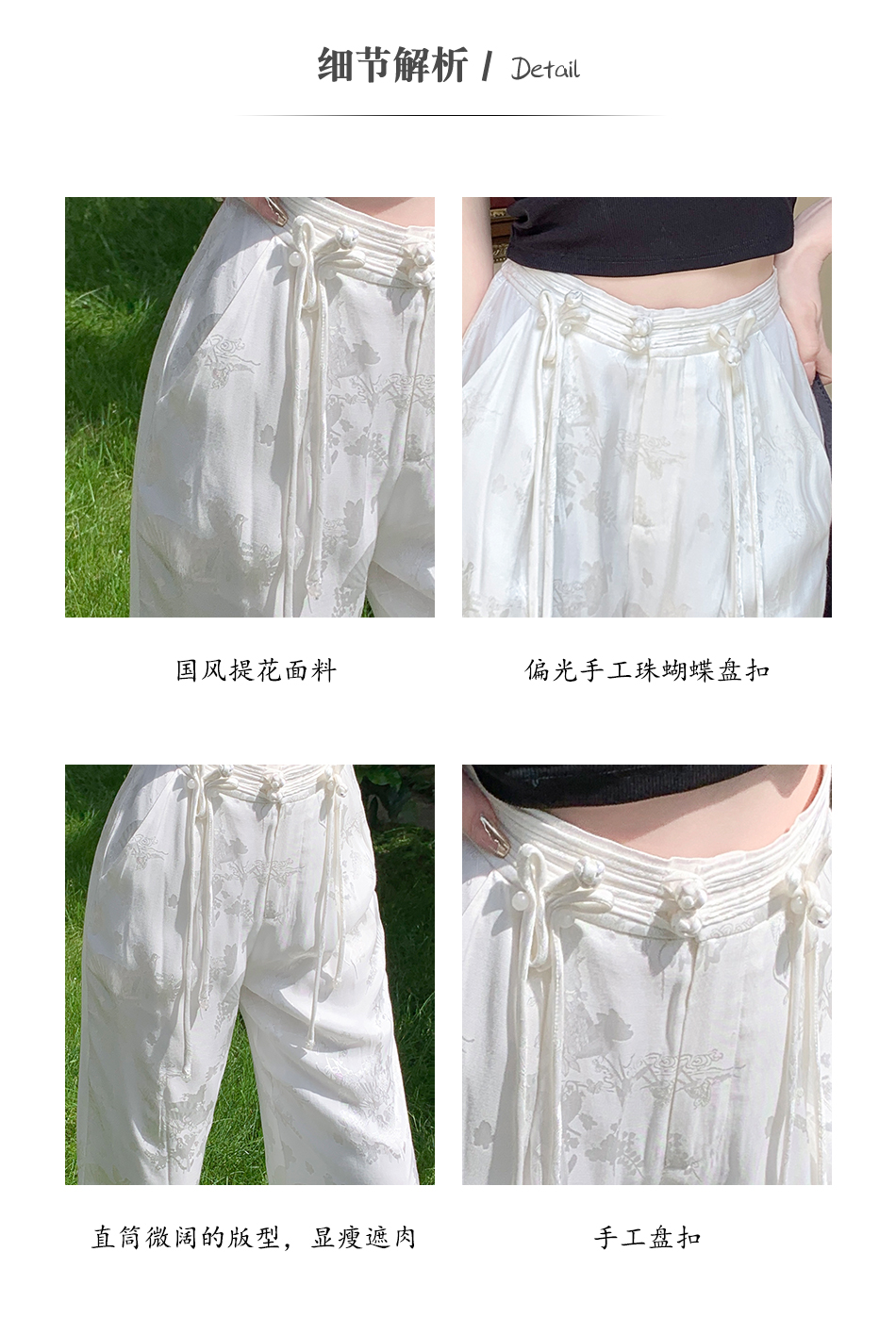 BeQueenStory【国风凉凉裤】新中式提花盘扣阔腿休闲裤2023夏新款