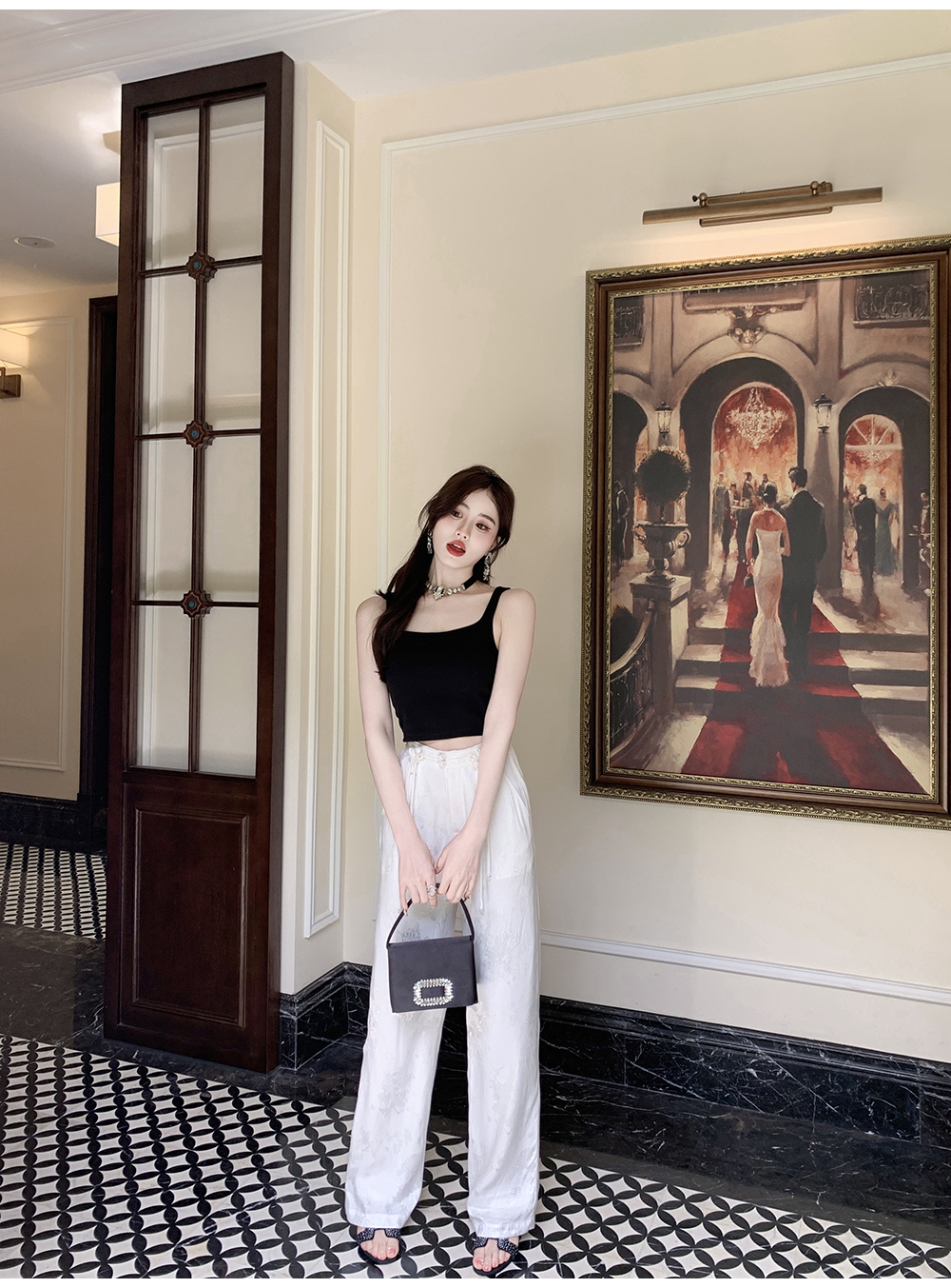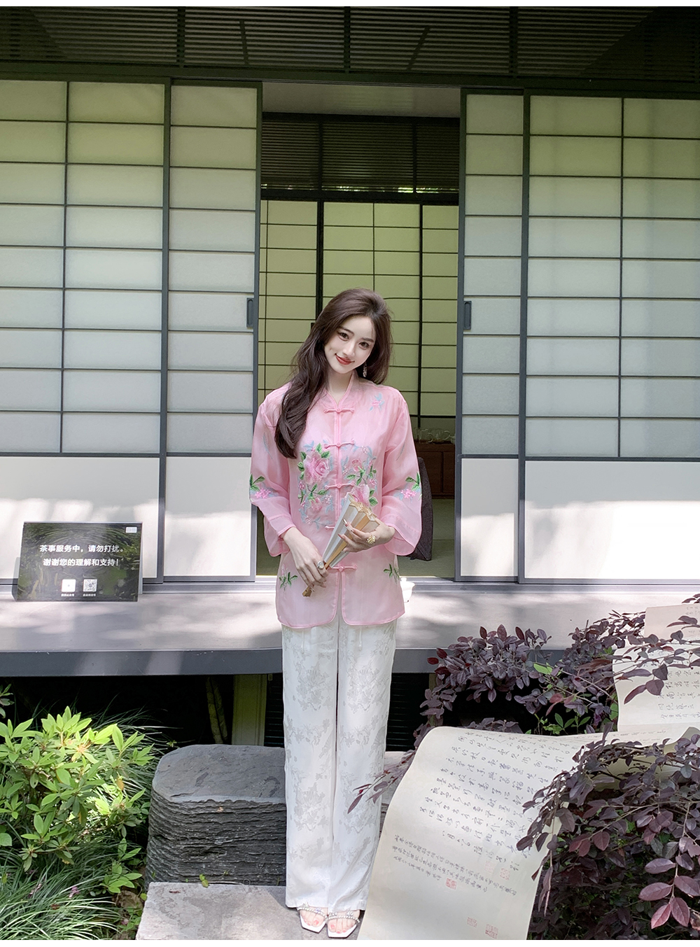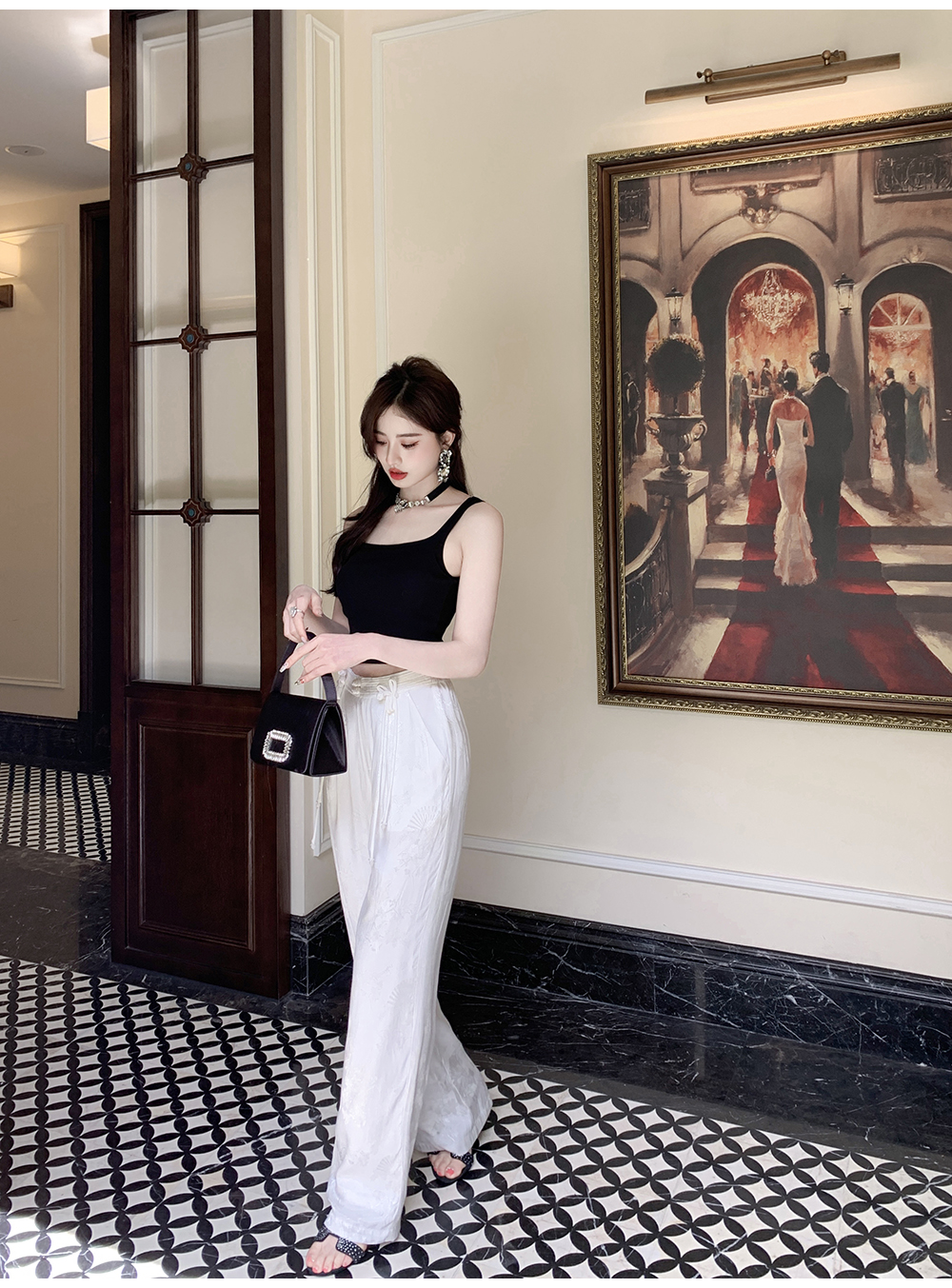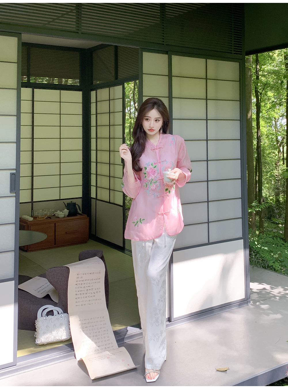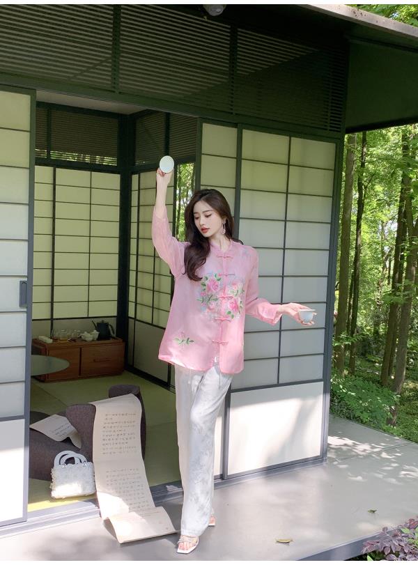 BeQueenStory【国风凉凉裤】新中式提花盘扣阔腿休闲裤2023夏新款