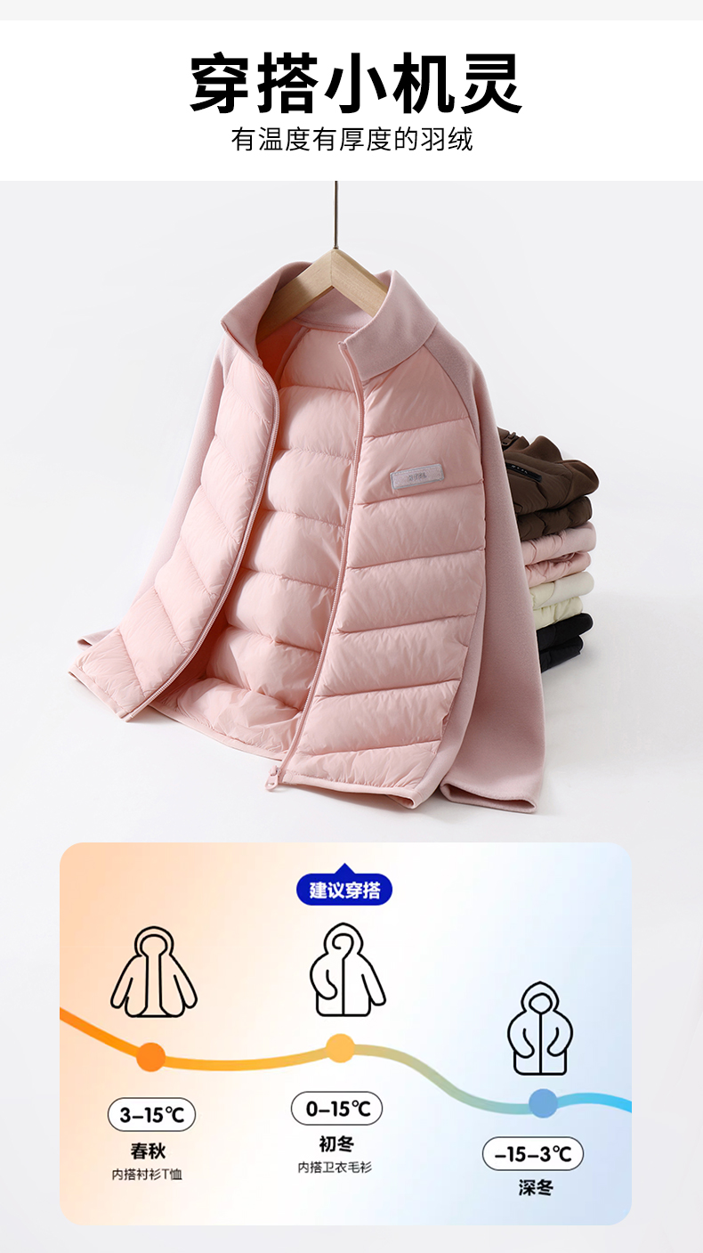 款拼接轻盈轻薄羽绒服秋冬90%白鸭绒校服神器