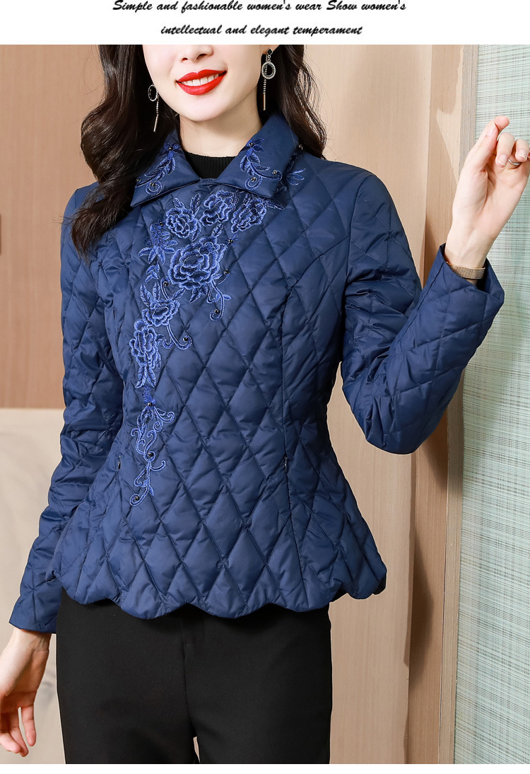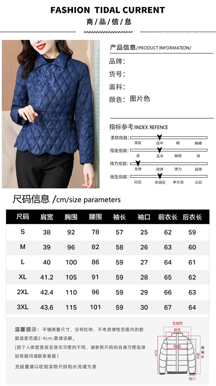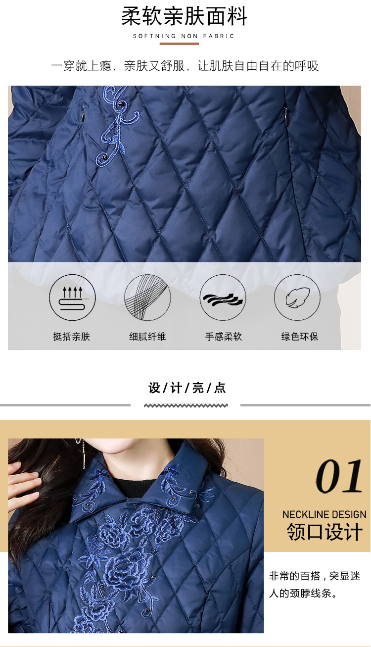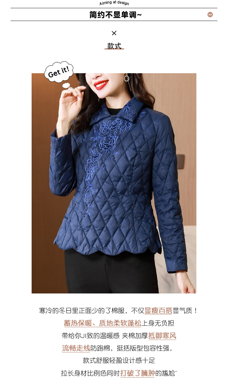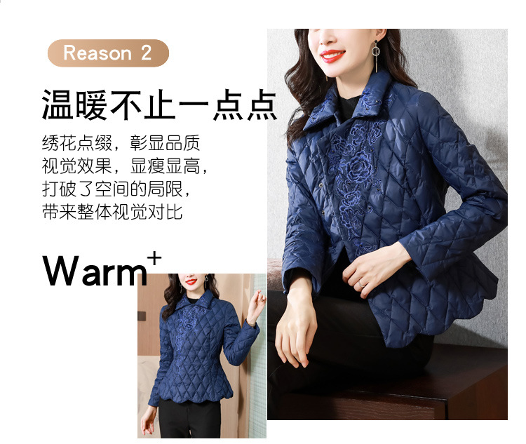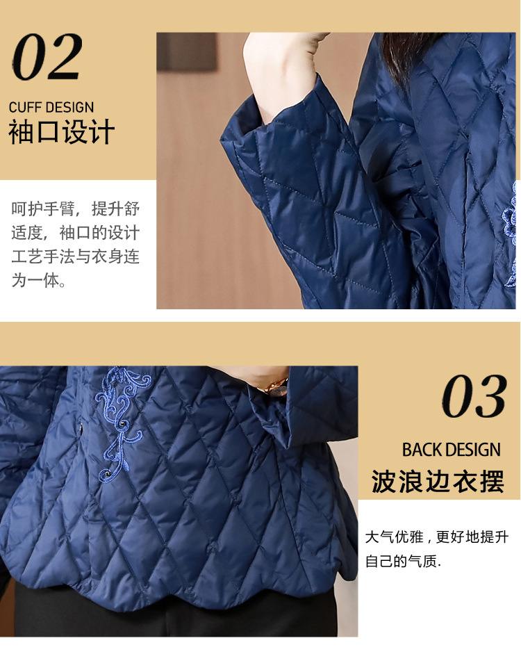 绣花羽绒棉服外套,轻薄棉袄中年妈妈保暖上衣KQL-B43N8260