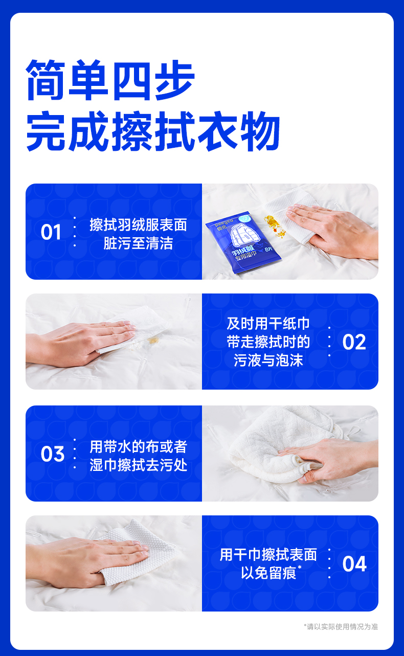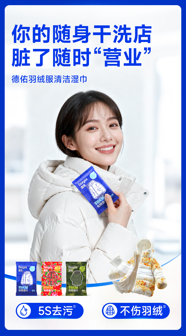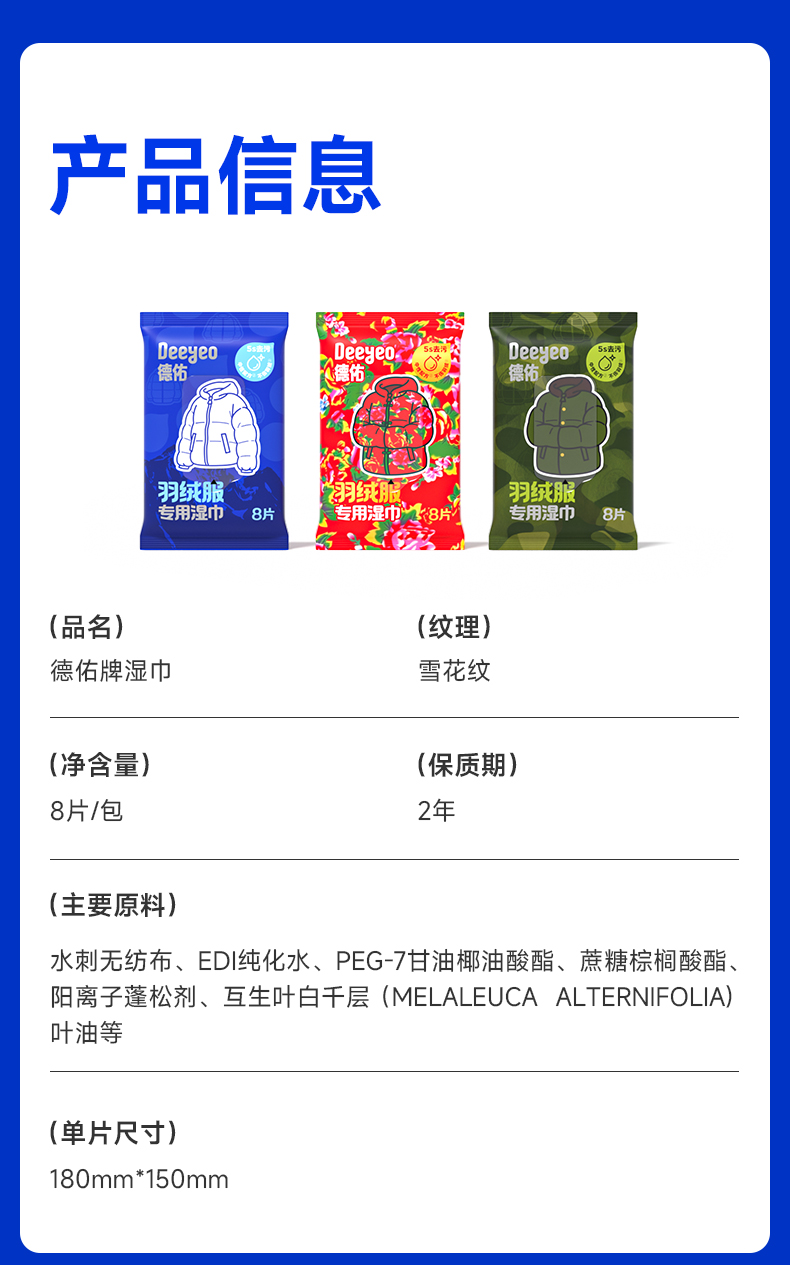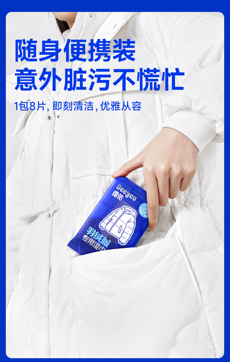 德佑羽绒服免洗清洁湿巾羽绒服湿巾8片/包*3包/7包