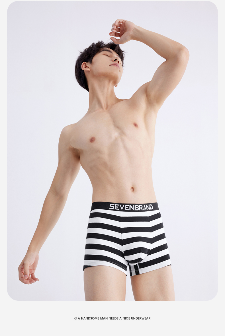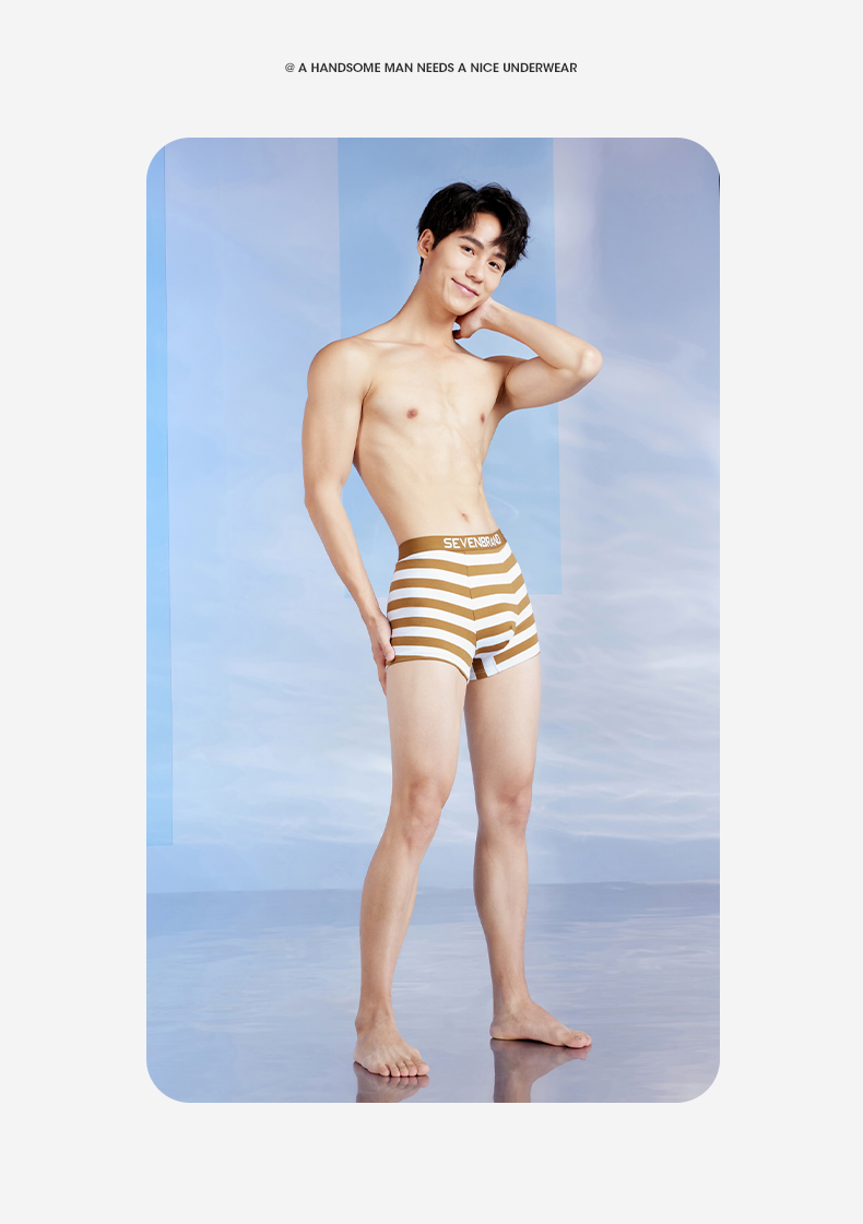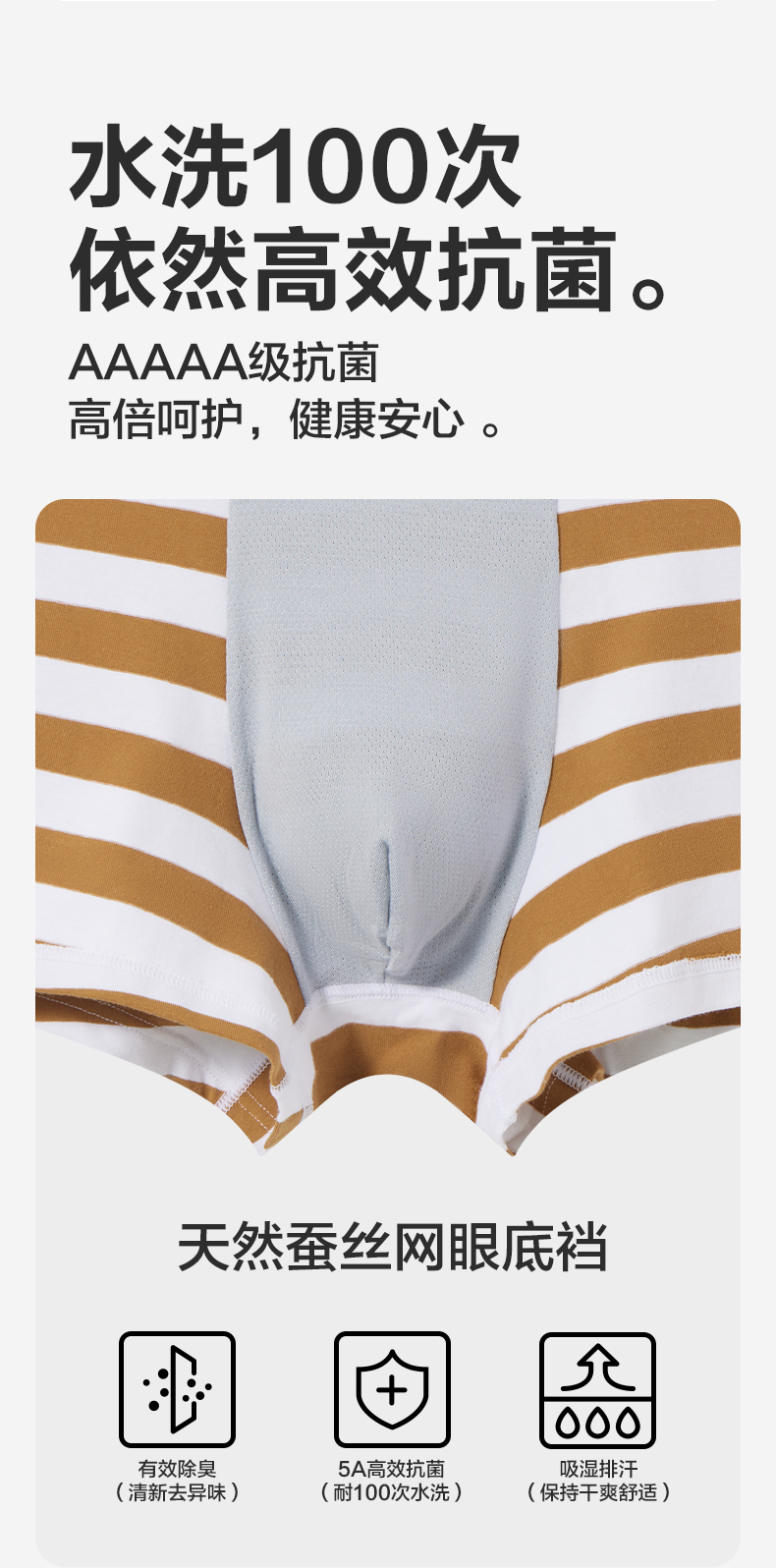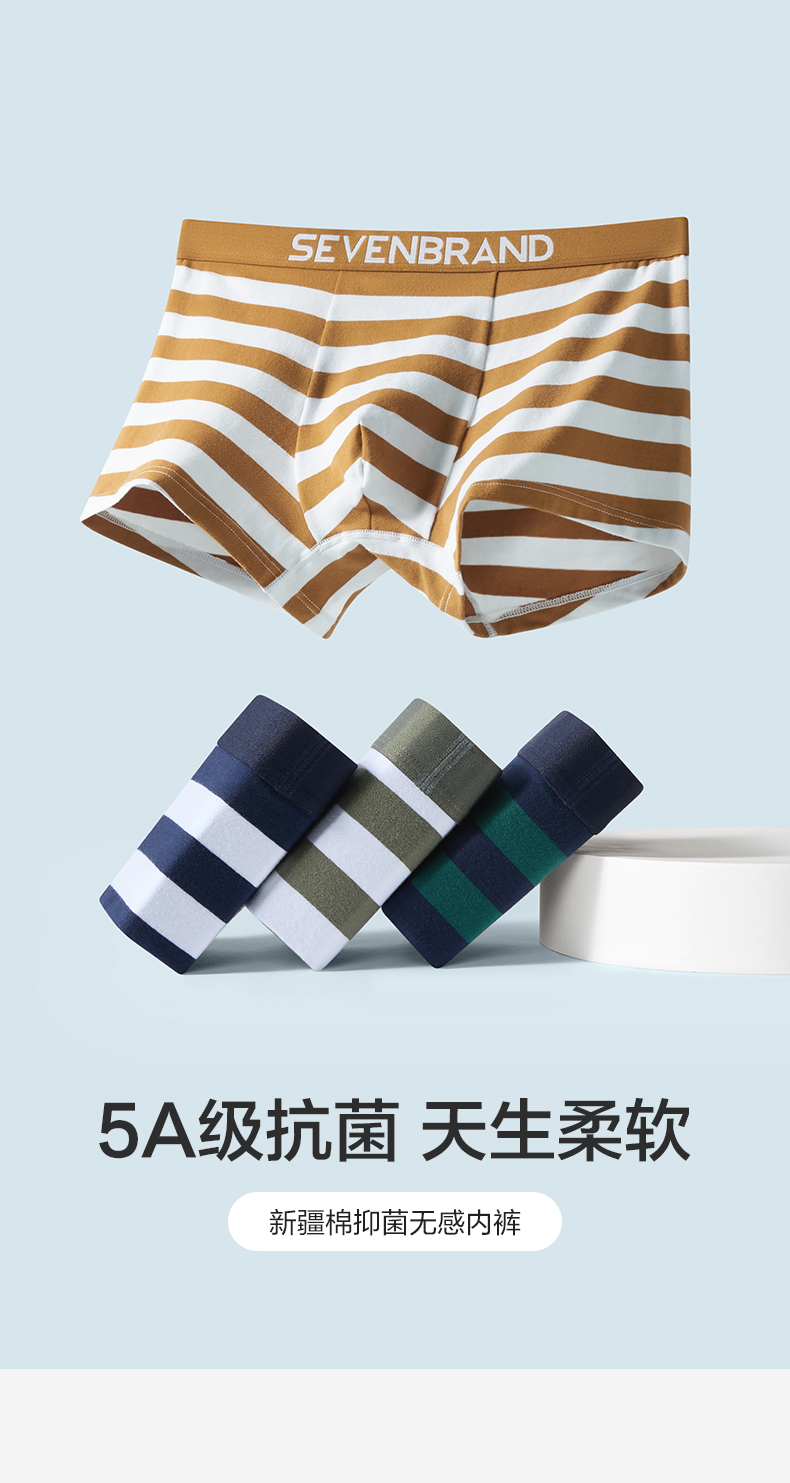 【礼盒3条装】柒牌男士内裤男生桑蚕丝彩条纹抗菌平角裤衩男式四角棉质短裤男款 126F70170
