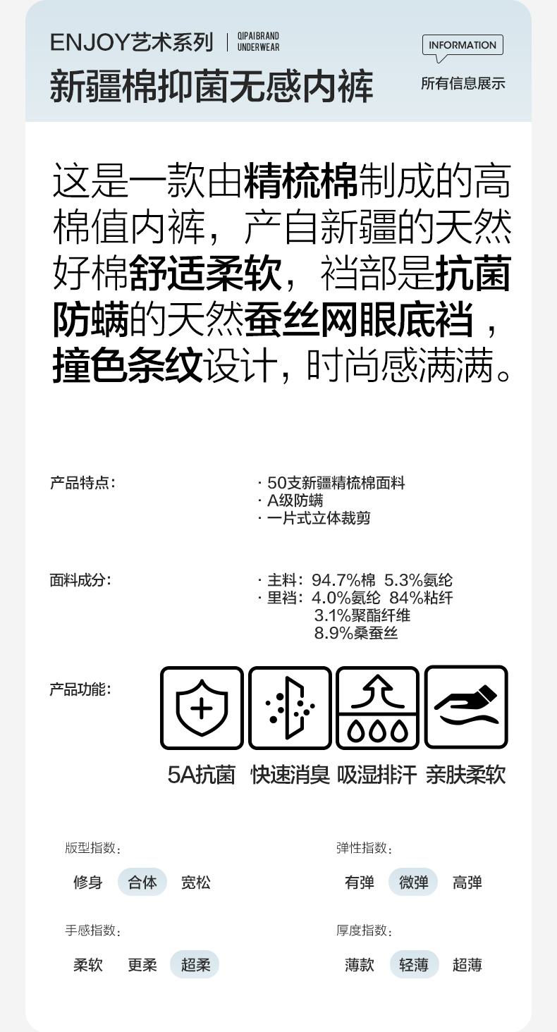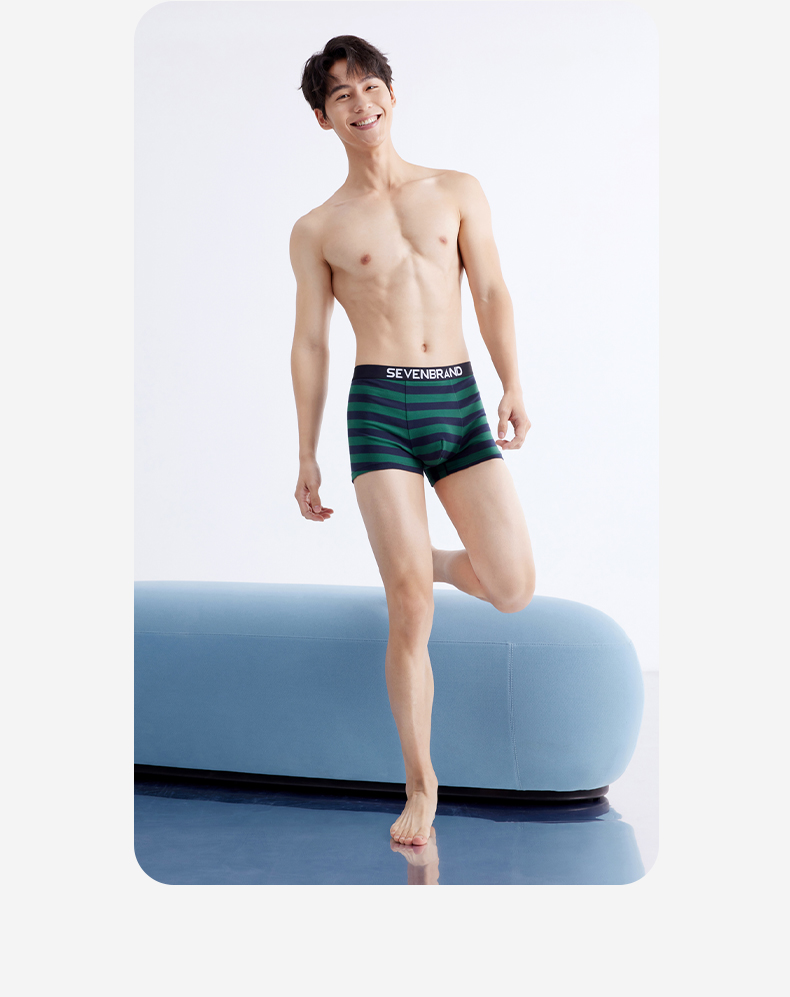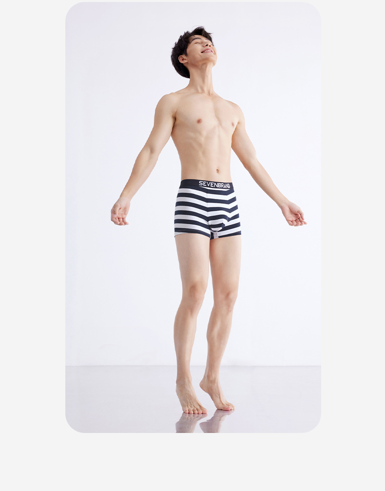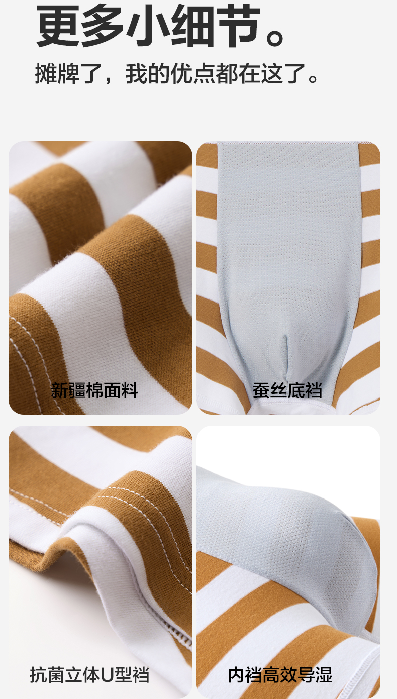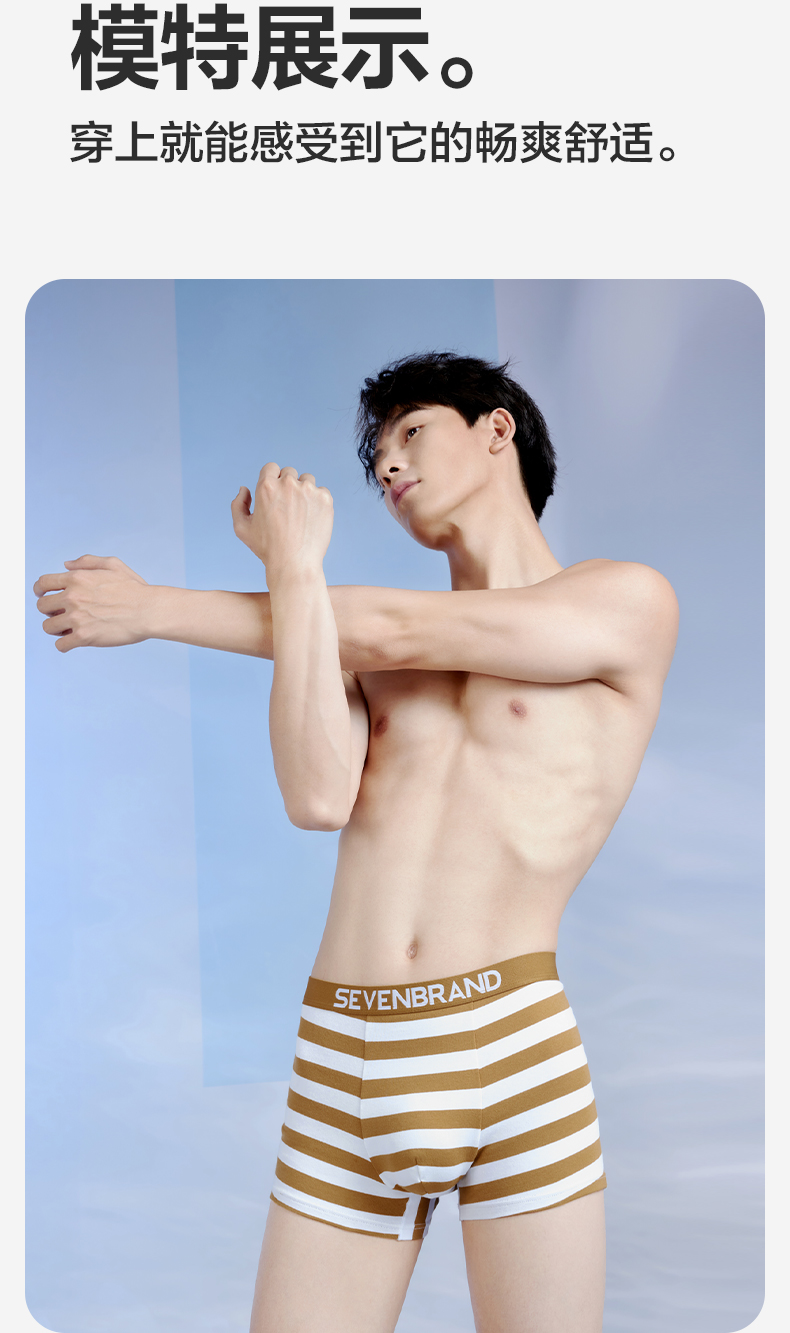 【礼盒3条装】柒牌男士内裤男生桑蚕丝彩条纹抗菌平角裤衩男式四角棉质短裤男款 126F70170