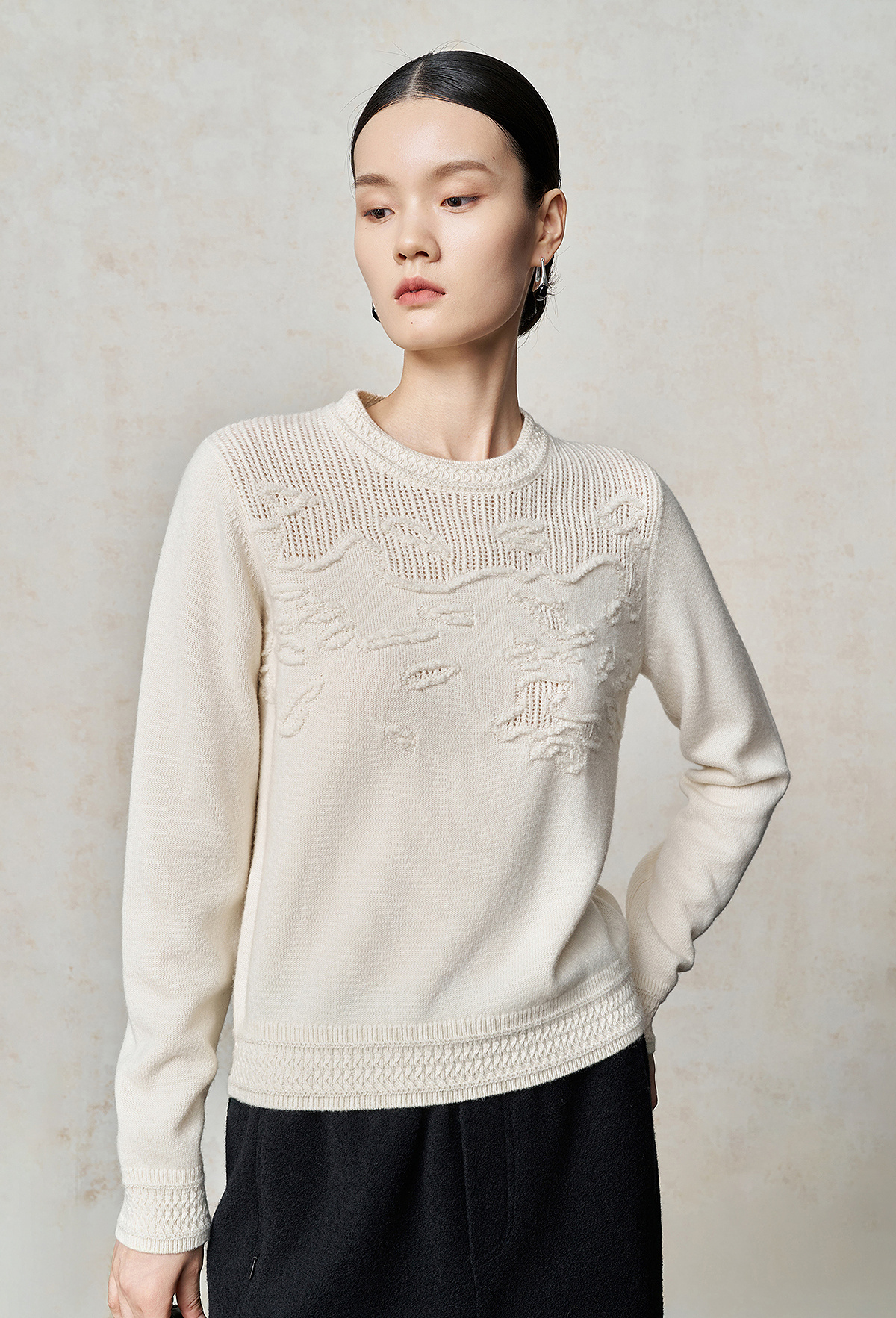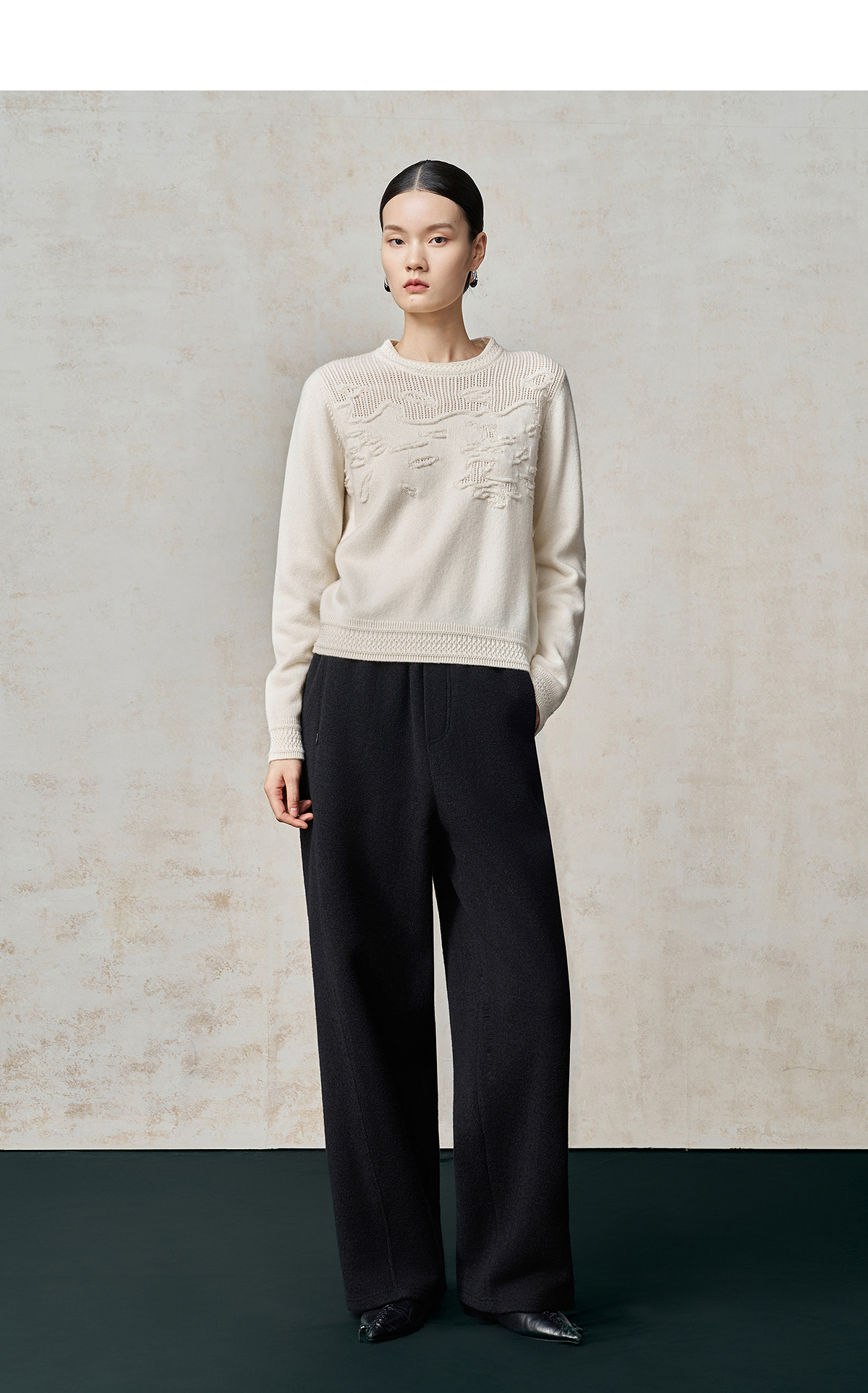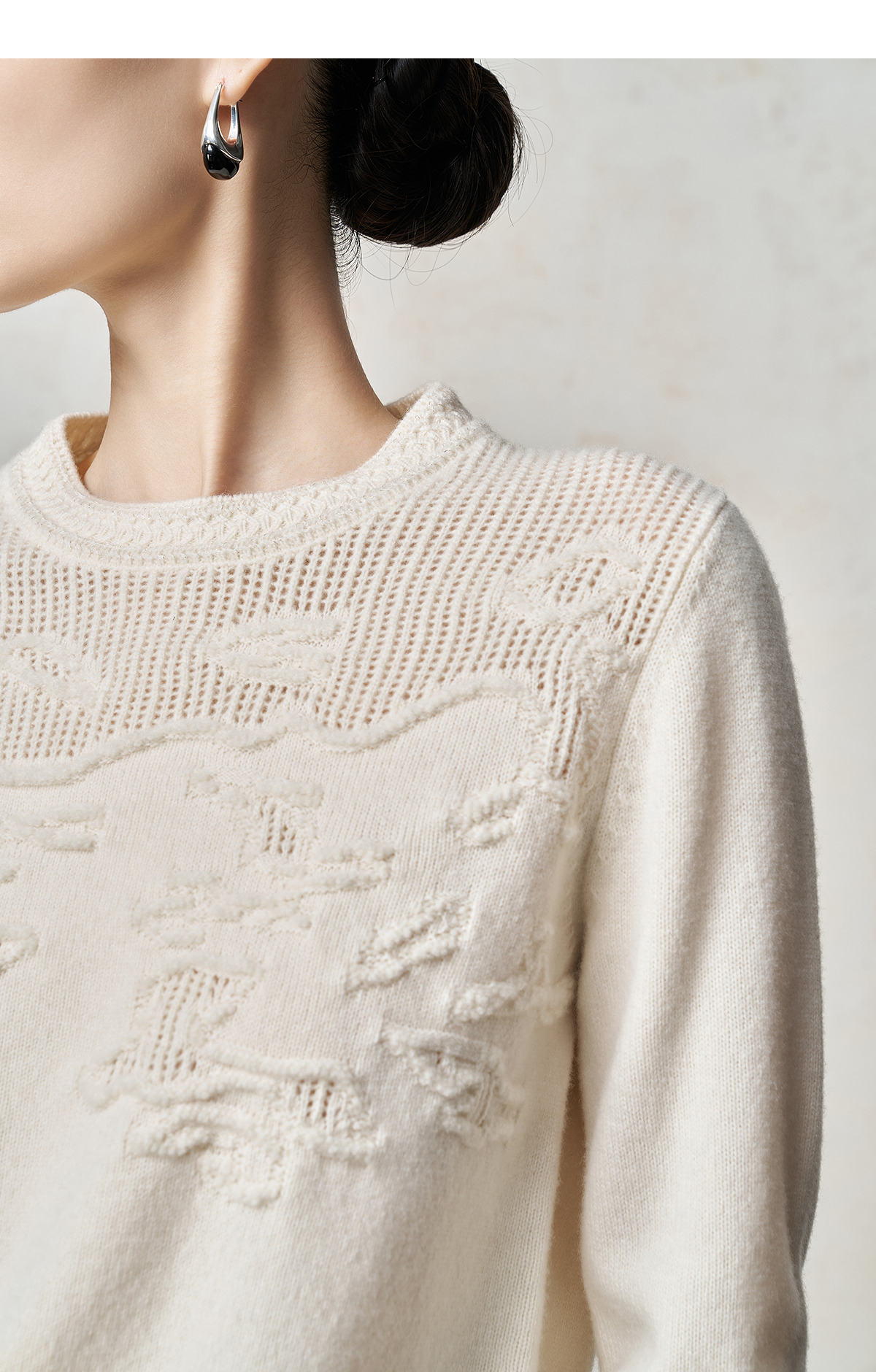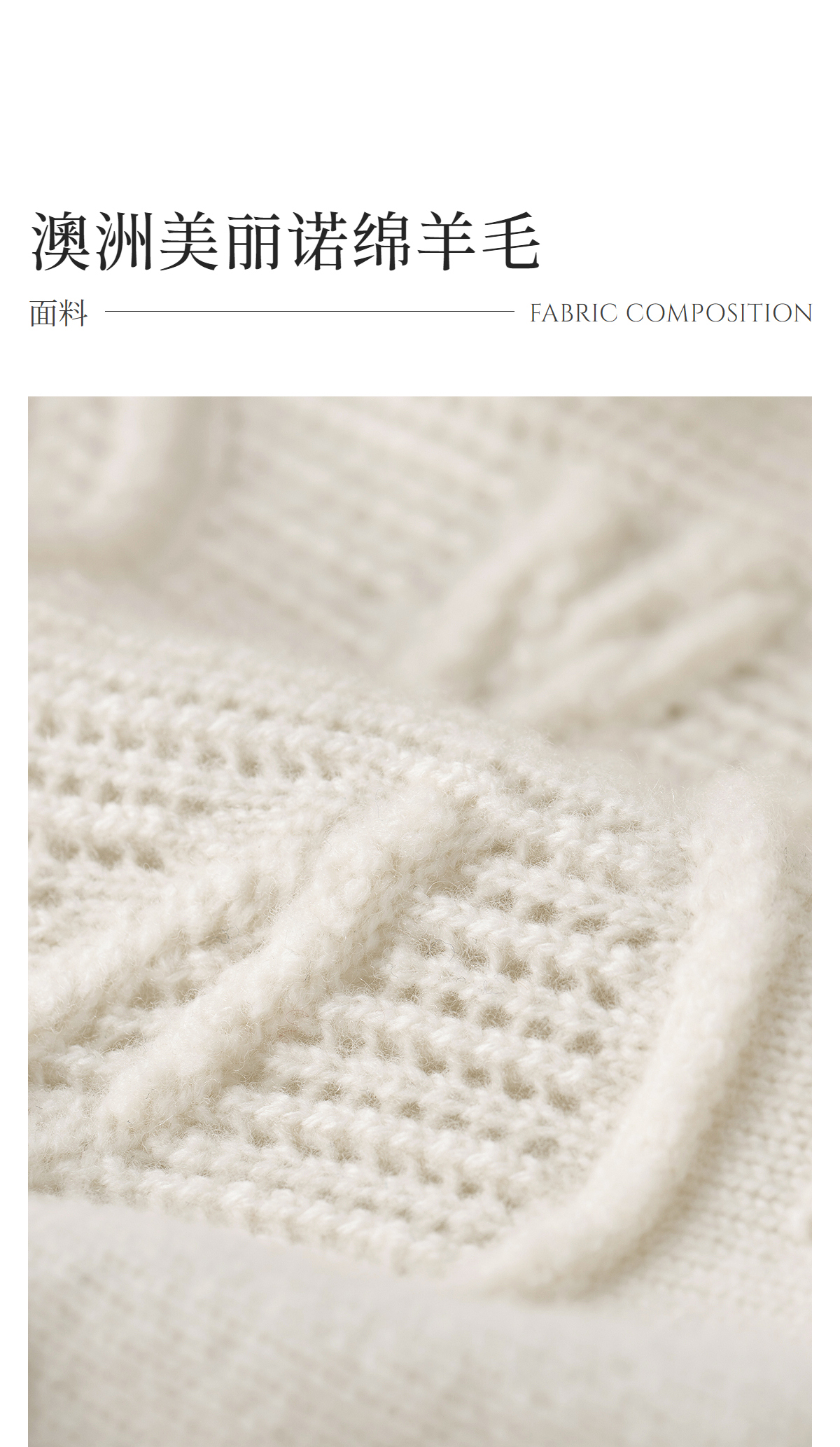 【林栖设计小店】绵羊毛罗纹镂空肌理感毛衣优雅2025秋冬新款毛织上衣女1954017