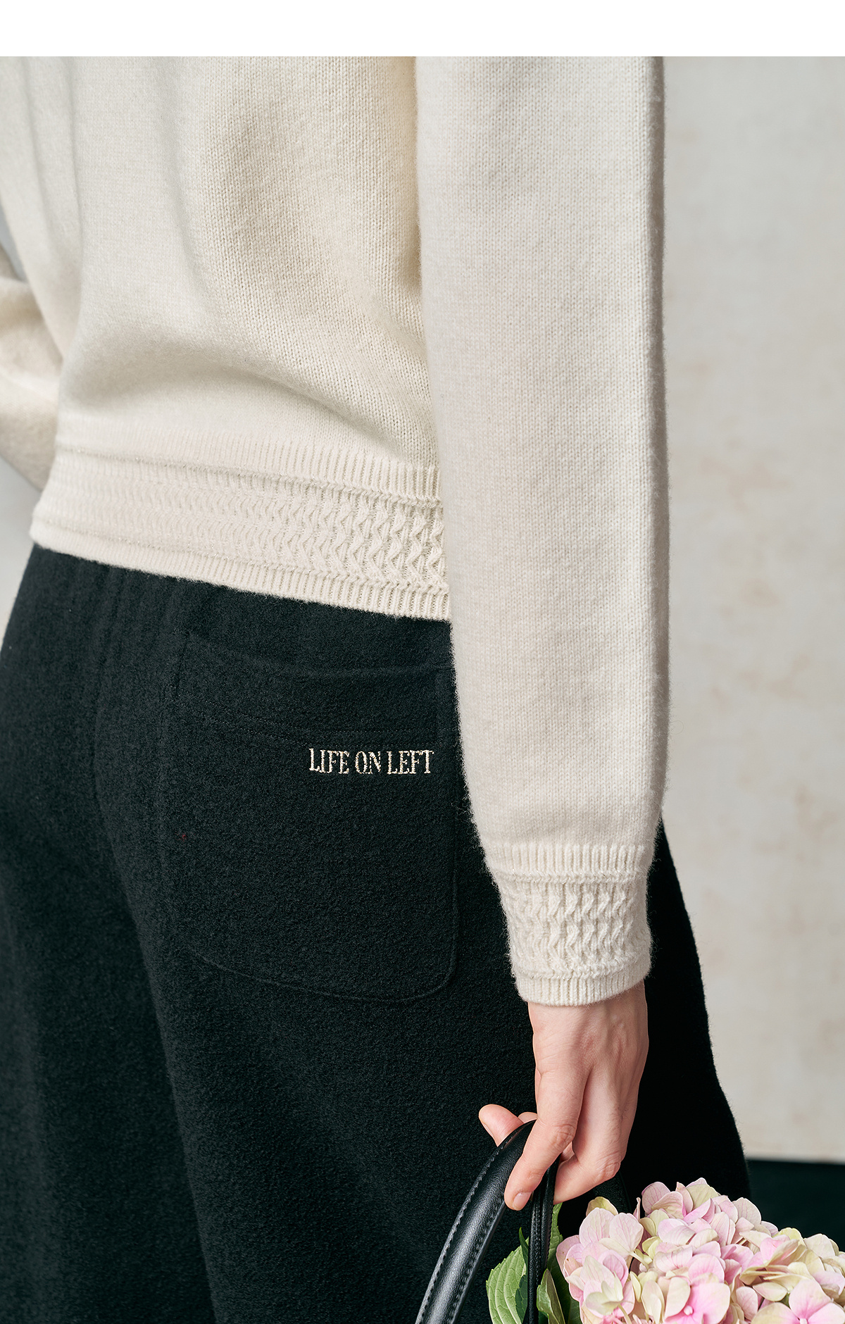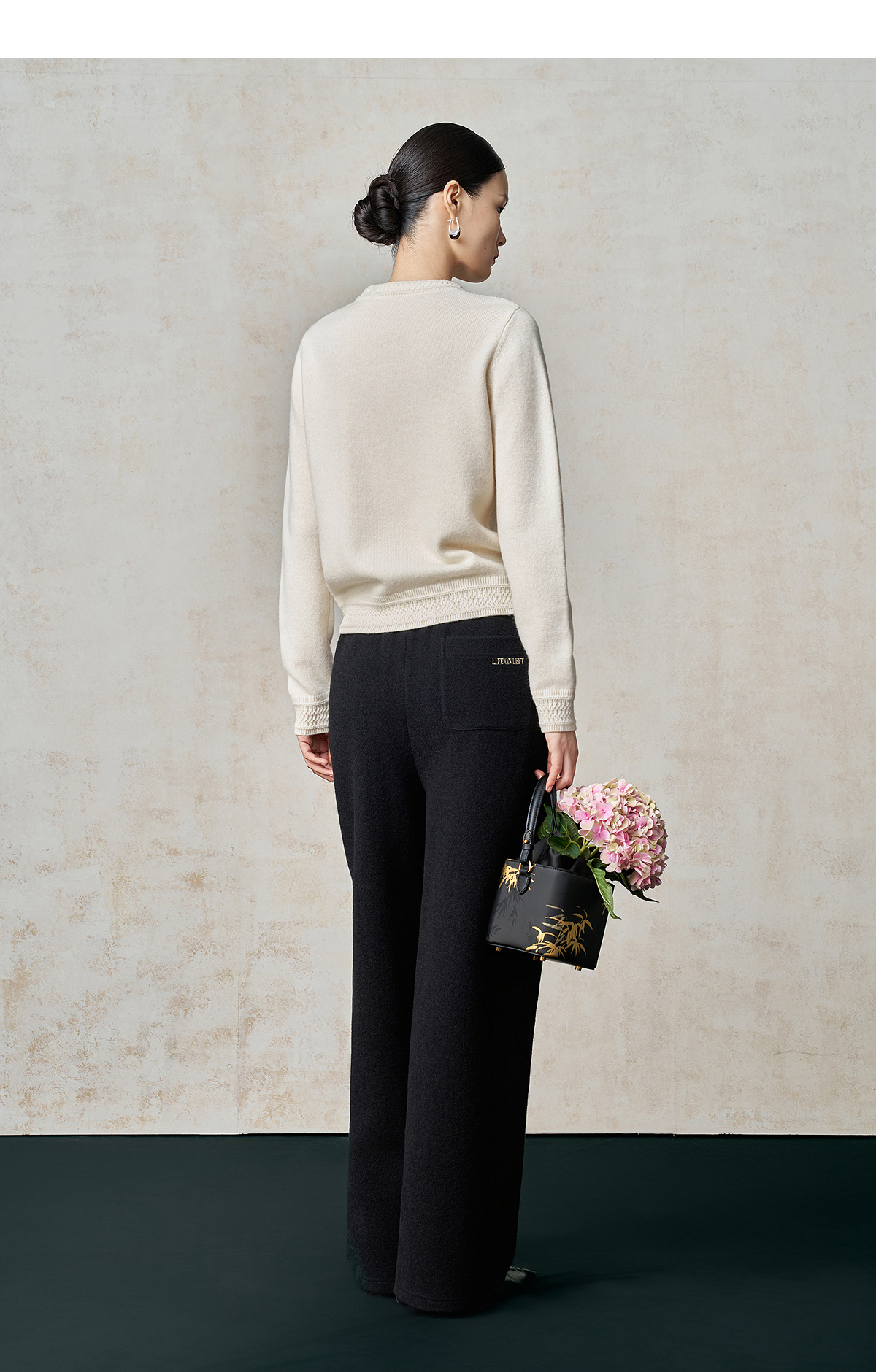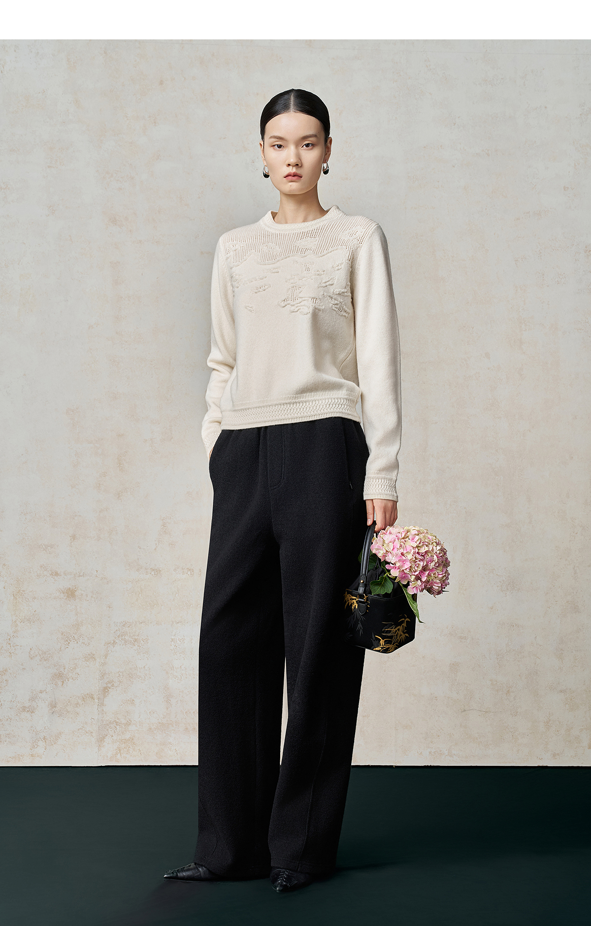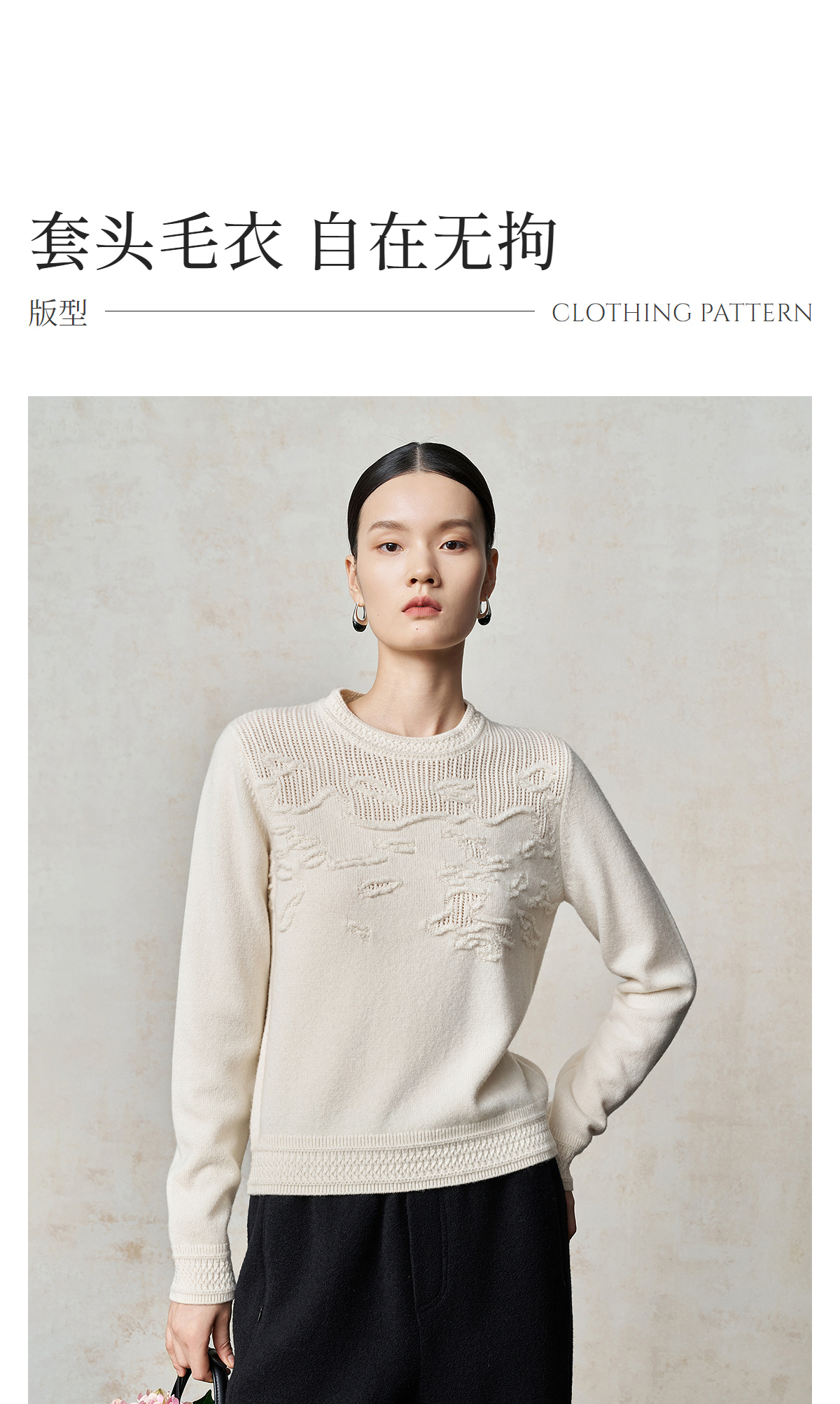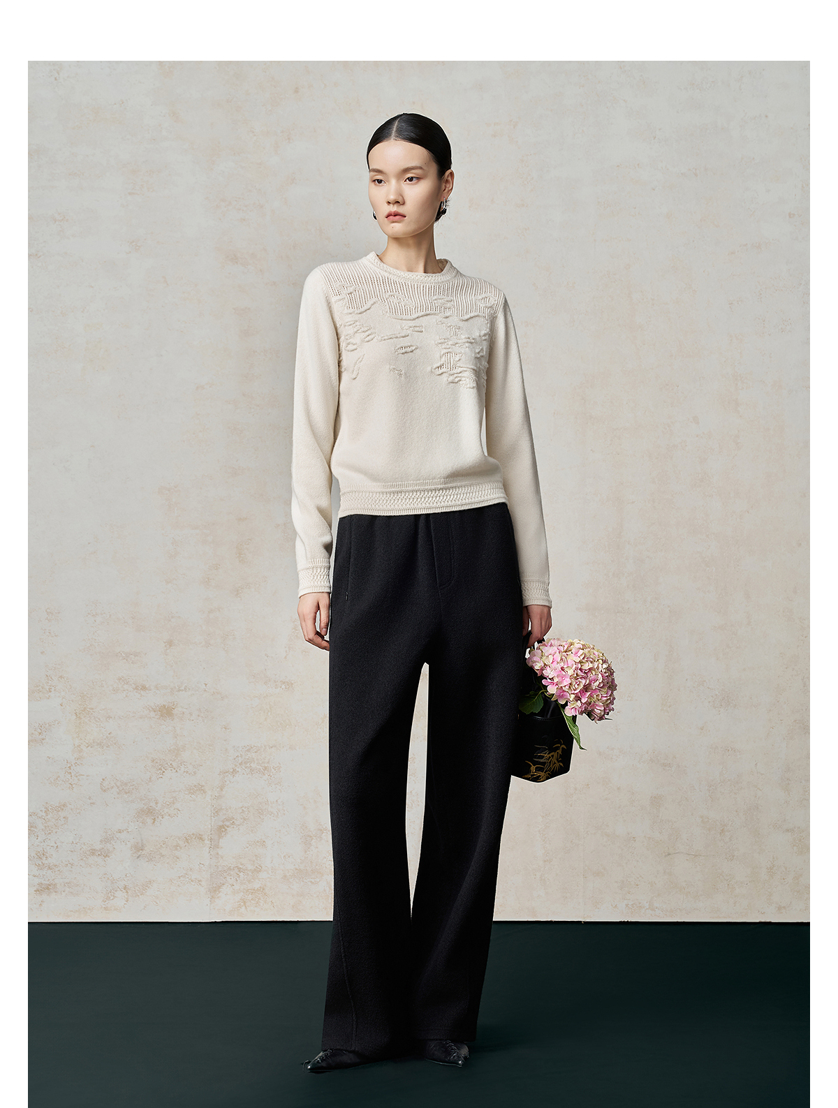 【林栖设计小店】绵羊毛罗纹镂空肌理感毛衣优雅2025秋冬新款毛织上衣女1954017