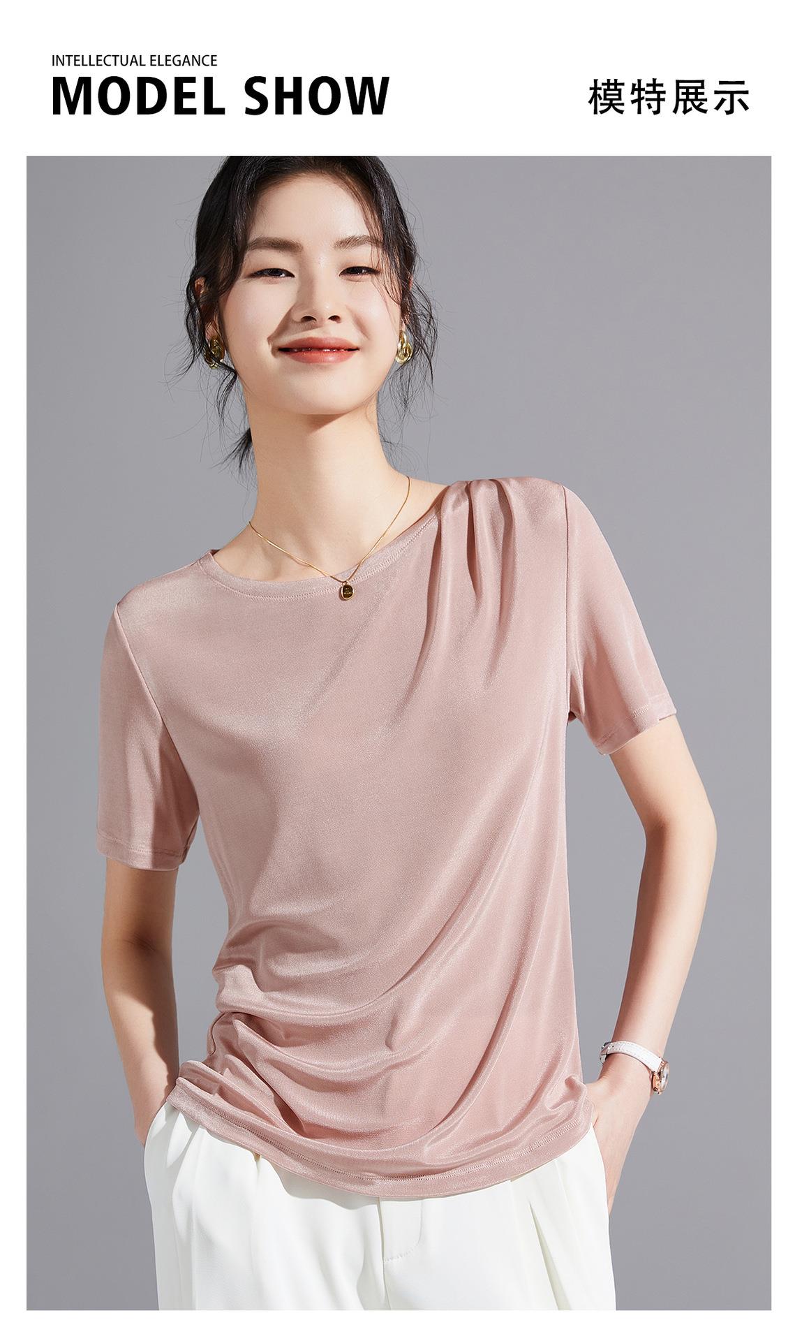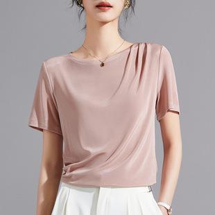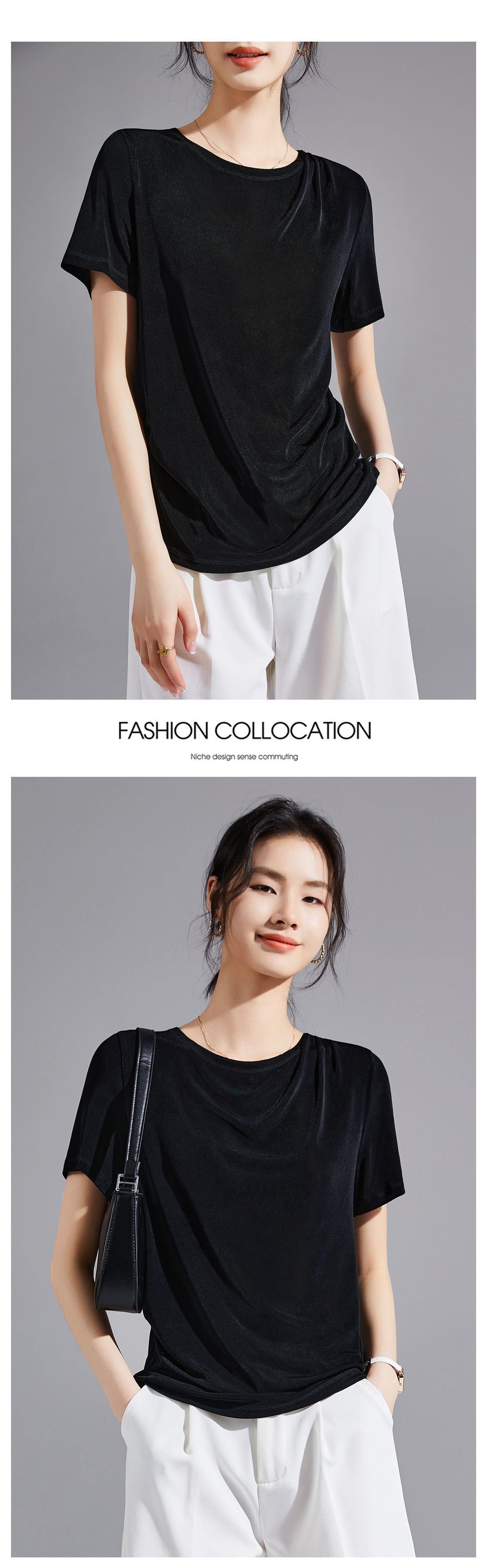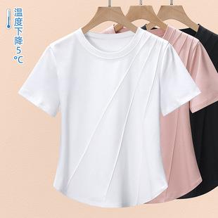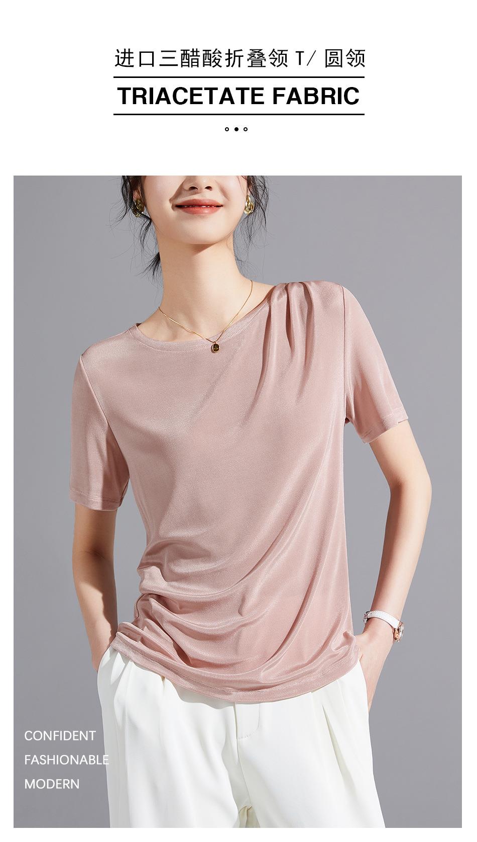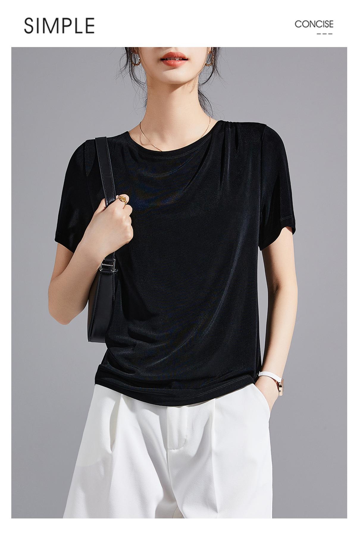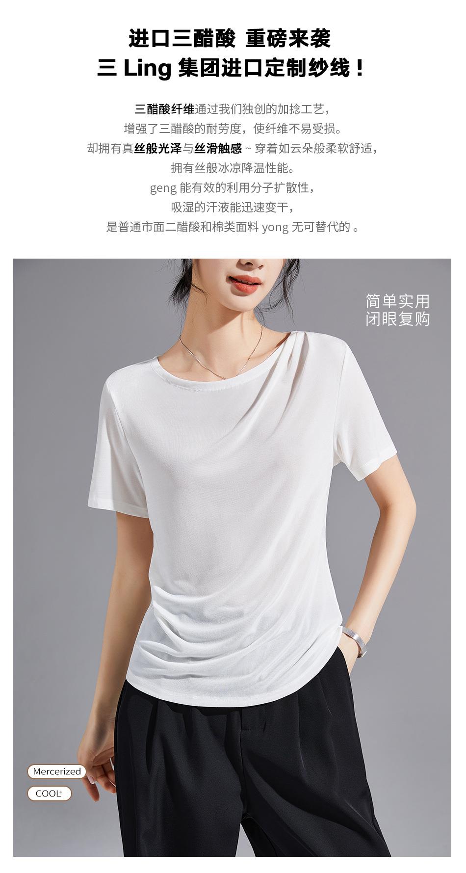 2024夏新款女装日本三Ling三醋酸重磅基础优雅光泽感短袖女T恤女