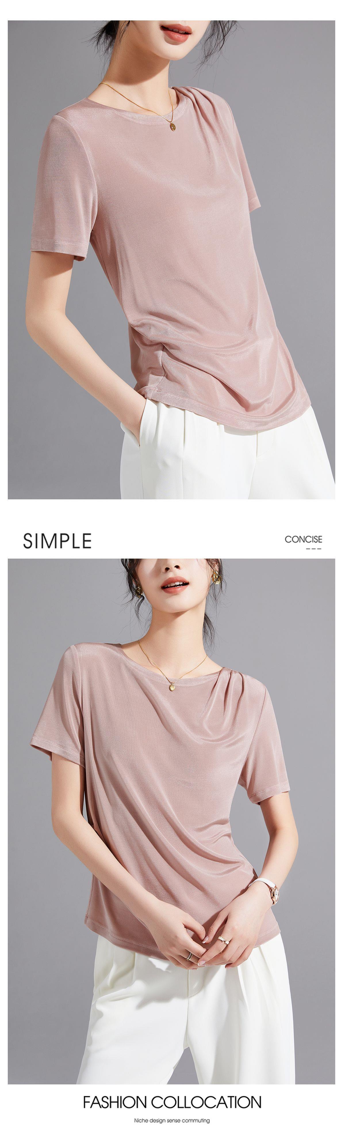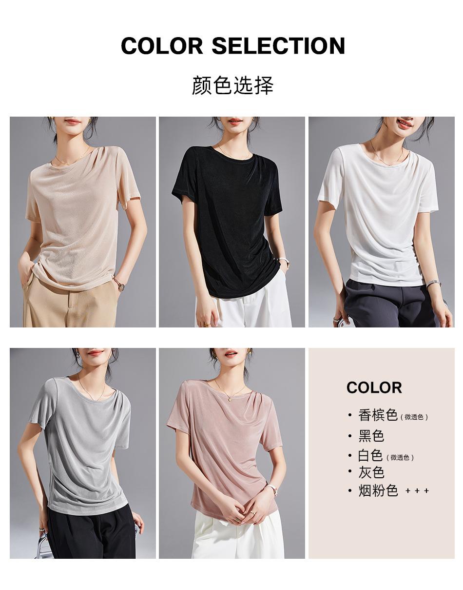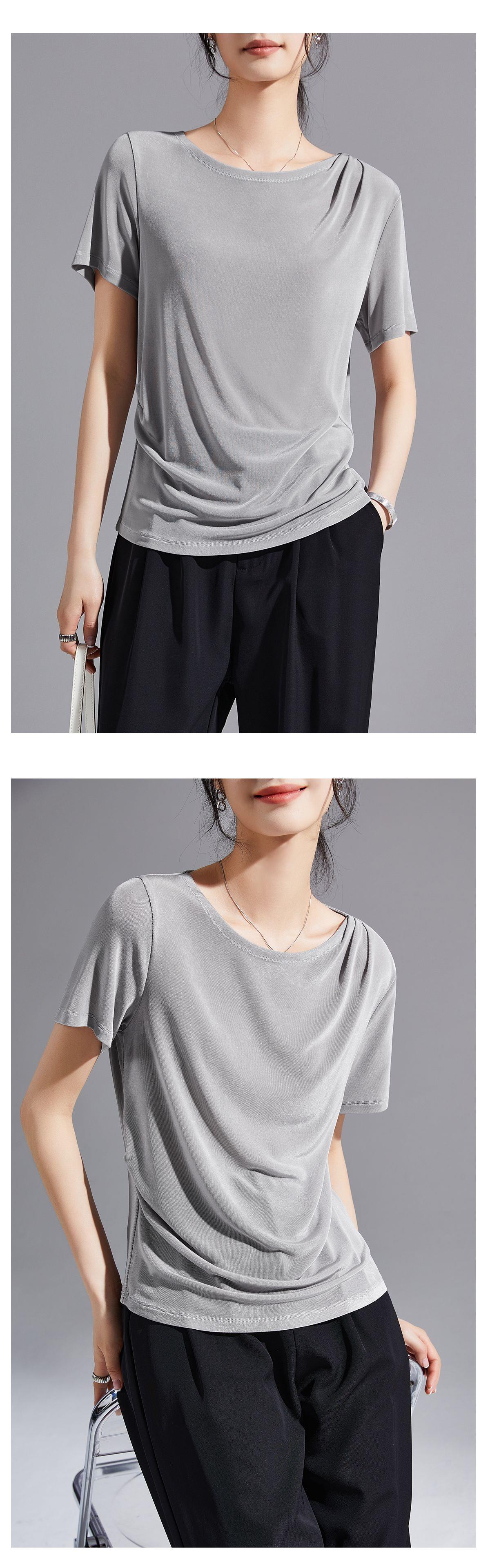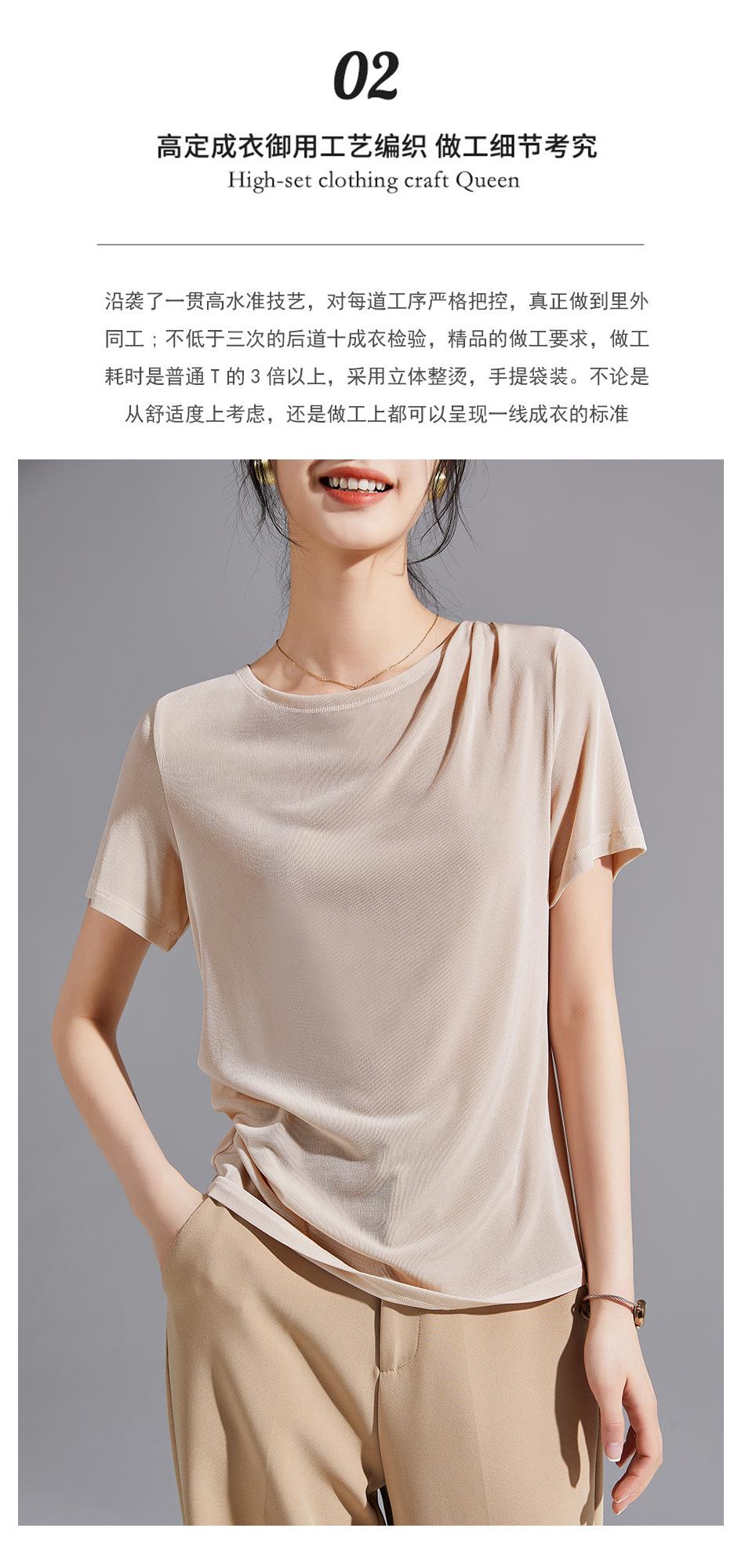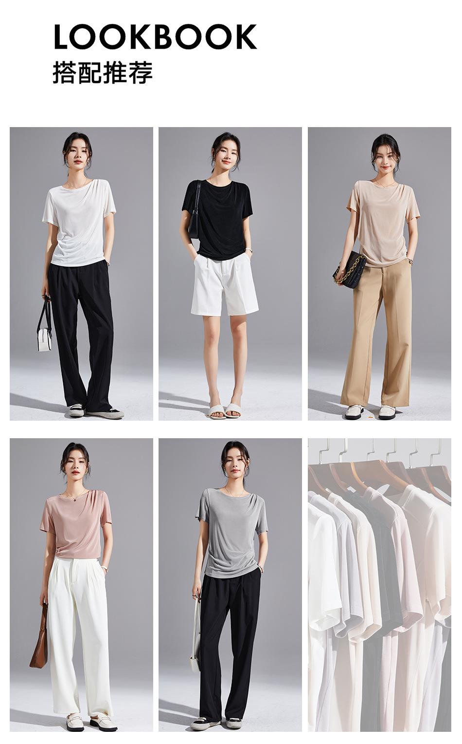 2024夏新款女装日本三Ling三醋酸重磅基础优雅光泽感短袖女T恤女