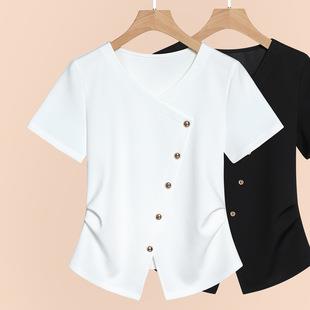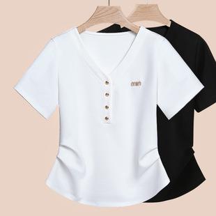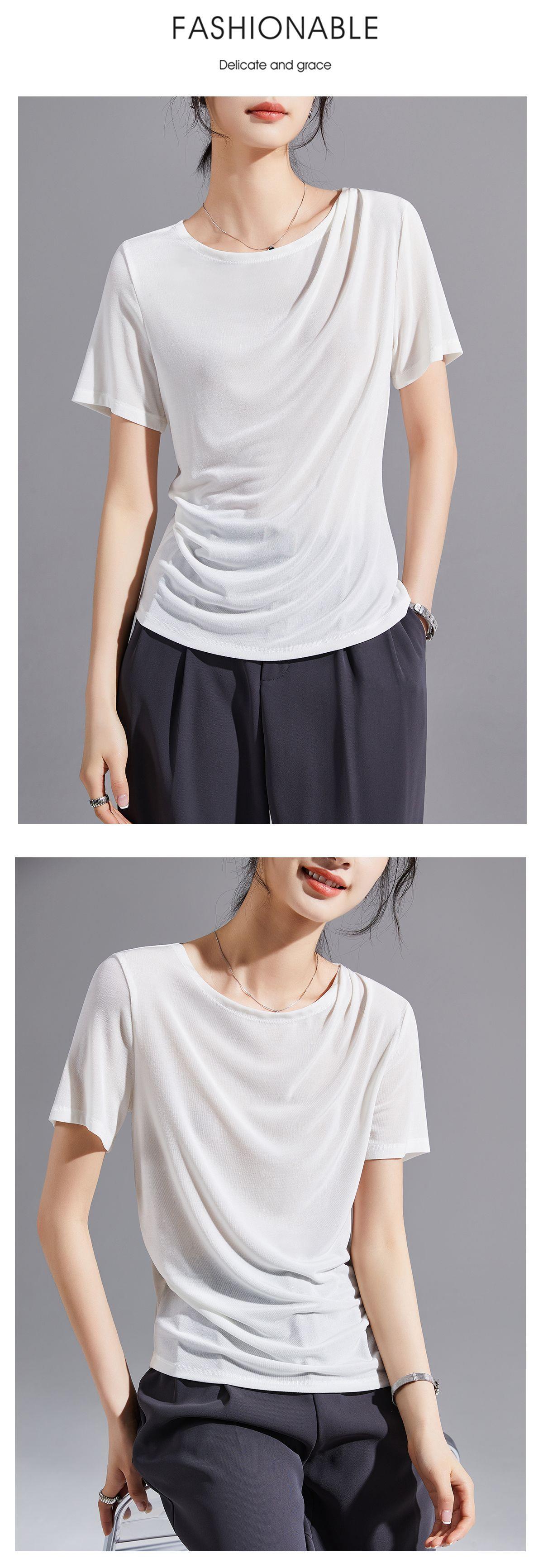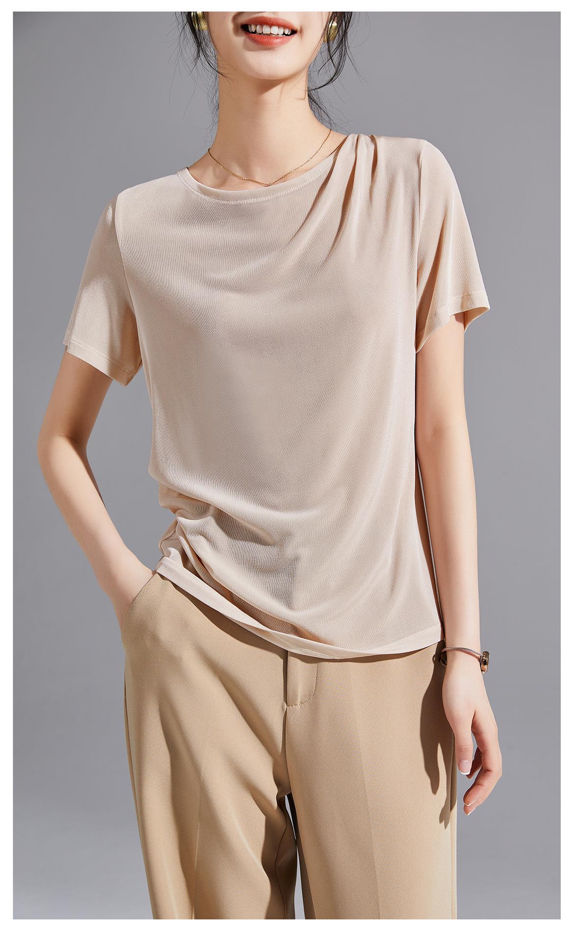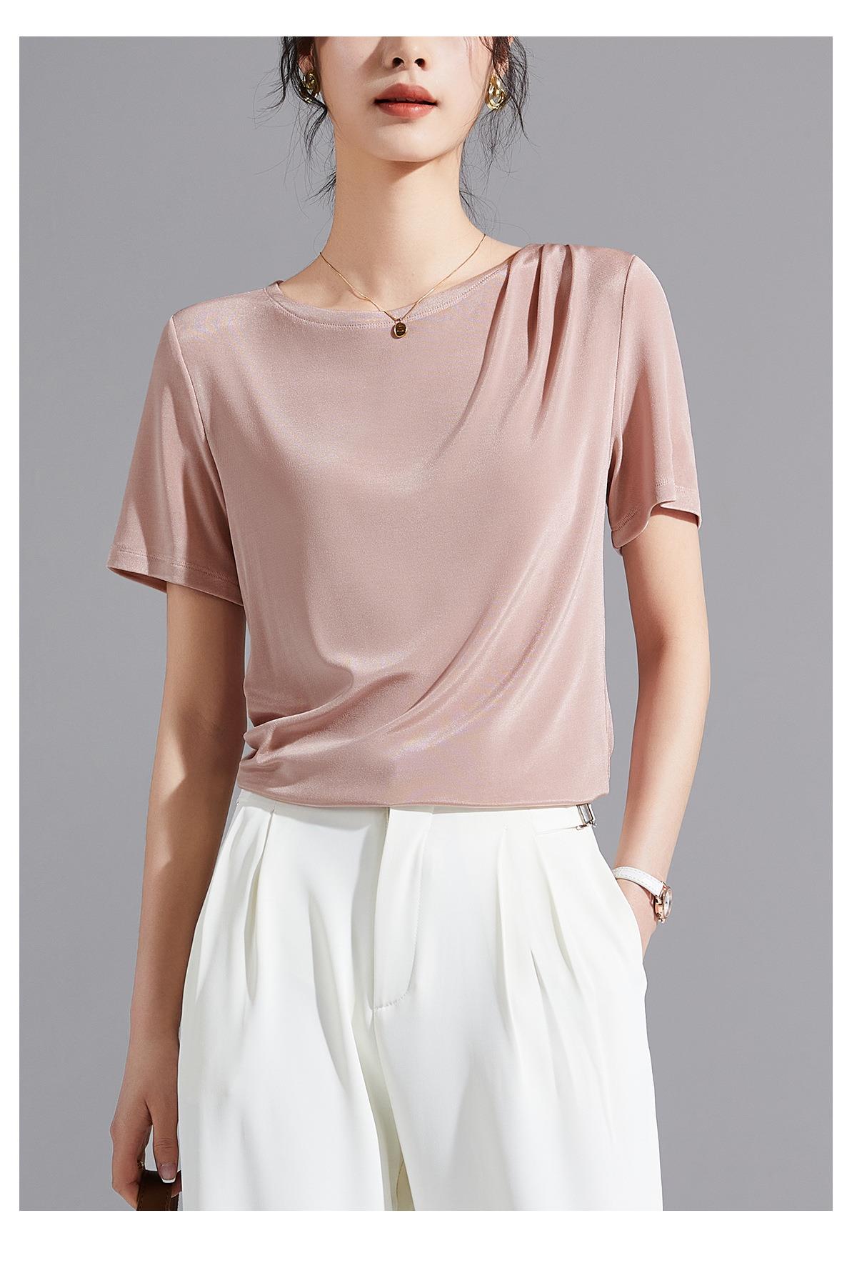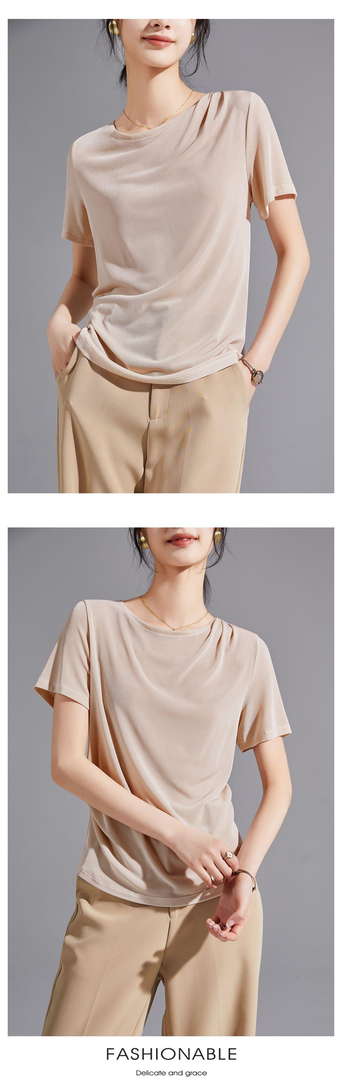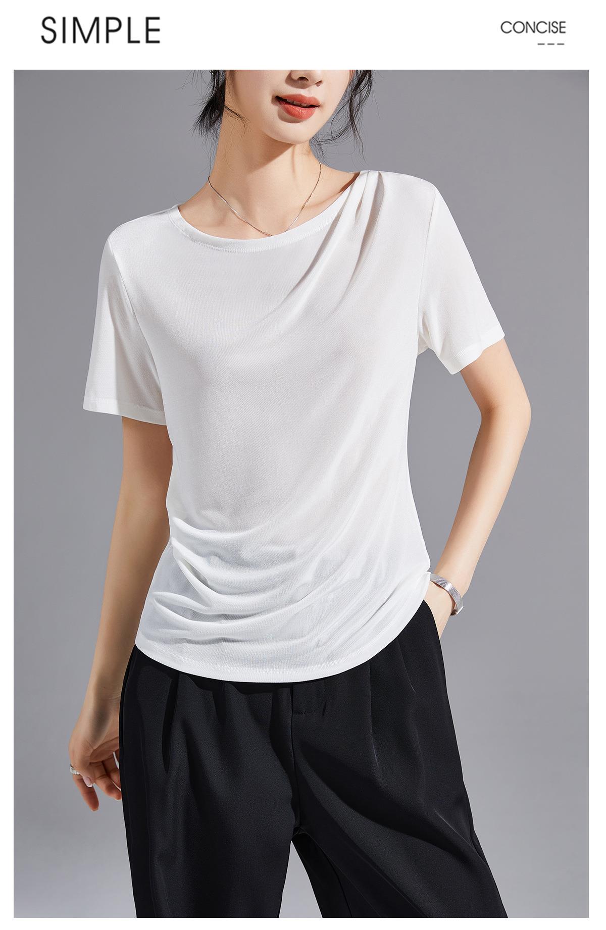 2024夏新款女装日本三Ling三醋酸重磅基础优雅光泽感短袖女T恤女