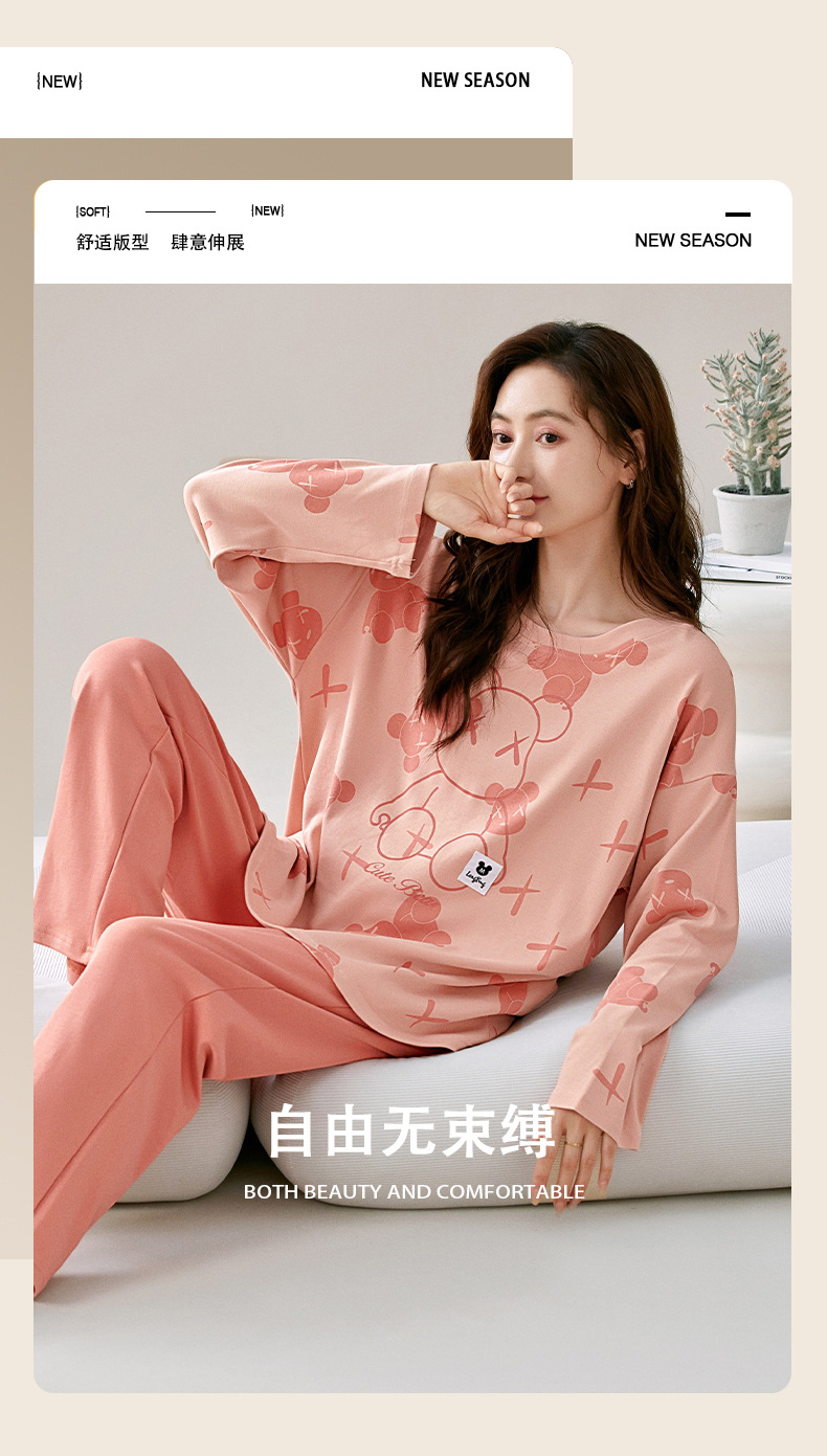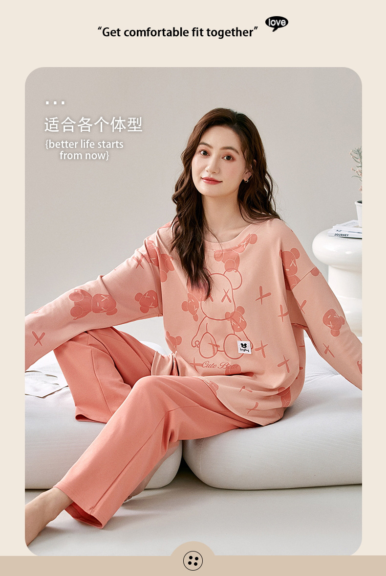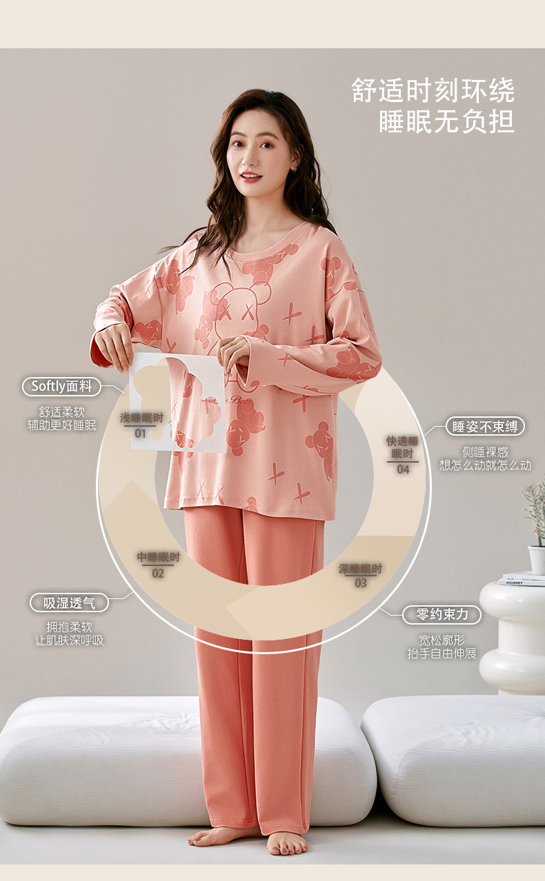 【柔软细腻!吸湿透气】爆款睡衣春秋款女士纯棉长袖长裤秋季薄款圆领韩版宽松家居服套装。rb