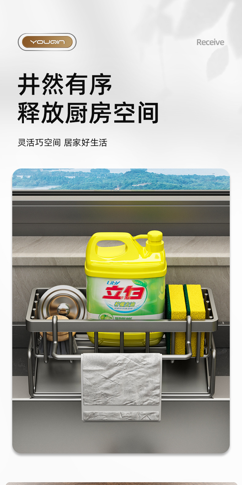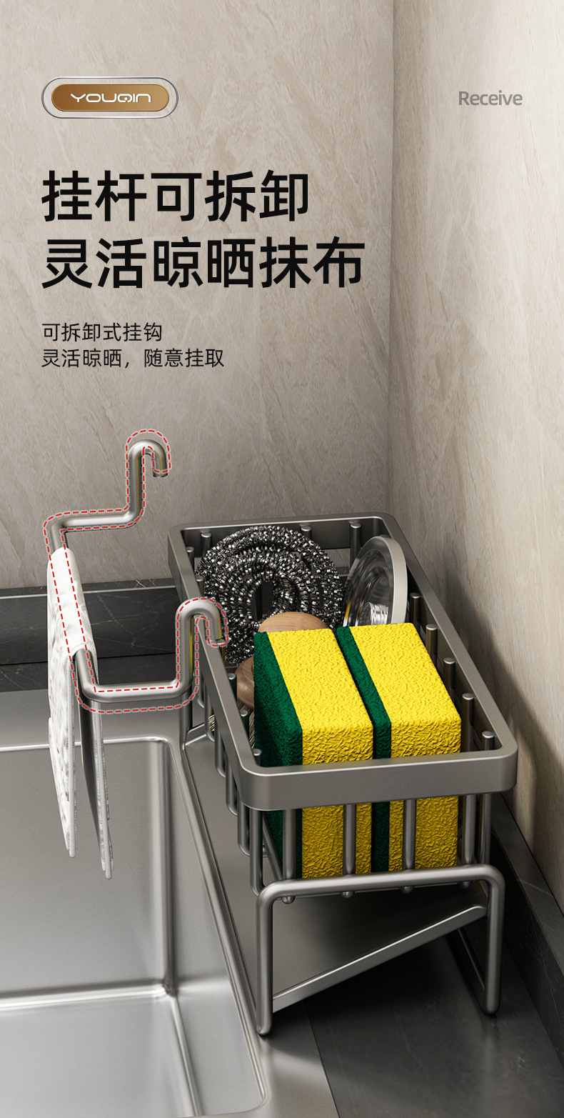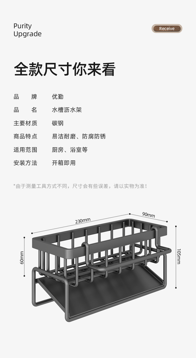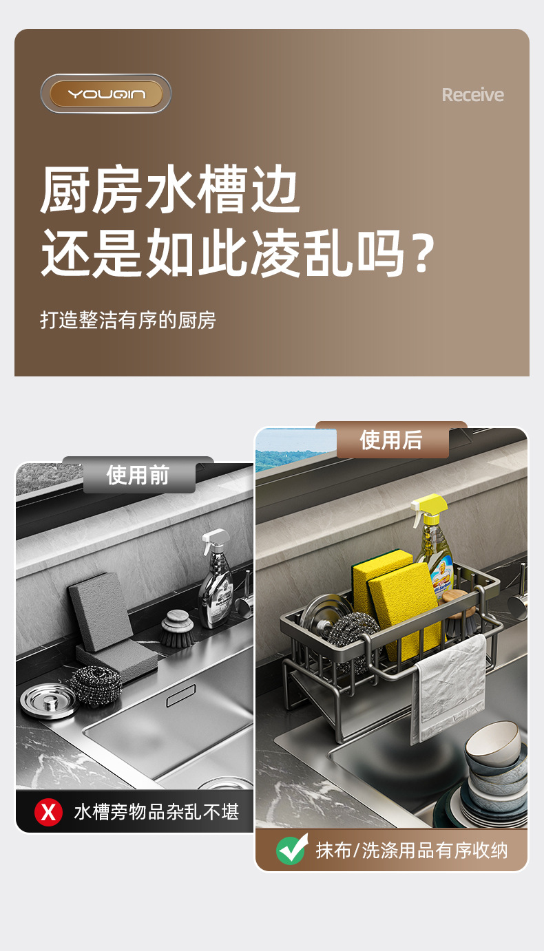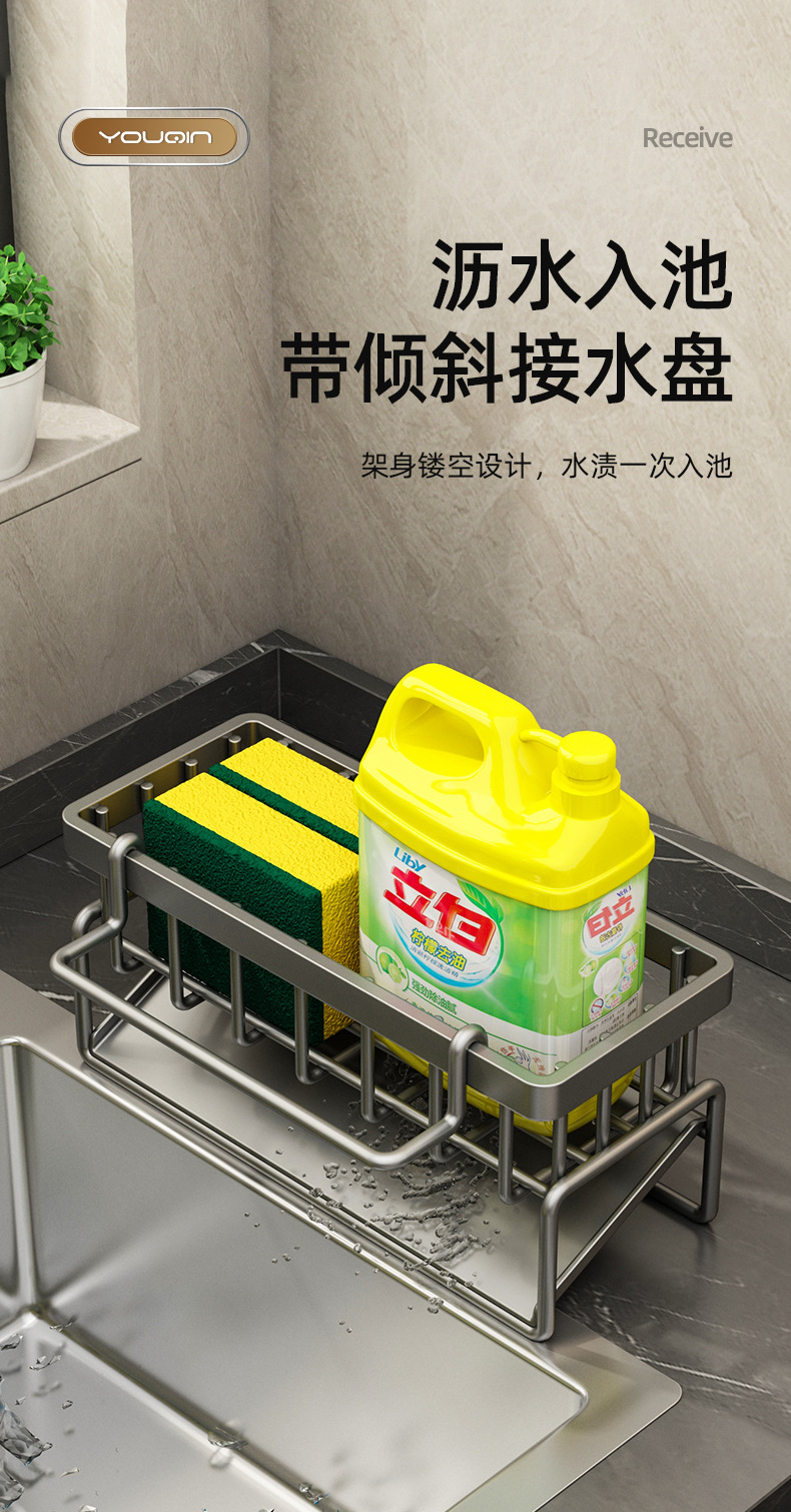 春节不打烊【倾斜接水盘❗️厚实材质防腐抗锈】厨房水槽置物架台面式龙头洗碗水池钢丝球百洁布毛巾沥水收纳架子。jd
