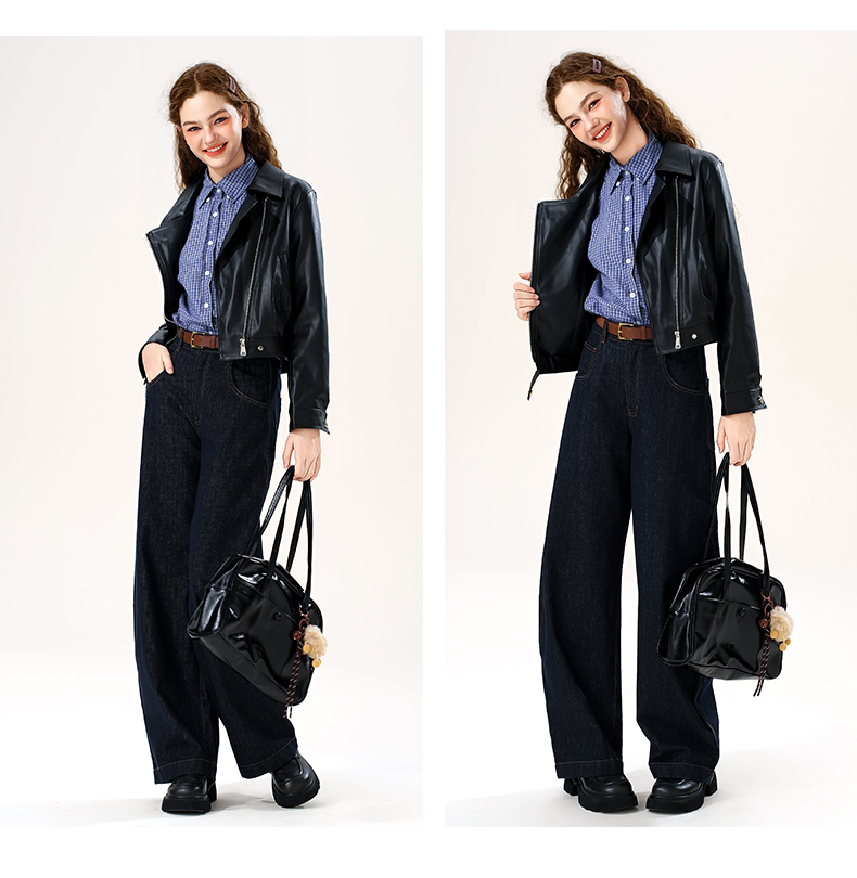mc2蓝色牛仔连衣裙女2024春秋款复古风收腰显瘦长袖牛仔裙小个子