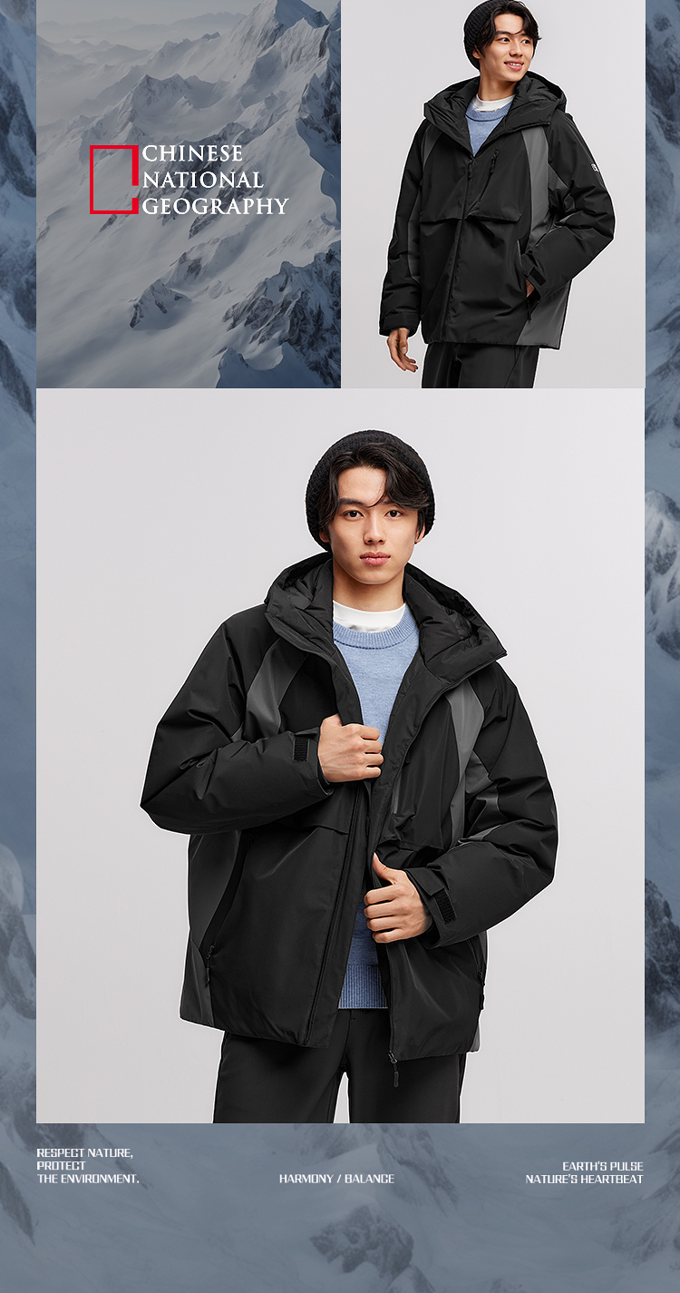 防护外套|森马中国国家地理系列羽绒服男冬90绒子防泼水户外拼色