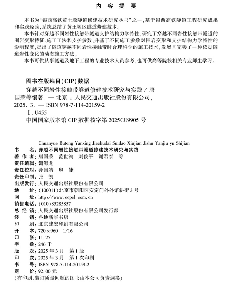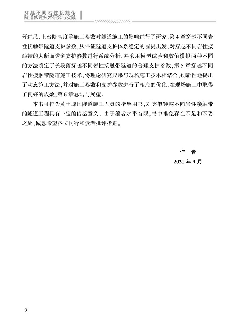 书名:穿越不同岩性接触带隧道修建技术研究与实践