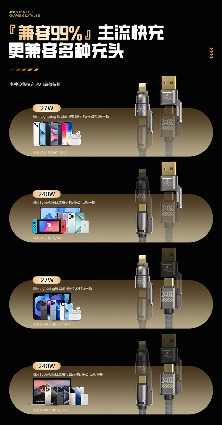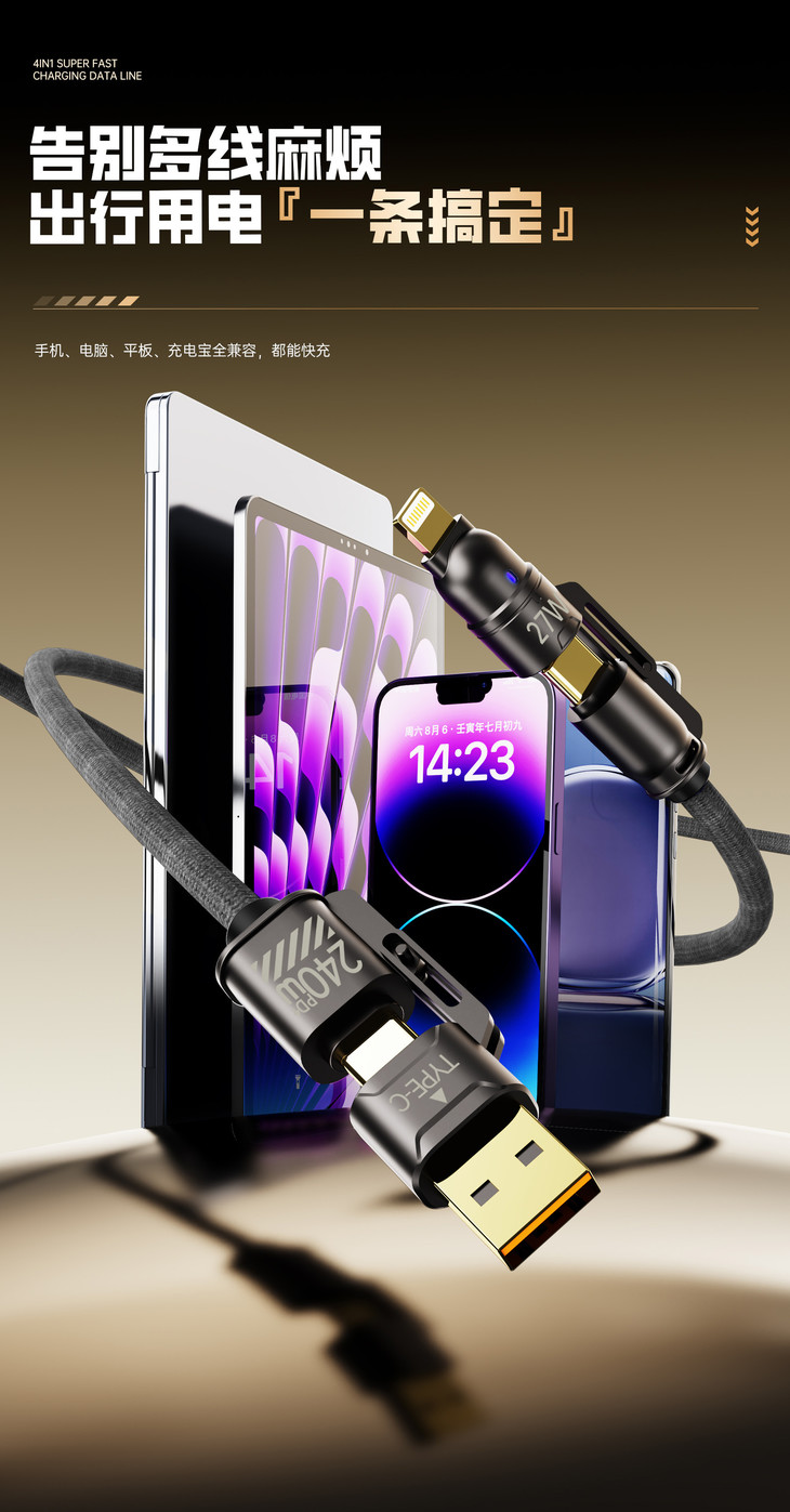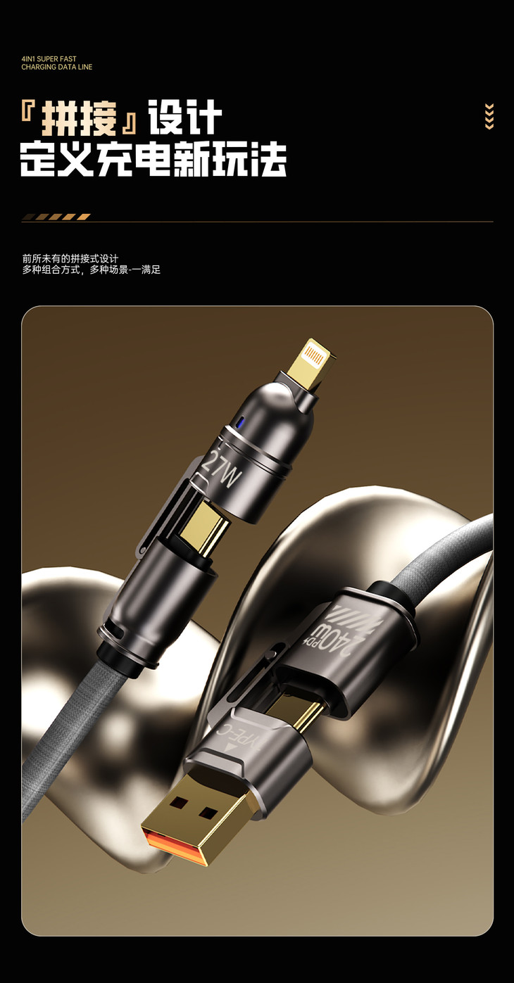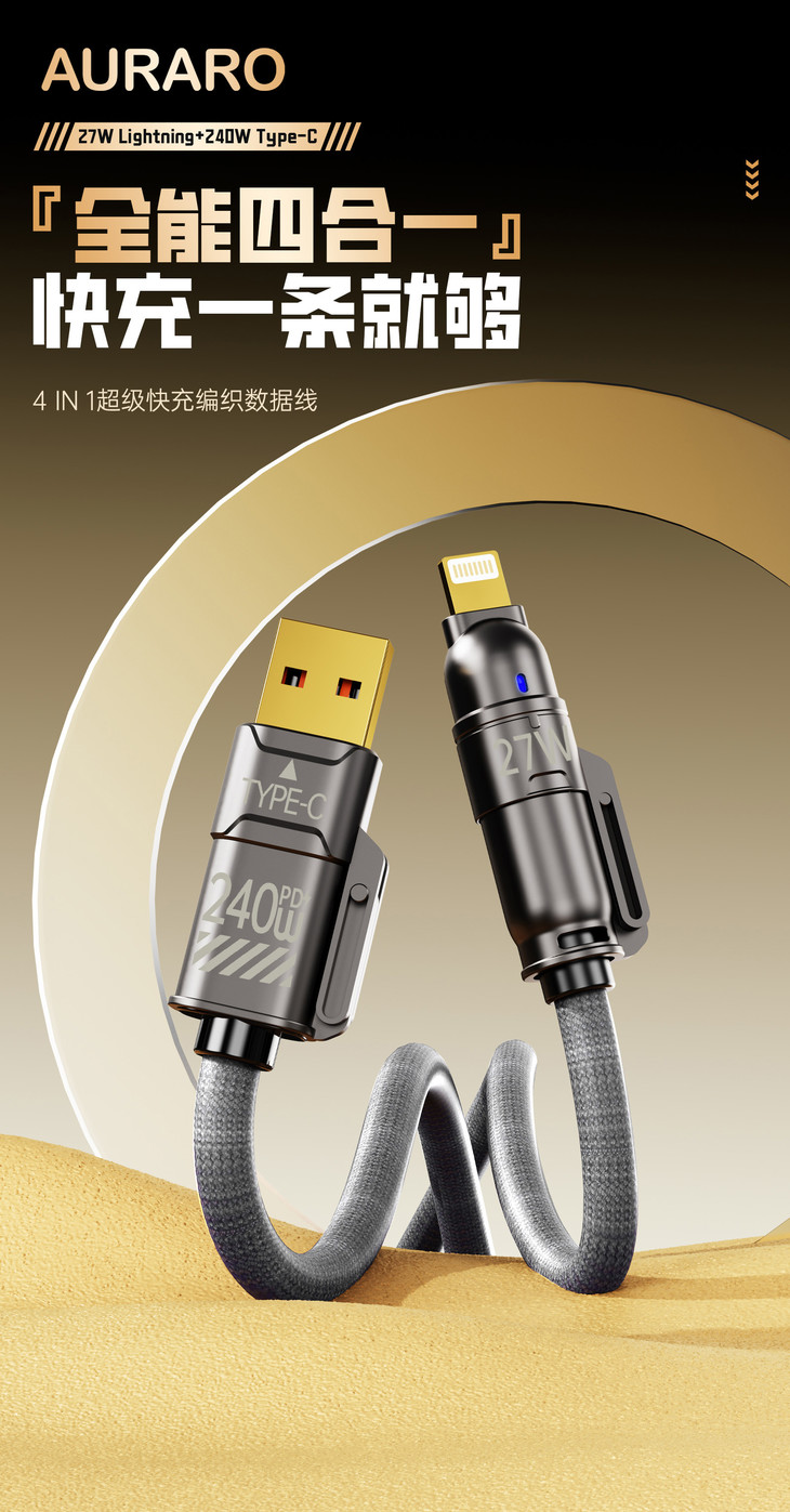 【Auraro 四合一超级快充数据线】 一键解决你的所有数据线烦恼! 简直是懒人快充神器,出门啥也不用想 一根线走遍天下不是问题👏🏻