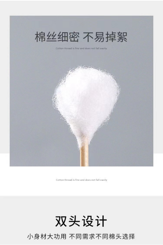 这款棉签的棉头采用优质棉花制作, 生长期比普通棉长10-15天光照🌞时间 棉花成熟度高 棉多蓬松柔软 柔软舒适,不仅触感极佳,而且吸水性良好,不易掉絮。 在使用过程中,你可以放心地享受棉花头带来的柔软舒适感, 而不用担心棉絮四处飞扬,因此用于棉签制作能够提供更好的使用体验。