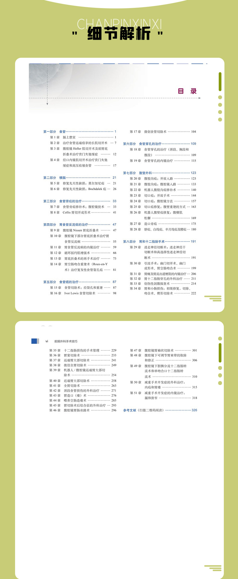 本书第2版在第1版的基础上,由顶级专家根据最新的相关领域的进展及专家的宝贵经验汇总而成,以图文并茂的形式呈现给广大读者。在前肠外科疾病治疗中,作者详细介绍了常见的食管良性疾病、先天性膈疝、食管旁疝、胃食管反流病、食管癌及食管穿孔的外科治疗方式与手术技巧。在胃肠外科疾病治疗中,作者首先详细介绍了包括腹股沟疝、切口疝、造口旁疝及脐疝、膈疝、半月线疝、腰疝等在内的各种常见腹壁外科疾病的开放、腔镜及机器人外科治疗方式与手术技巧。随后,详细介绍了胃肠外科各种迷走神经切断术,包括幽门切开术、幽门成形术、胃空肠吻合术在内的各种引流术,胃瘫及胃流出道梗阻的内镜治疗,胃十二指肠穿孔的外科治疗,各种方式的胃切除术,胃空肠造口术,减重代谢外科手术及术后并发症的治疗方式与手术技巧。作者对相关手术技巧的介绍翔实全面,其内容对于指导临床工作的开展具有重要的指导价值。