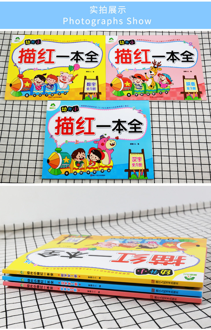 爱德少儿幼升小描红一本全(拼音数字汉字)描红初学者幼小衔接学前儿童汉字数字字母练字帖3-6岁学写字描红本 汉字