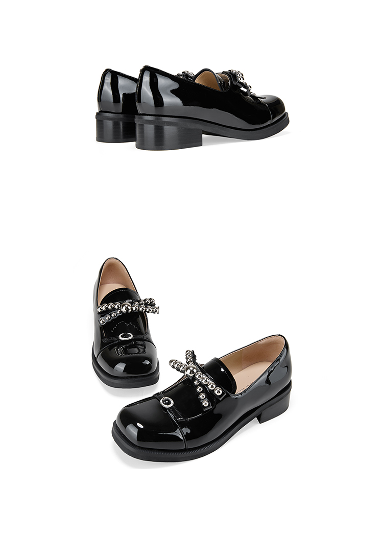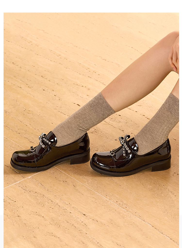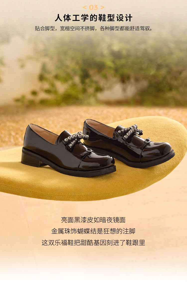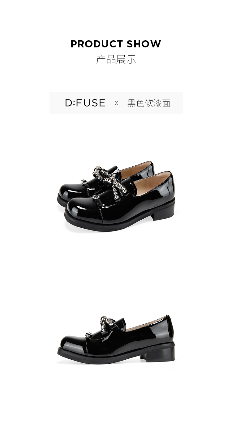 Dfuse迪芙斯2026春季新款方头蝴蝶结甜酷漆皮深口鞋舒适乐福鞋女鞋DFE1112044