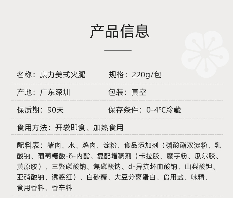 伊泽康力西式火腿2.5kg(迈瑞专属)