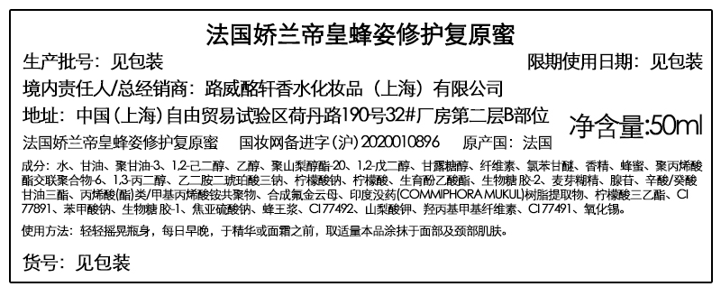 【中欧班列精选】法国娇兰帝皇蜂姿复原蜜50ml HJ