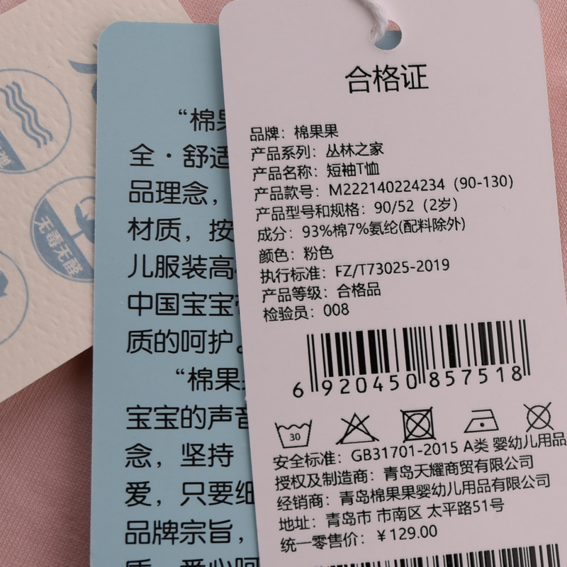棉果果夏季男童纯棉短袖T恤柔软亲肤时尚M212140222319