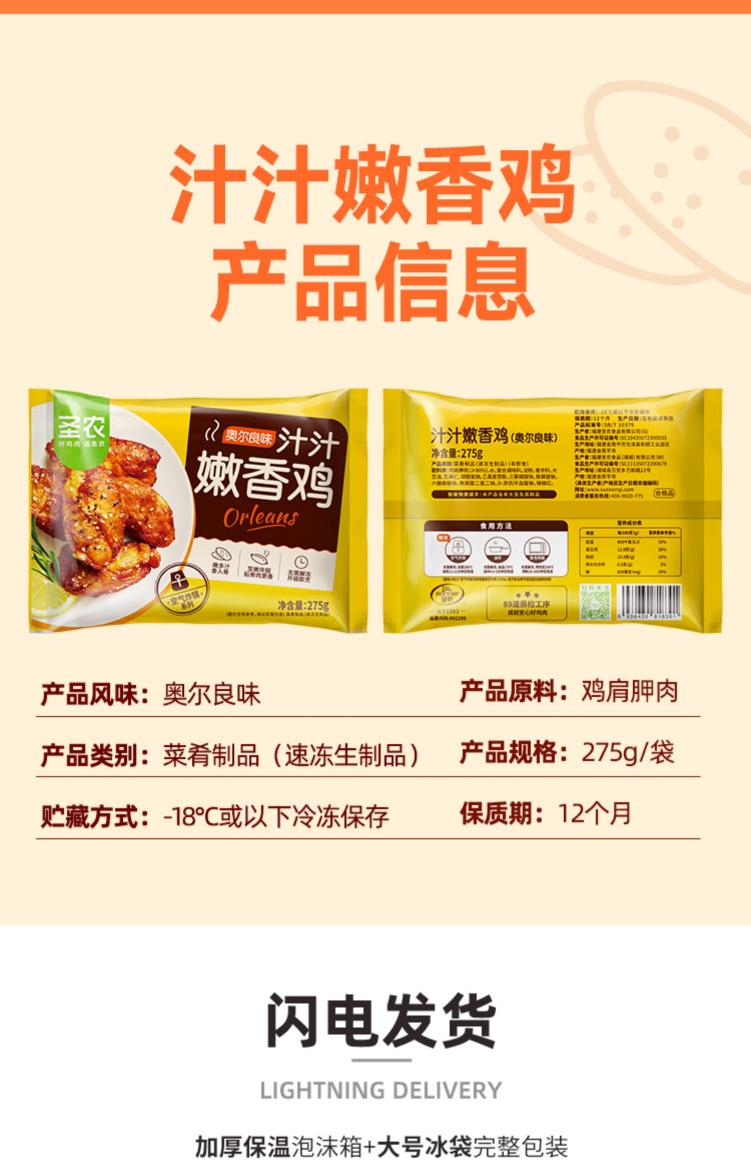 圣农汁汁嫩香鸡275g(奥尔良味)*6