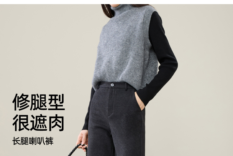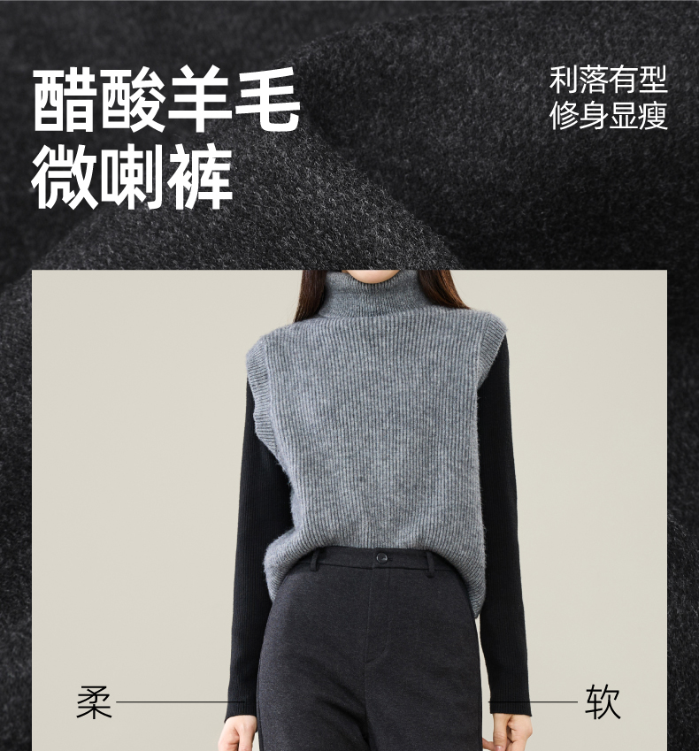 【双12特惠!醋酸羊毛-微喇裤】逸阳秋冬新品加厚保暖休闲松弛感微喇裤8057