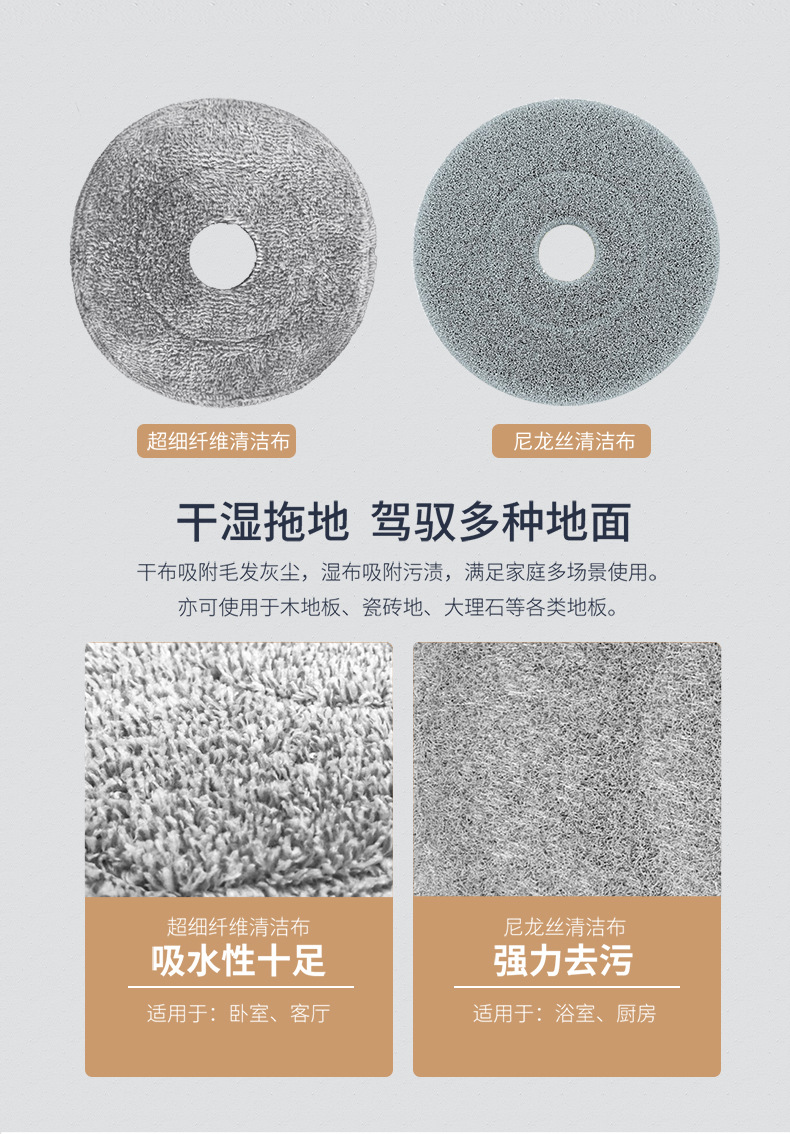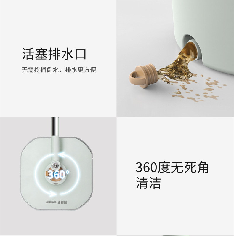 【美添乐 净污分离】干湿两用 懒人免手洗旋转拖把 净污分离 平板拖把家用静电除尘
