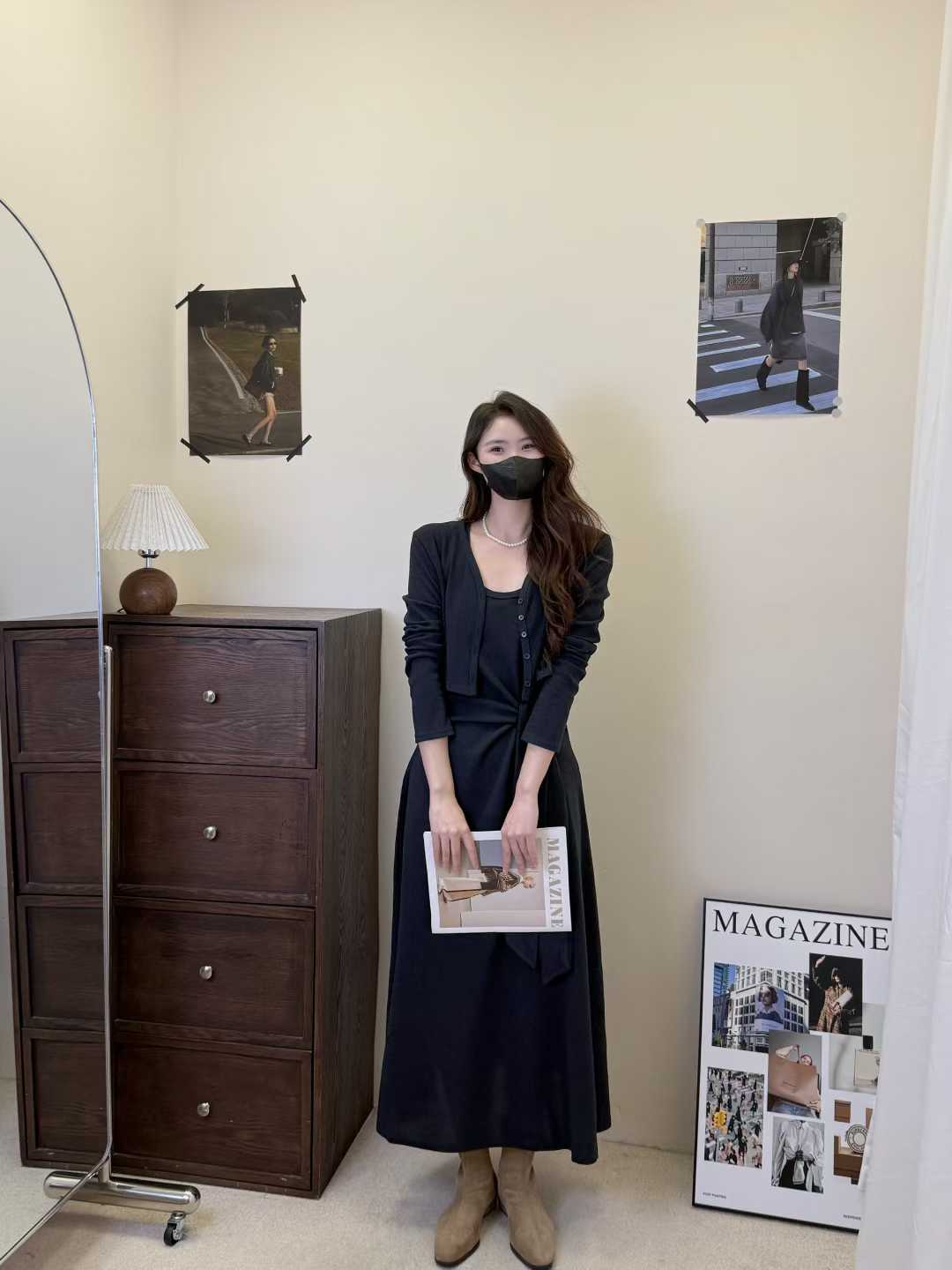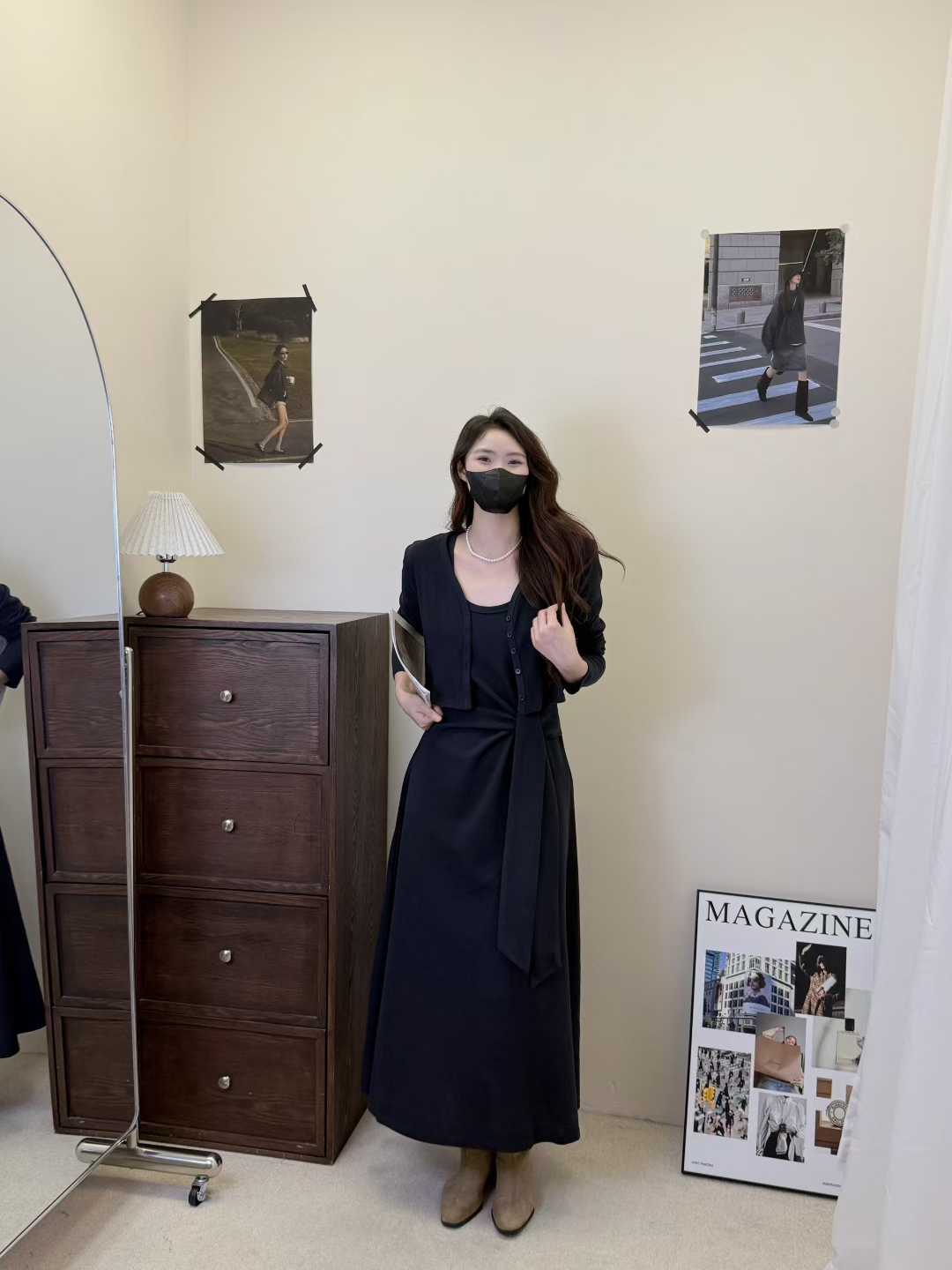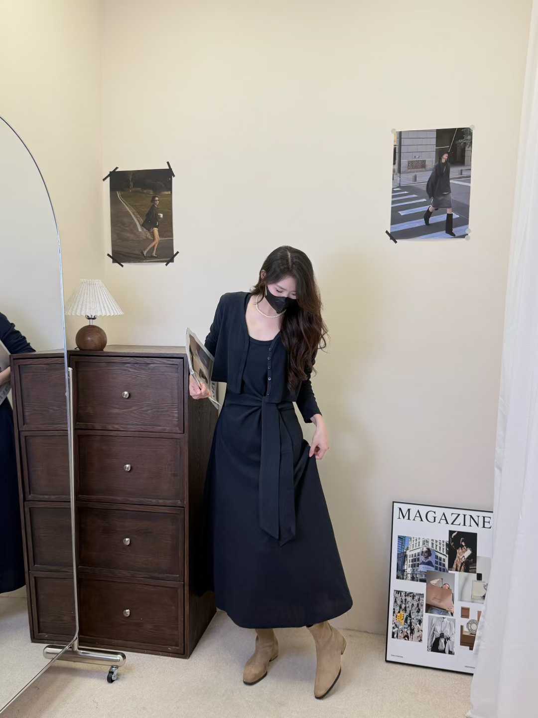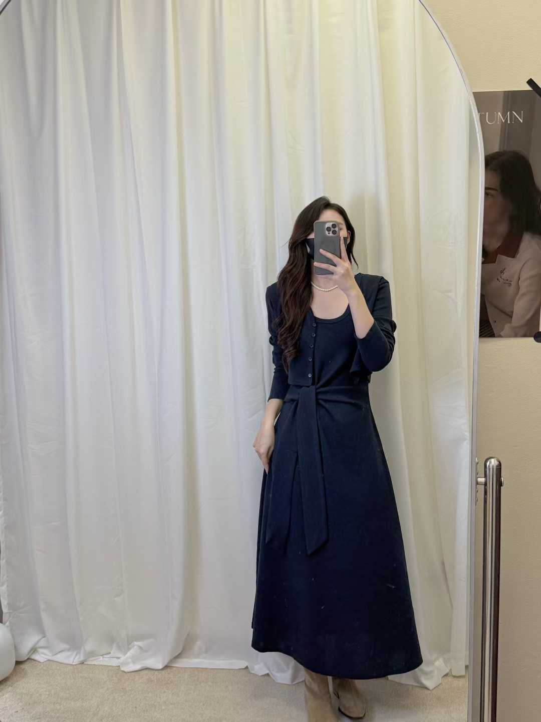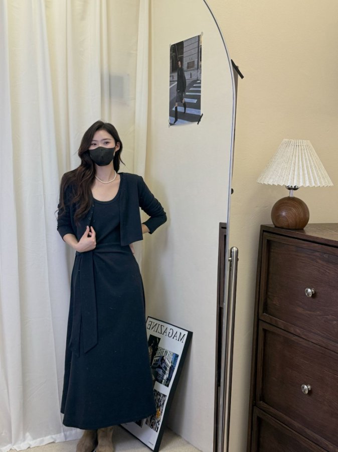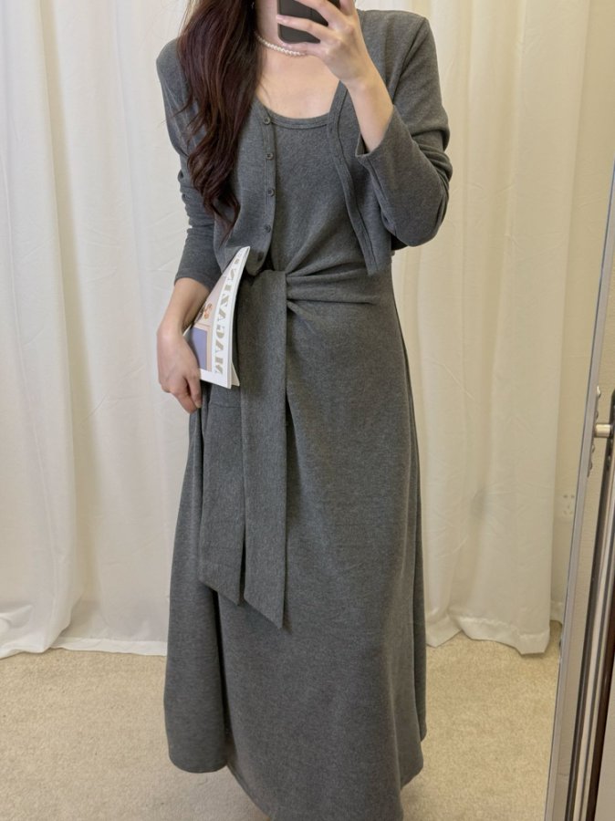【GZ】无忧购韩版设计感长袖连衣裙新款两件套休闲修身系带长裙8079(截单后3-5天发货)