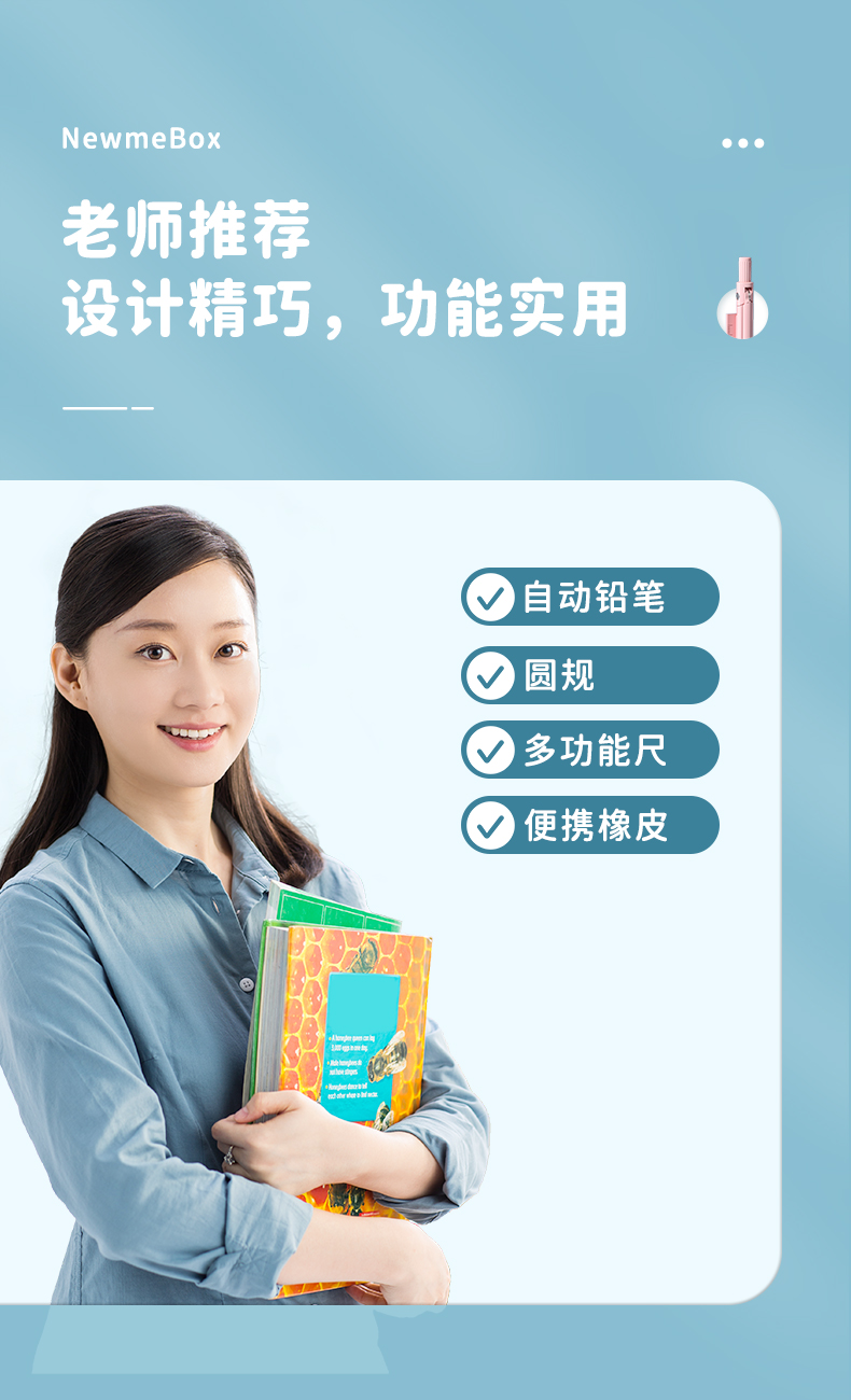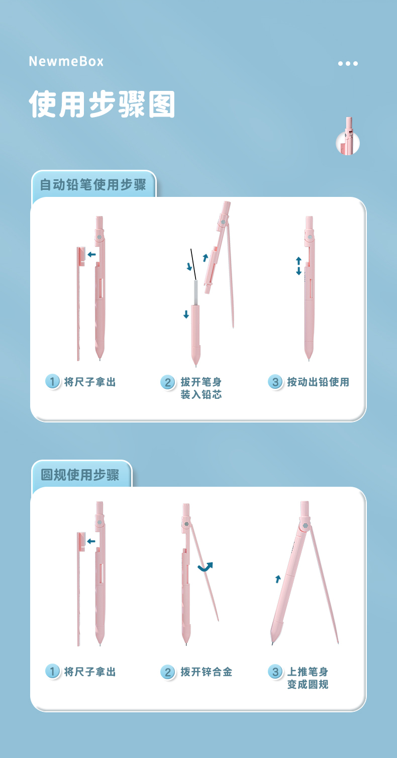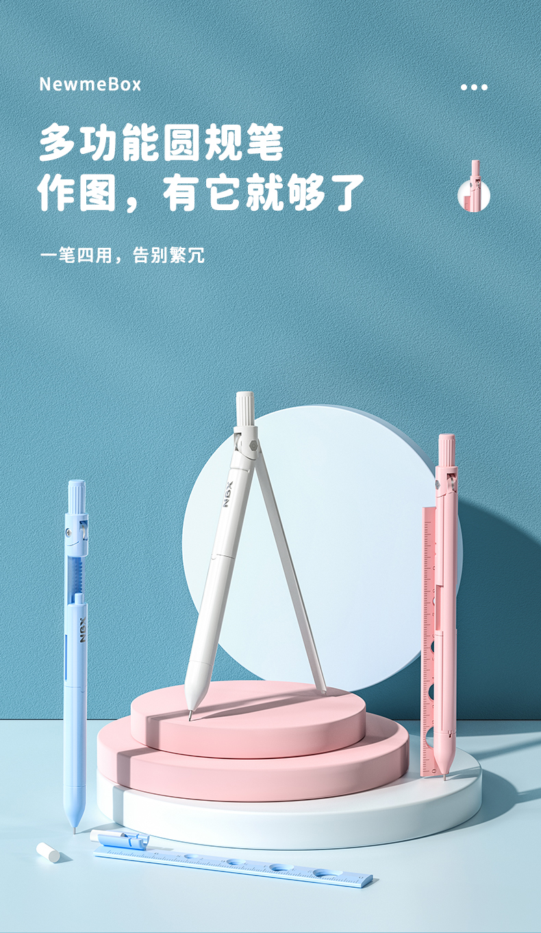 开学季福利!【一笔多用 带尺子铅笔 学生考试绘图专用】四合一笔式圆规尺子套装学生用画图工具初中生考试专用专业绘图尺规小学生多功能金属不锈钢高颜值笔形状式